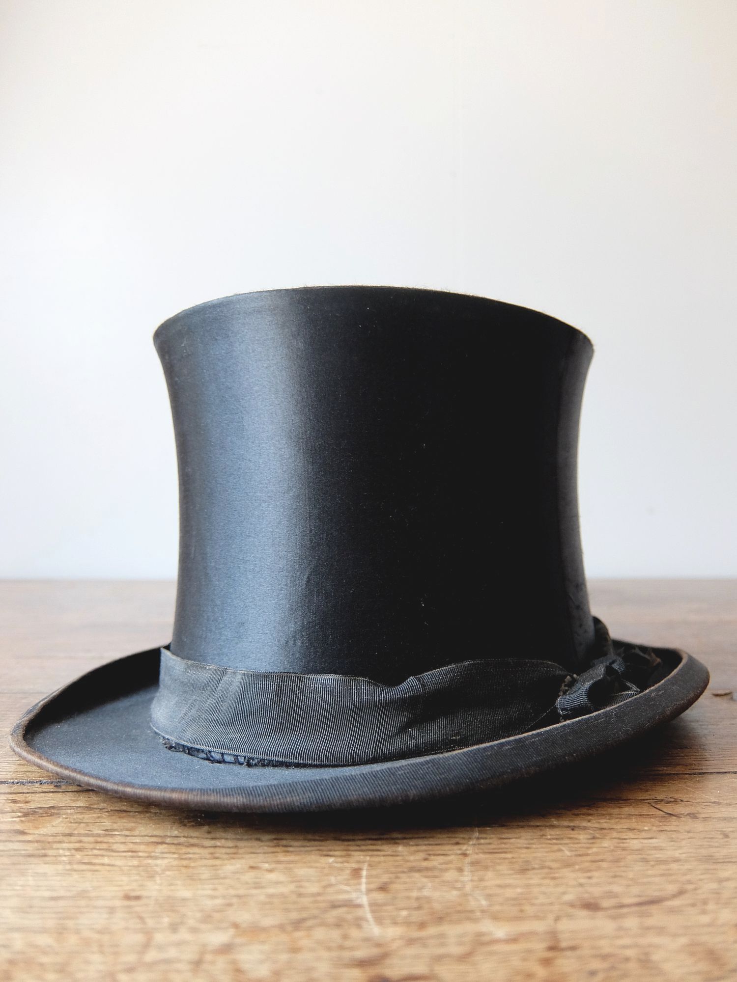 雰囲気のある紙箱が素敵な【Chapeaux Claque Mecaniques】社製(パリ)の折りたたみ式のシルクハット