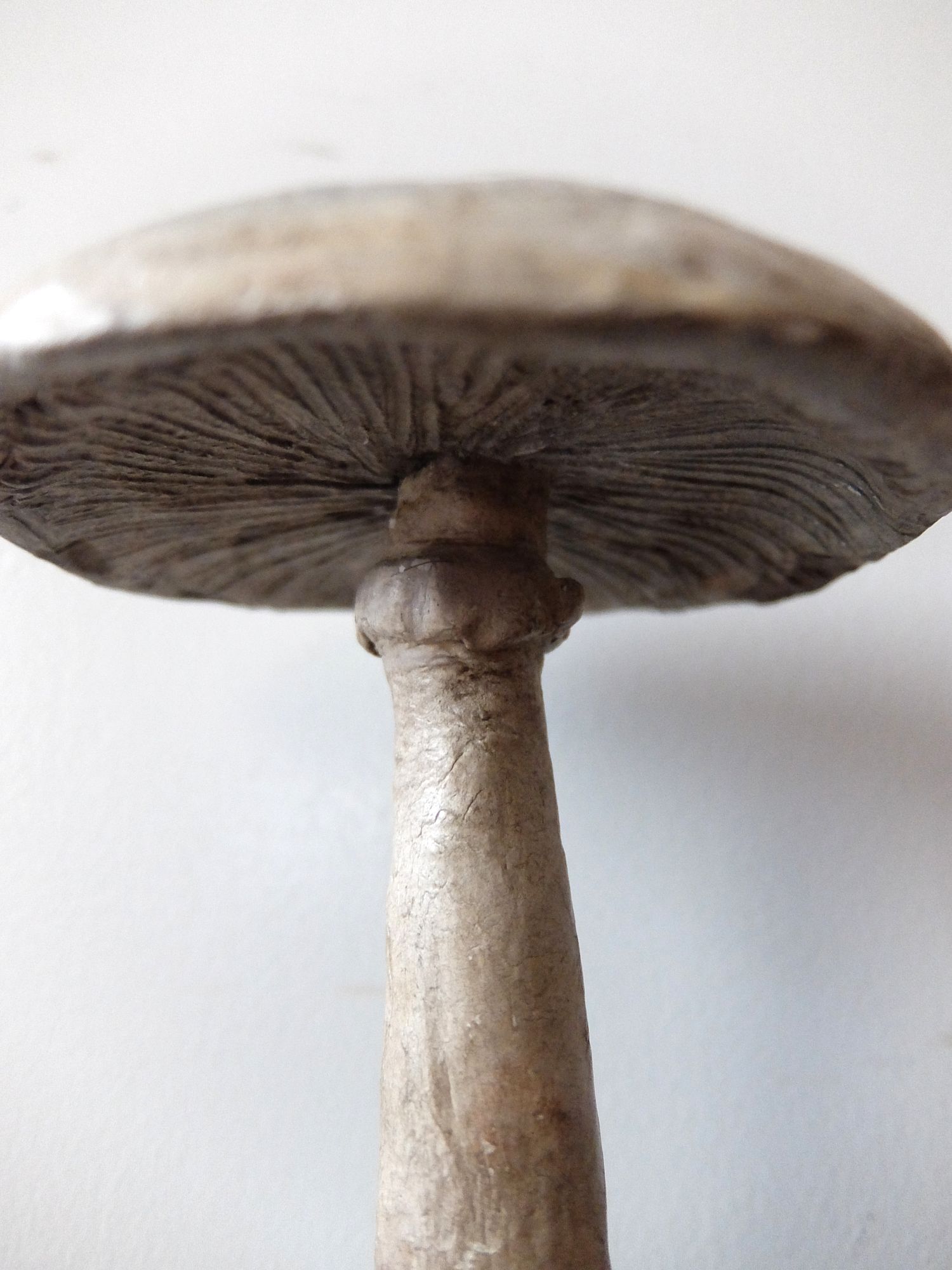 教育機関で使用されていたキノコの模型(土台:木製、キノコ部:パピエに石膏を塗ったもの)