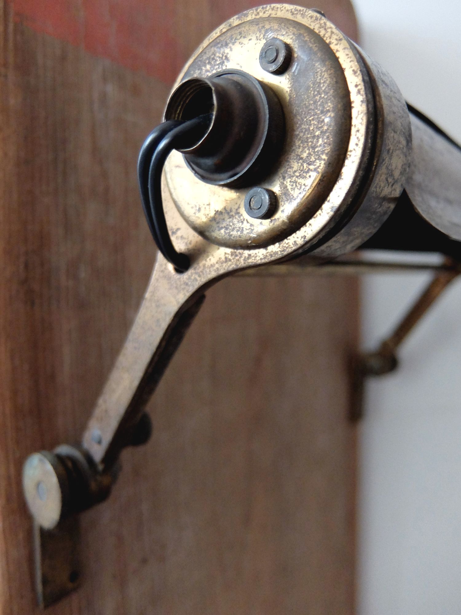 角度や長さが調整可能な真鍮製のピクチャーランプ(2灯)