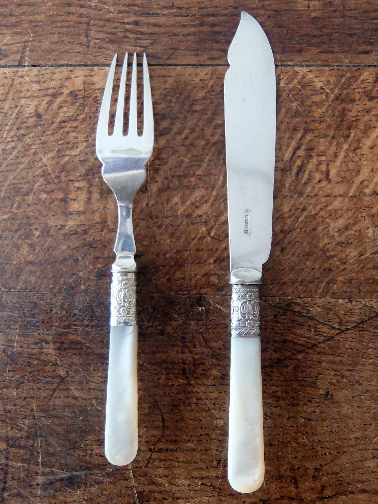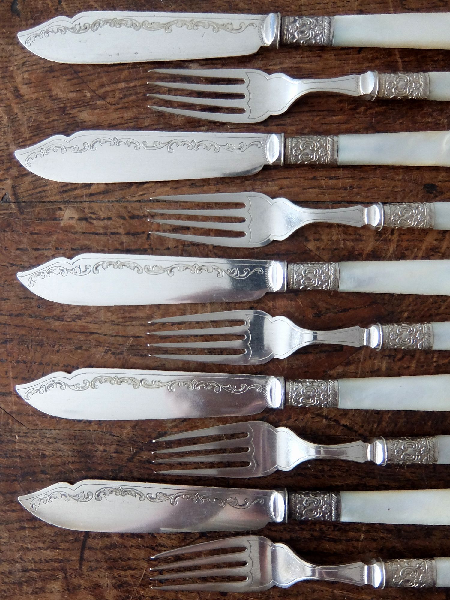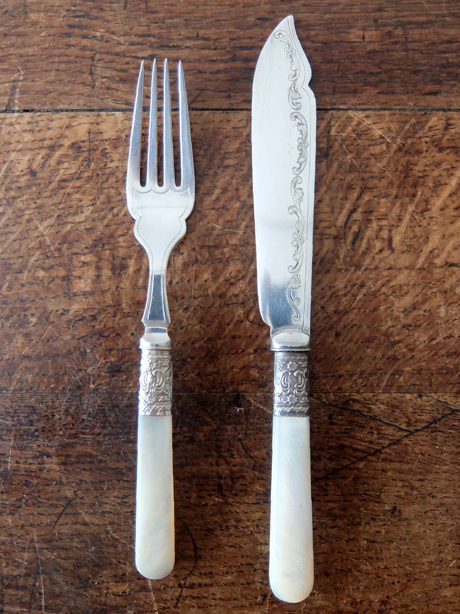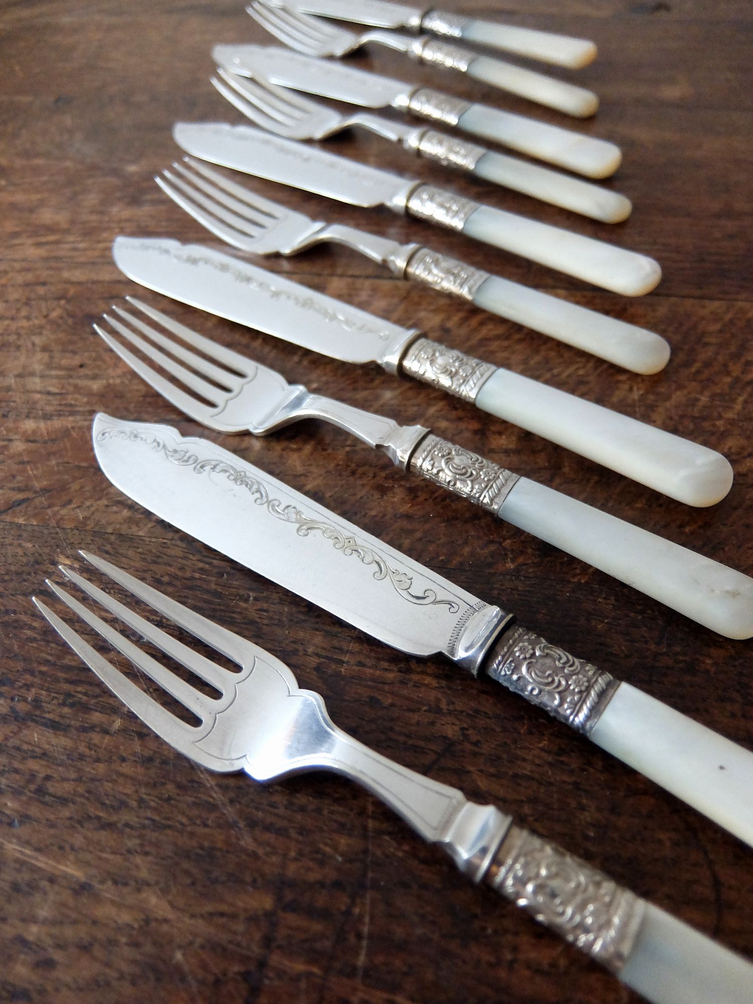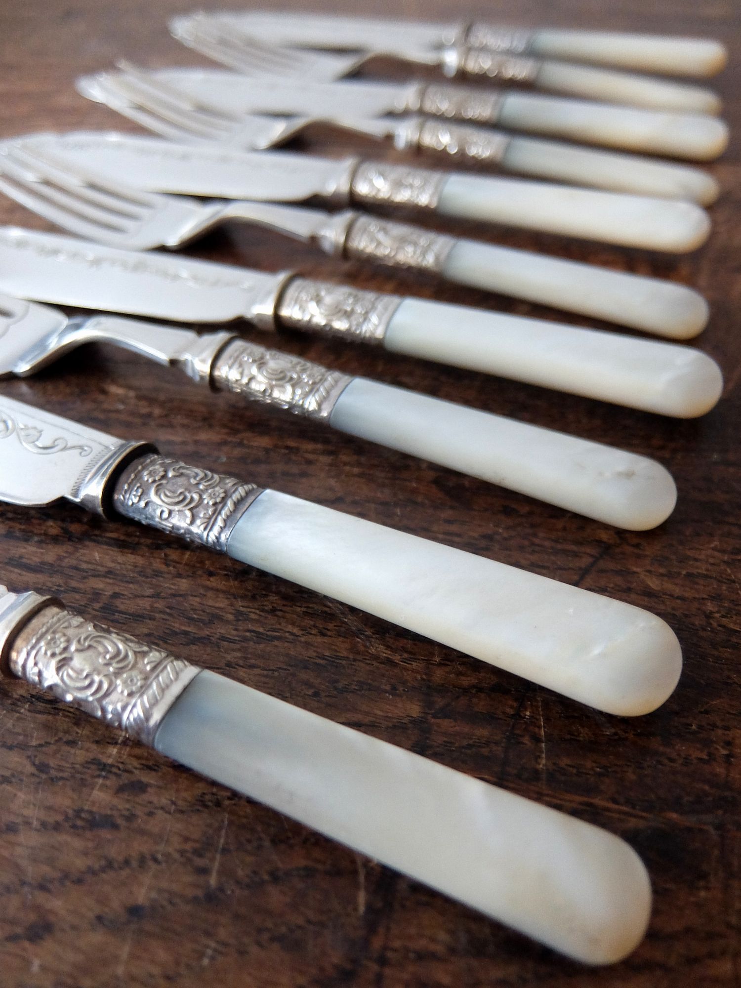 白蝶貝の持ち手が美しいシルバープレートのナイフとフォークのセット