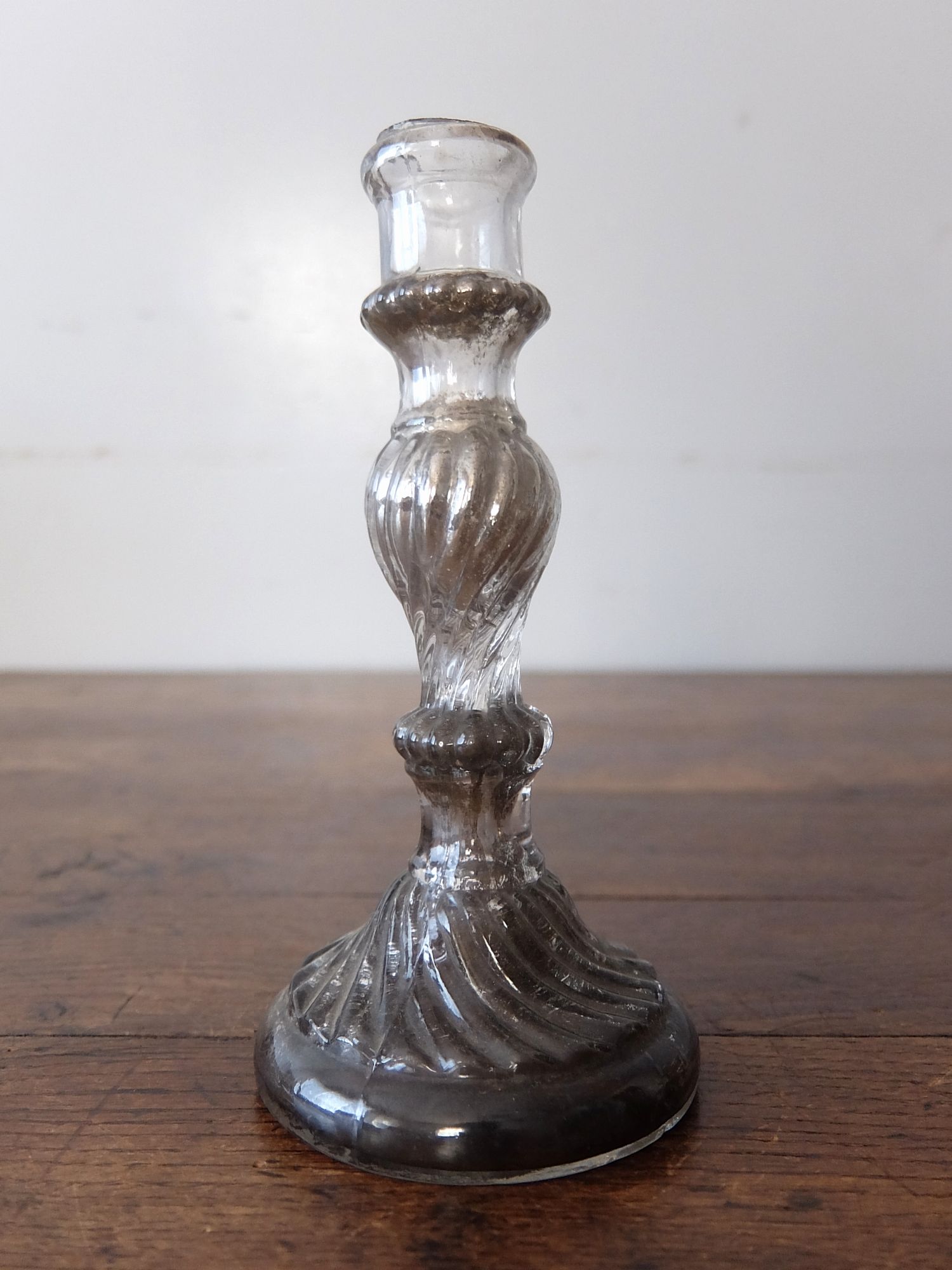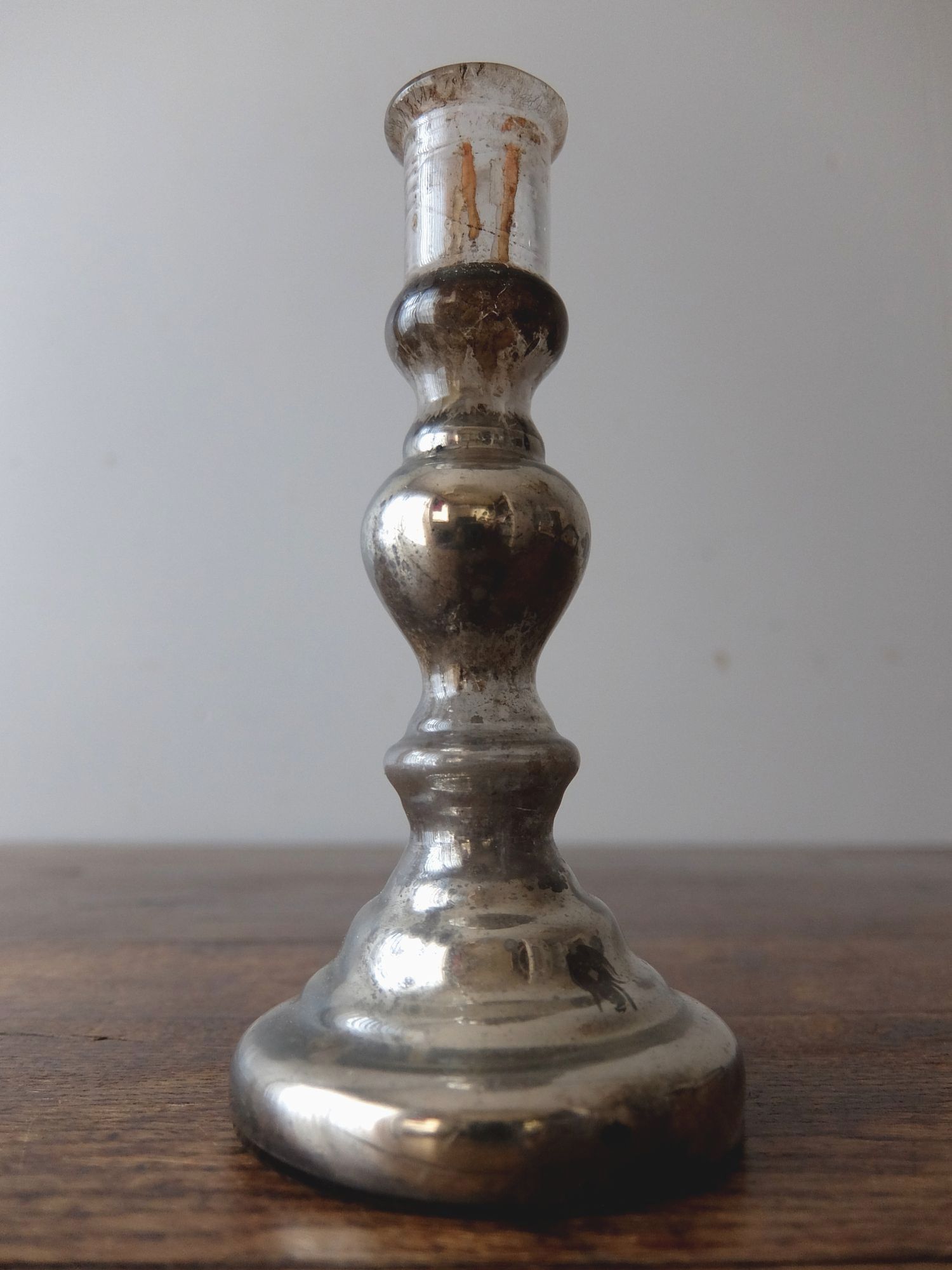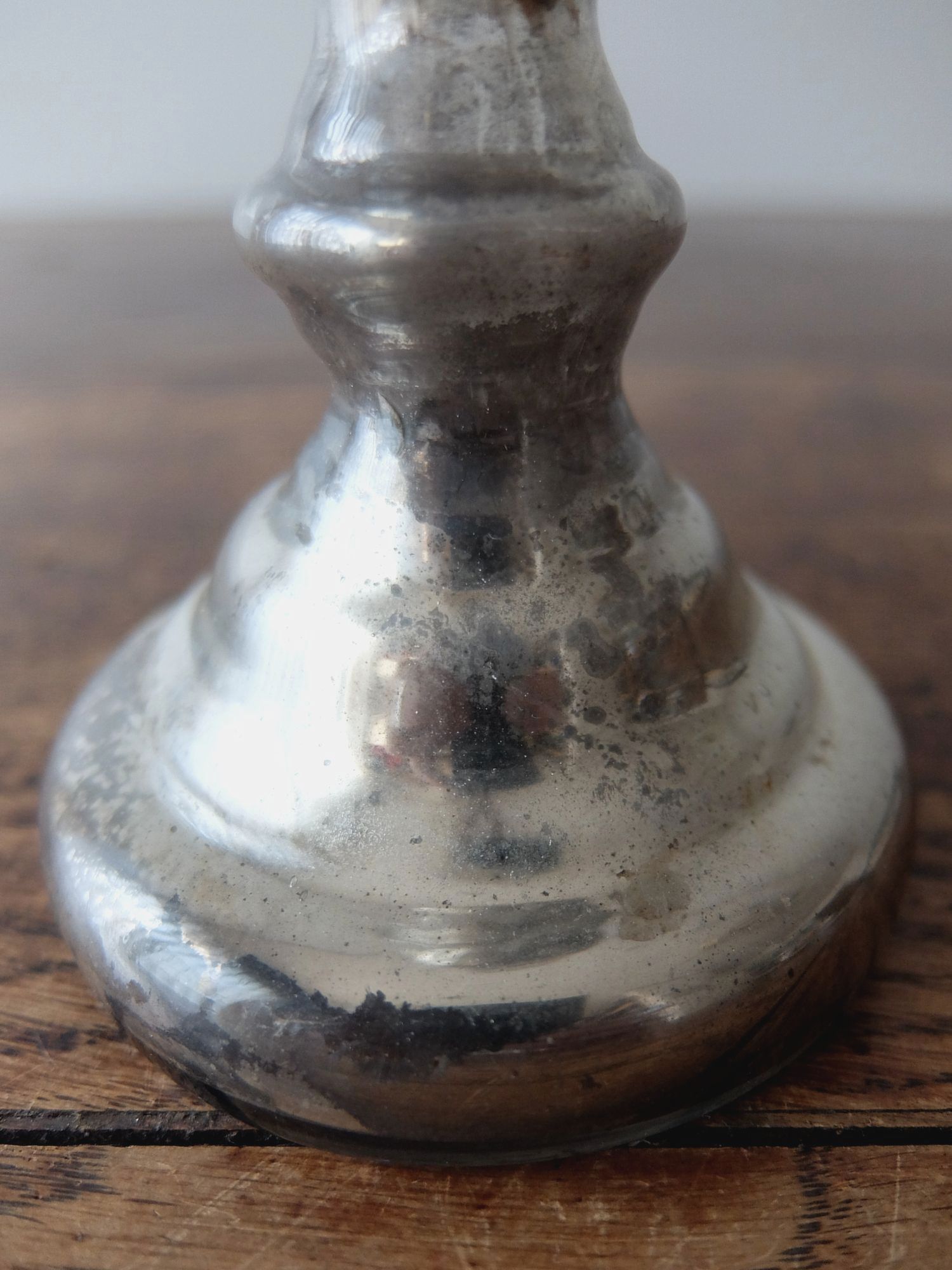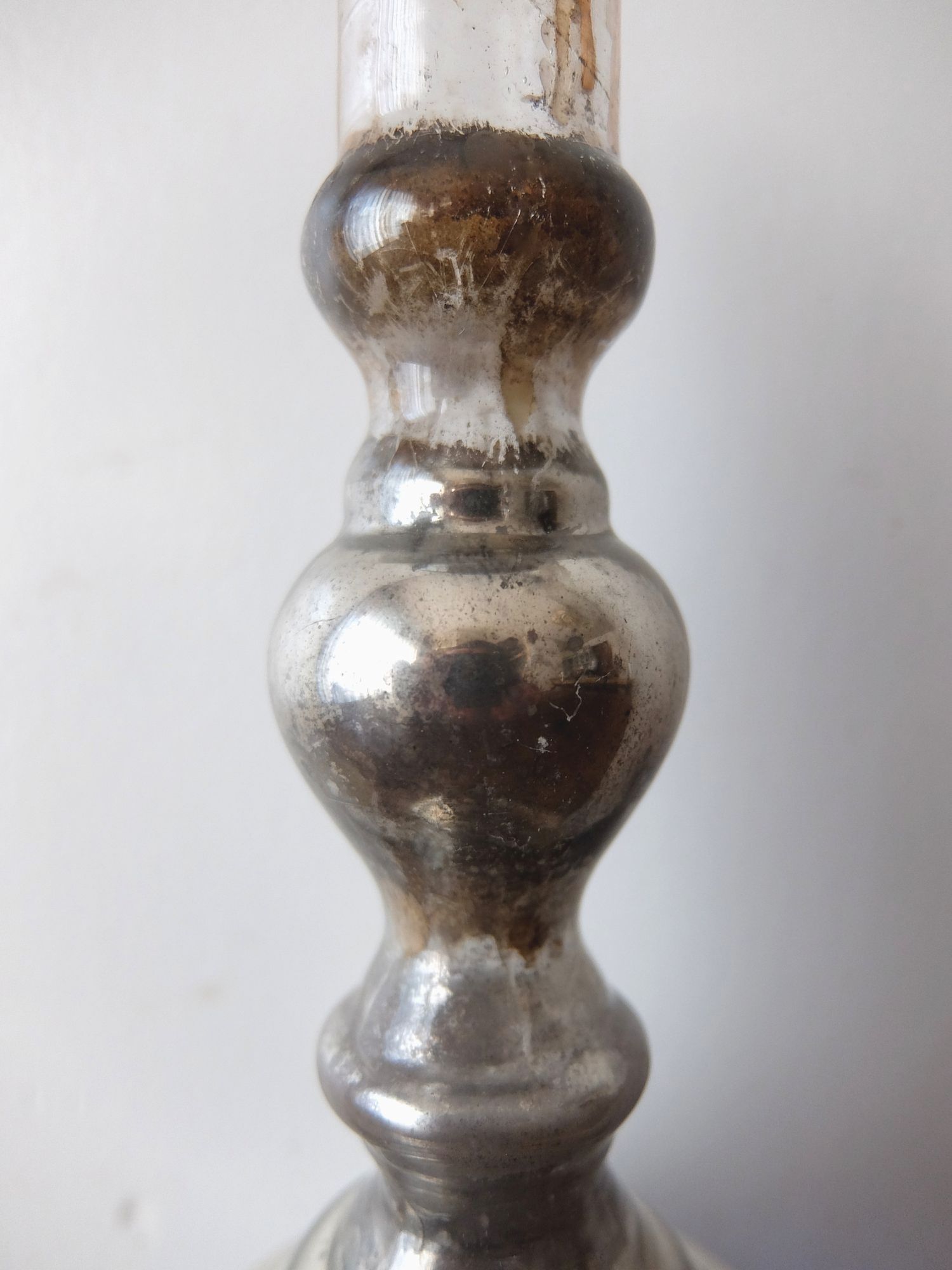 ガラスの内側に水銀を施した中空のキャンドルスタンド