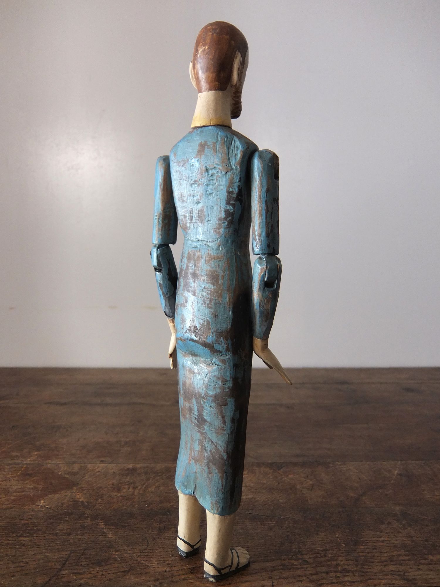 グラスアイズが印象的な木製の聖人像