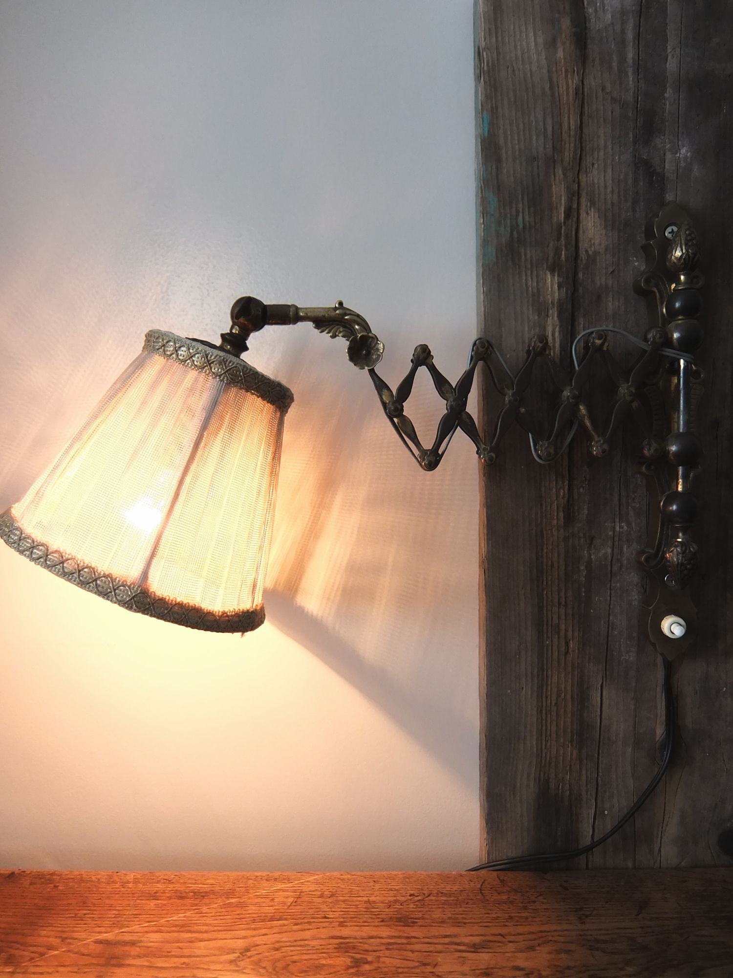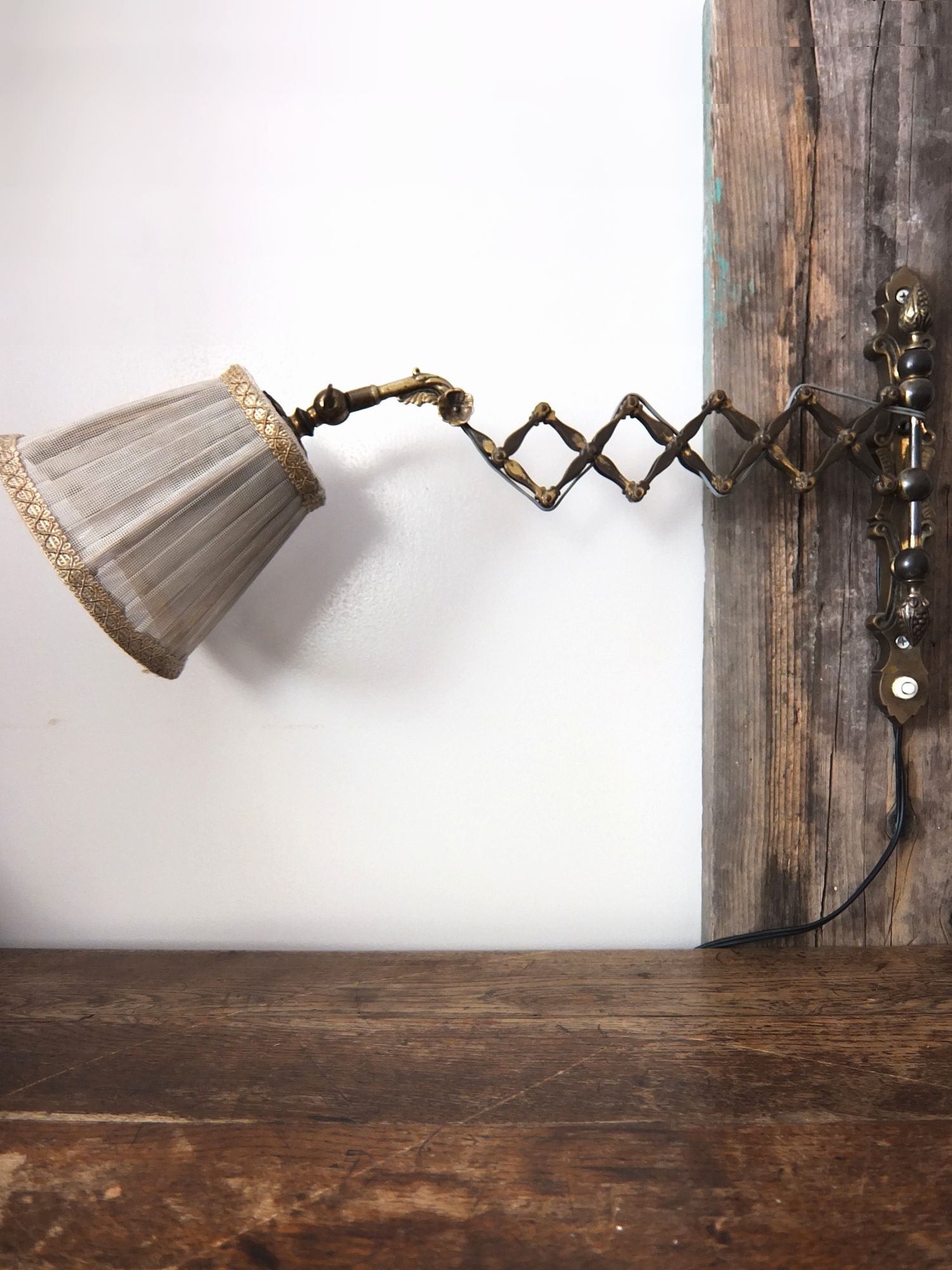 透けたレースが涼しげでエレガントな雰囲気の真鍮製のシザーランプ