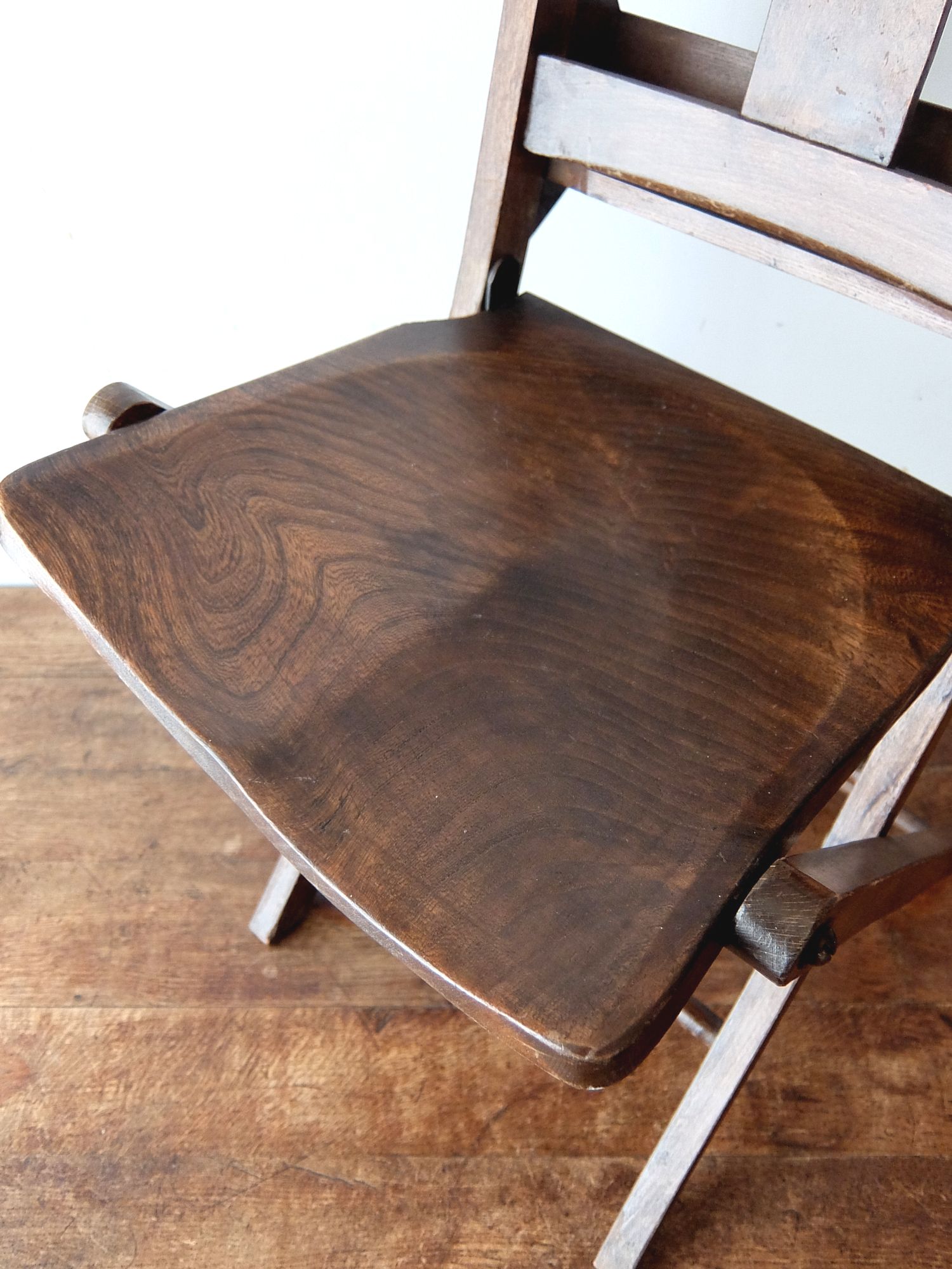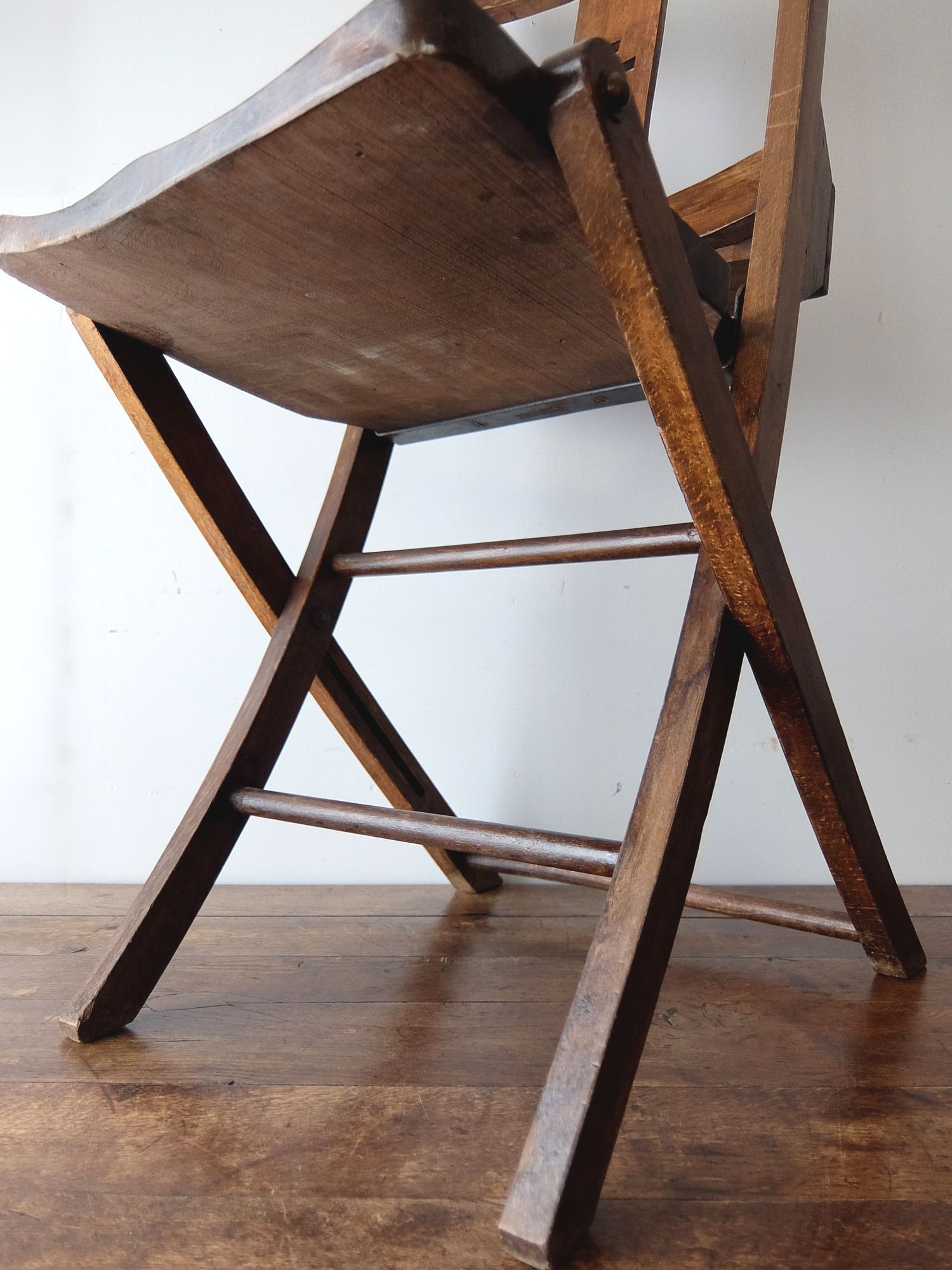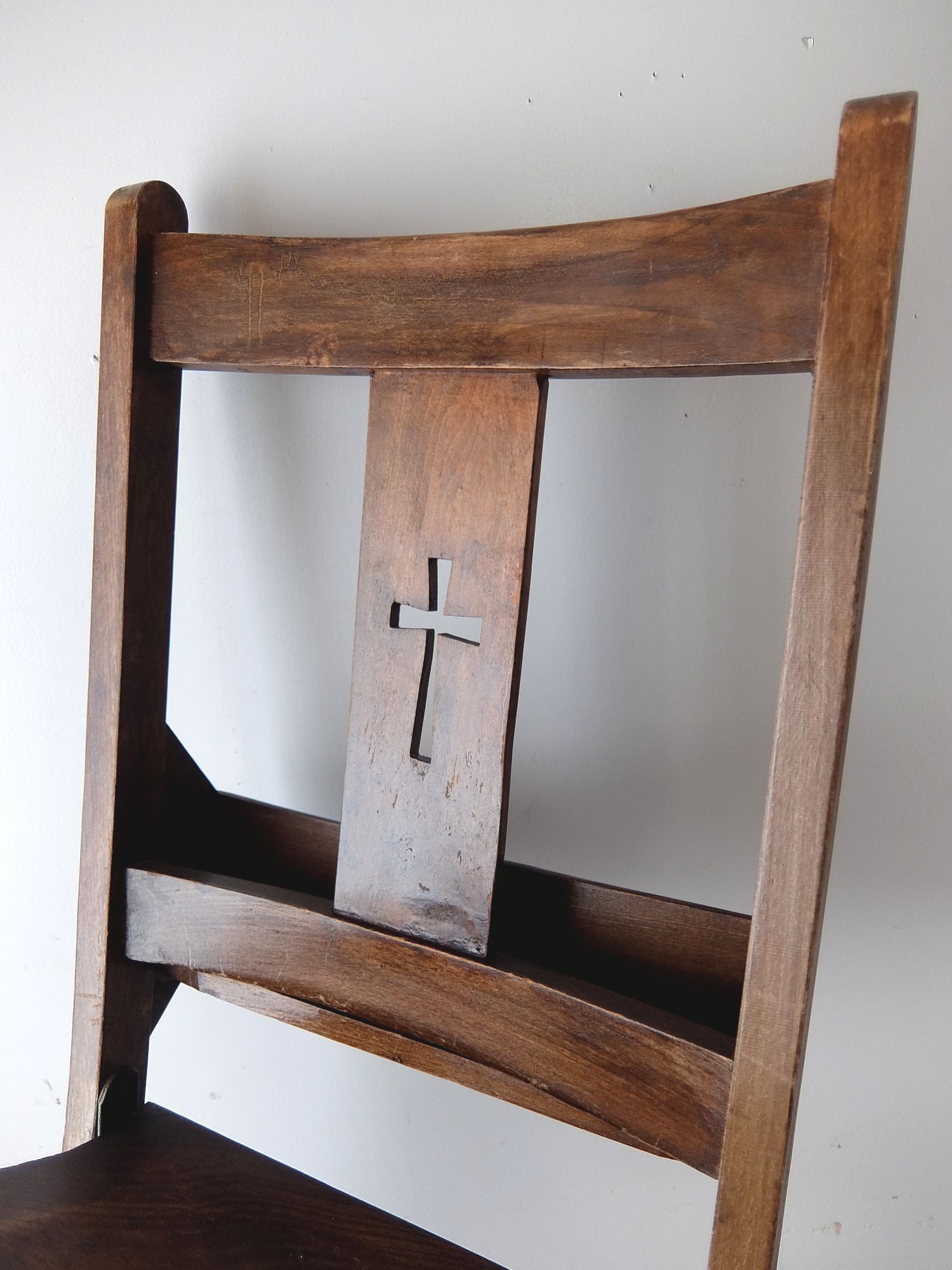 背もたれの十字架の意匠が印象的な折り畳み式のチャーチチェアー
