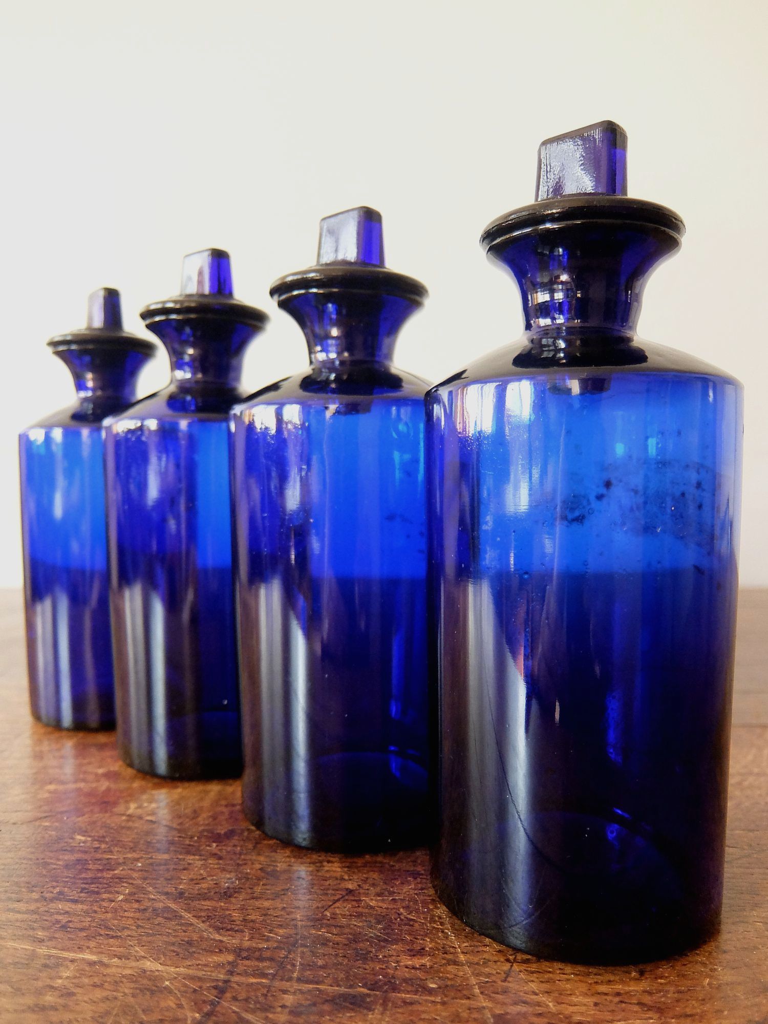 ゴールドのペイントのラベルが印象的なブルーの薬瓶