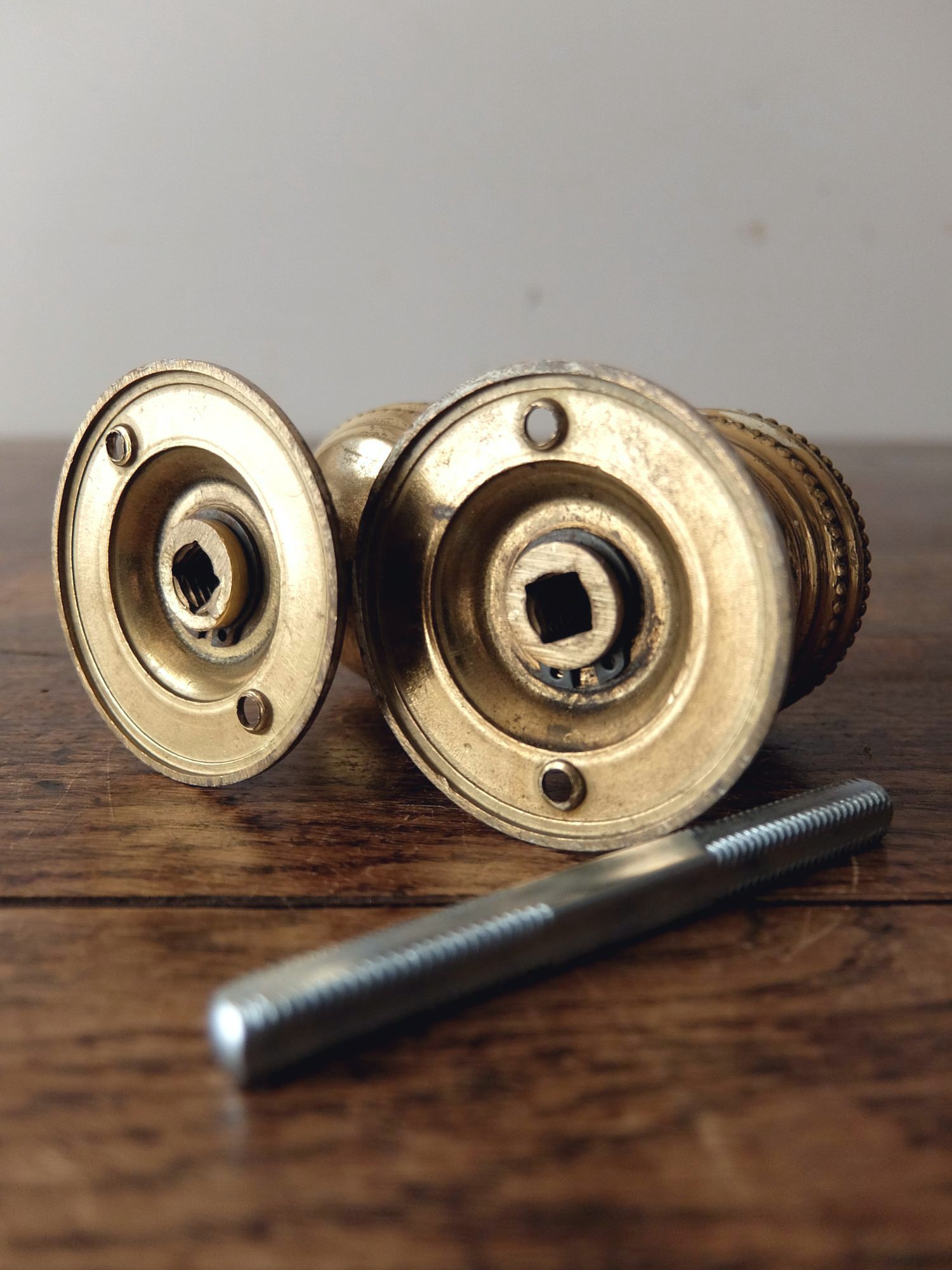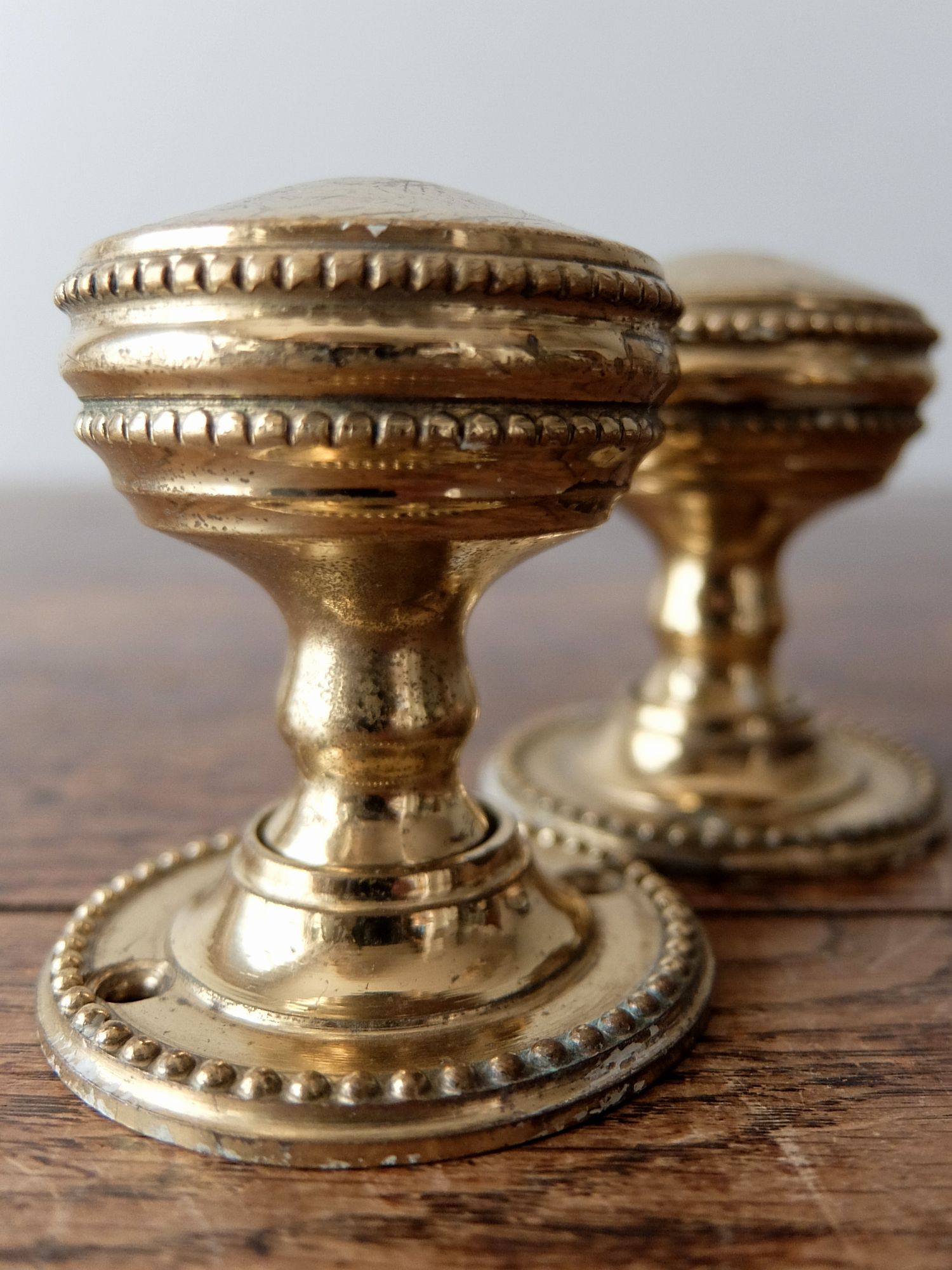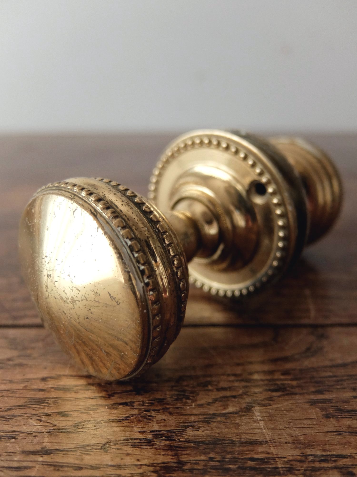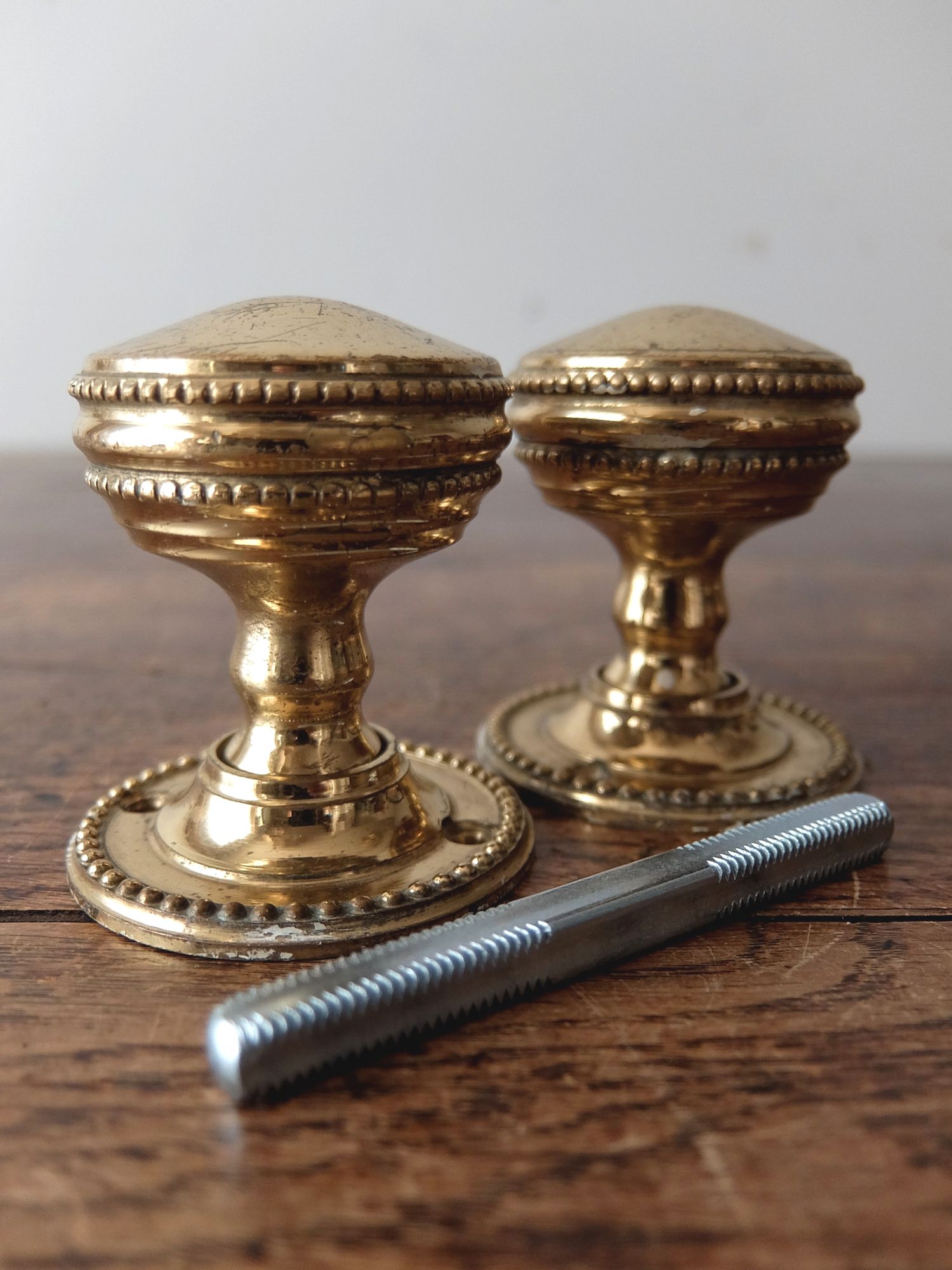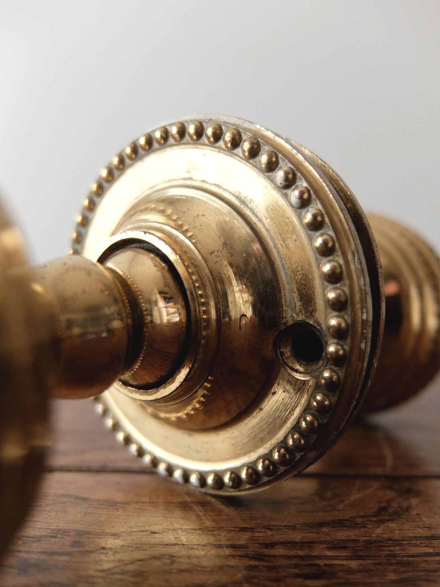 繊細な装飾が美しい真鍮製のドアノブ(芯棒7mm角)