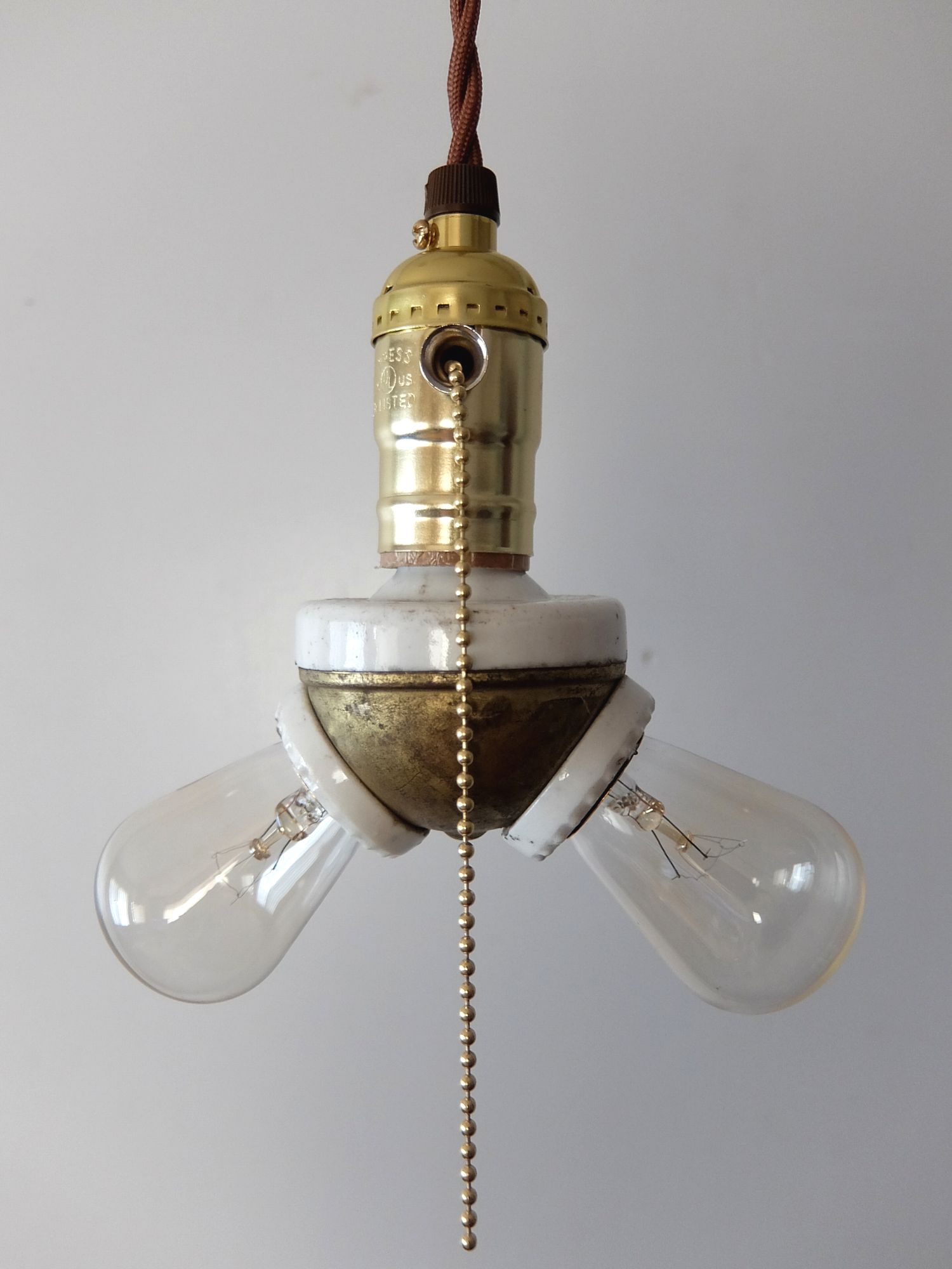 経年の塗装の雰囲気が美しい可動式の2灯ペンダント照明(全ソケットスイッチ付)