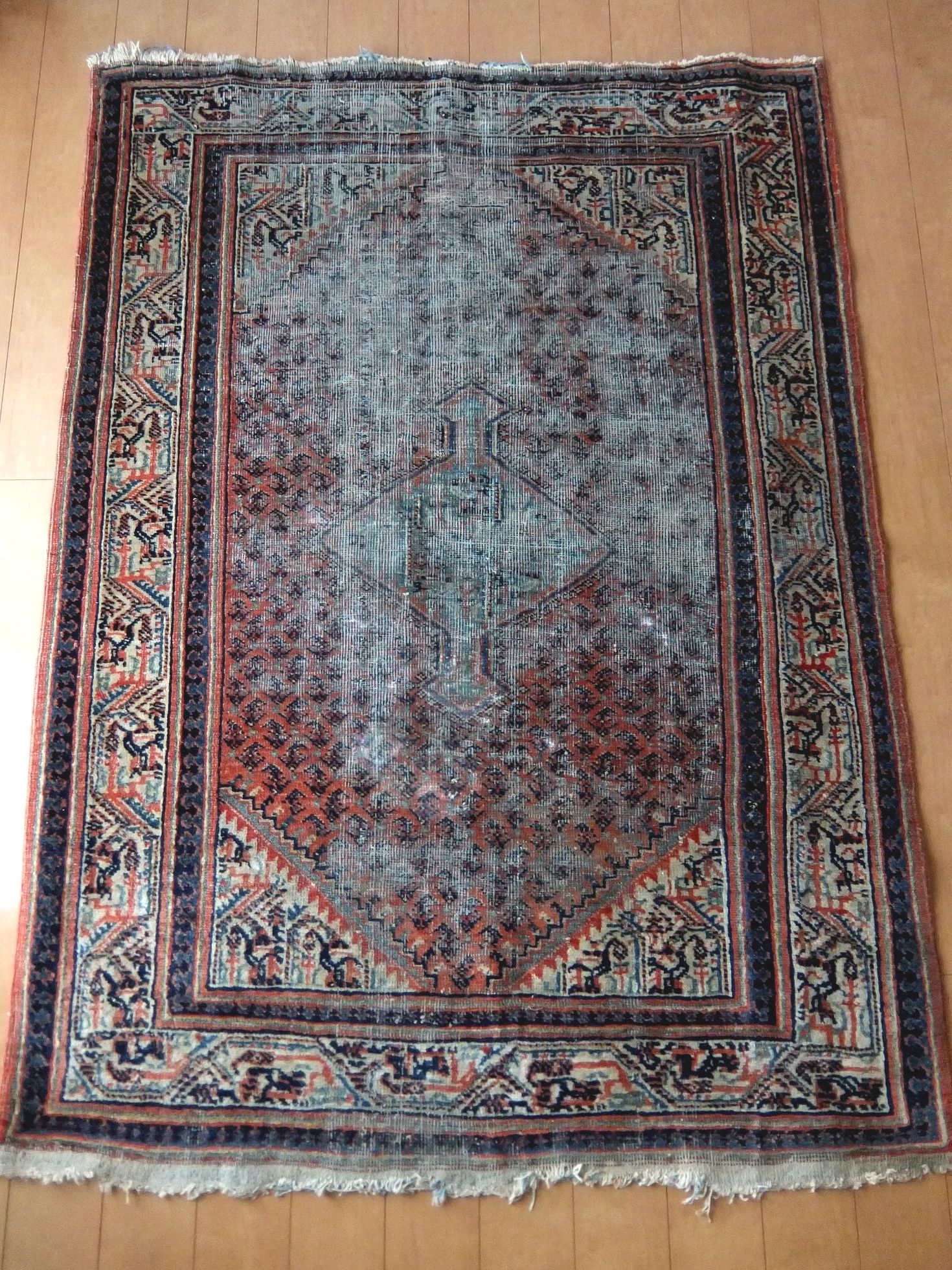 経年の色合いが魅力的なウールのペルシャ絨毯