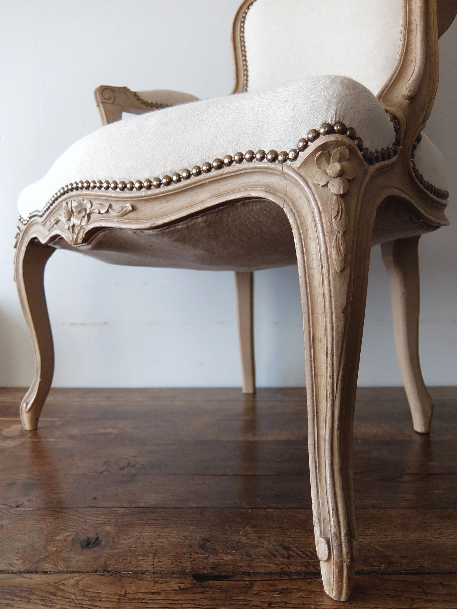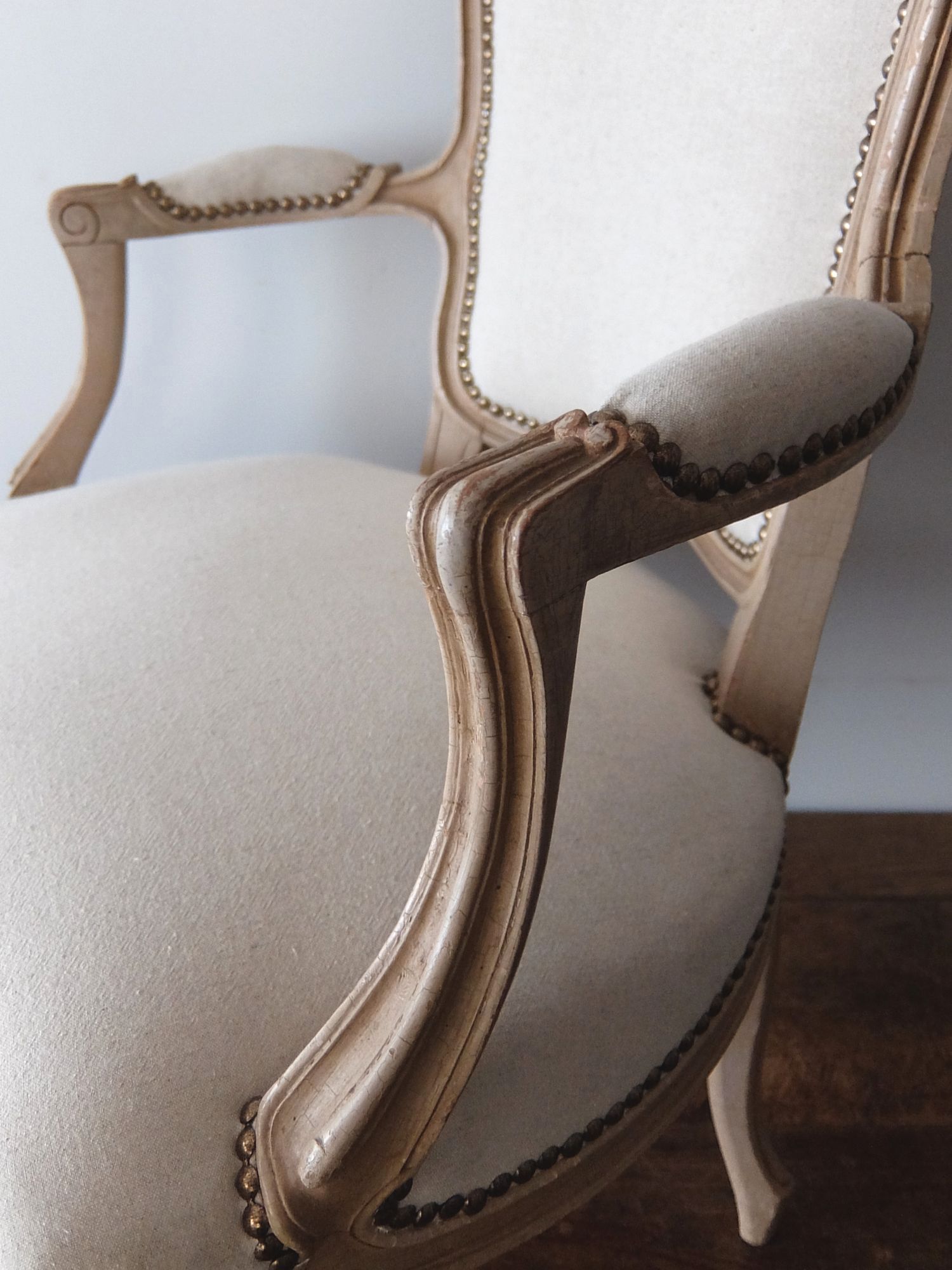 細部の意匠と塗装の風合いが美しいアームチェアー
