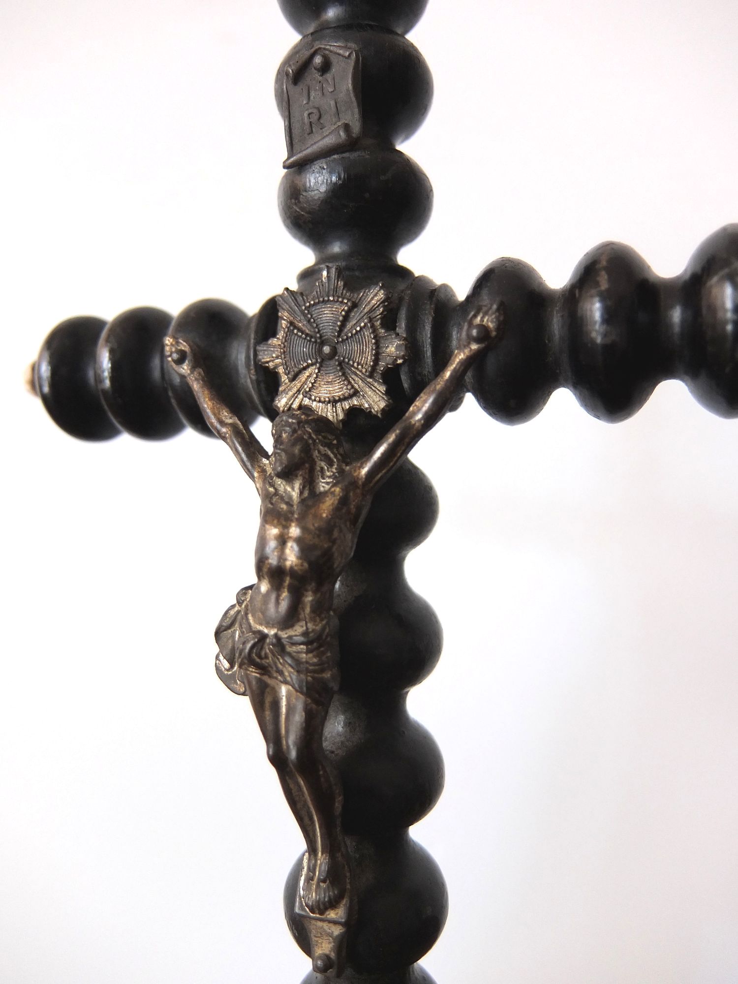 経年の雰囲気が美しい木製ビーズのロザリオ (チェーン長:510mm)