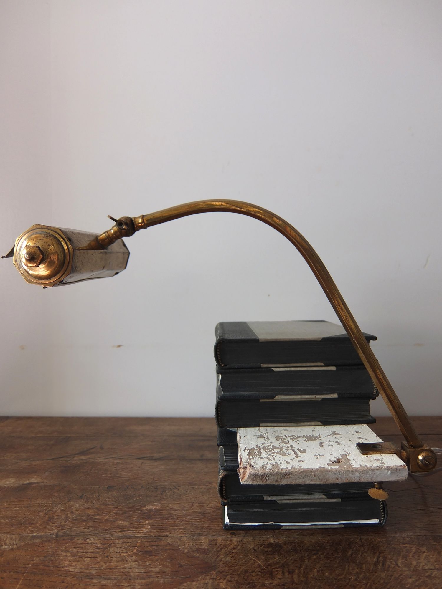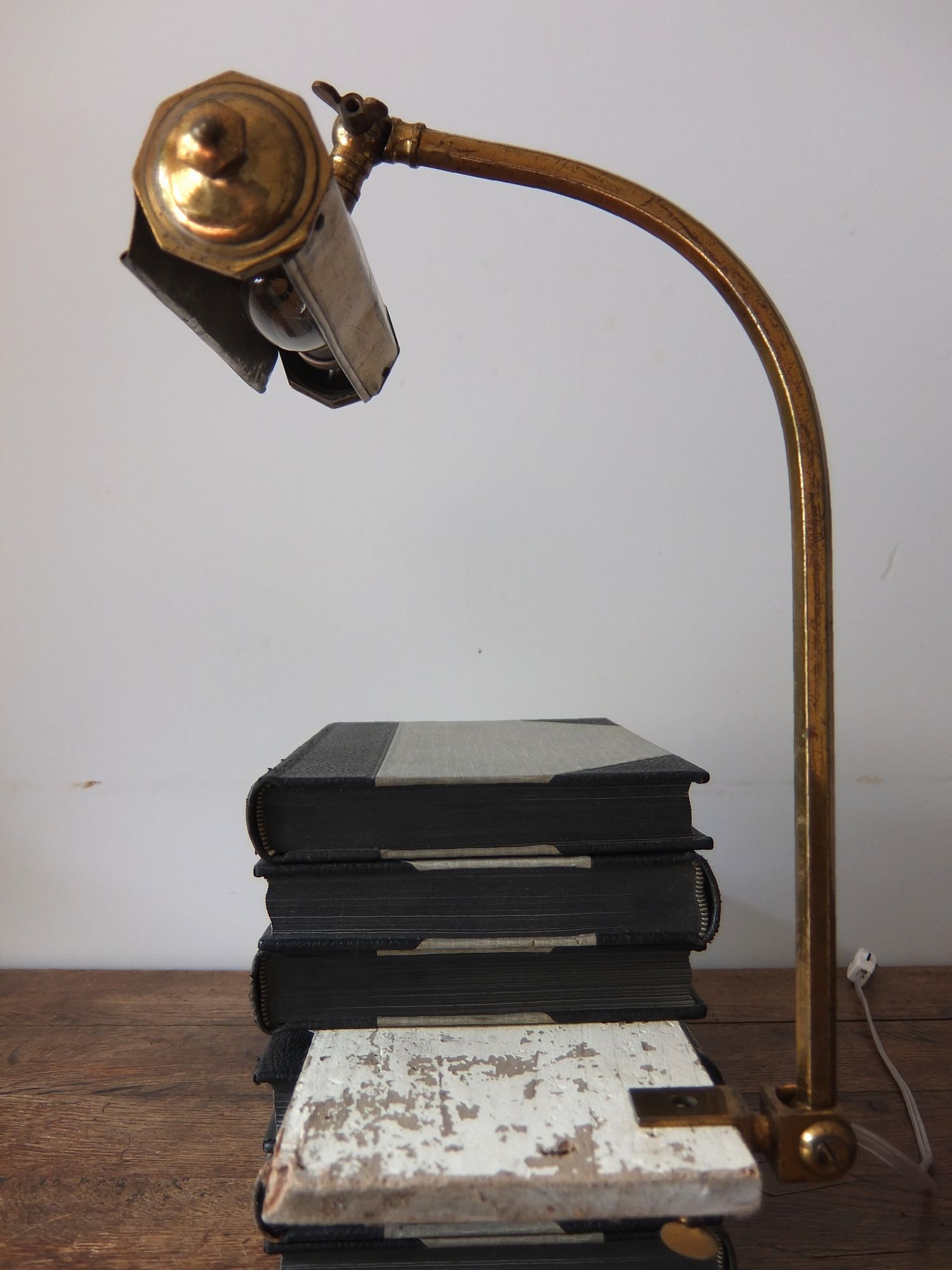 繊細な意匠と金色が美しいクランプ式のデスクランプ