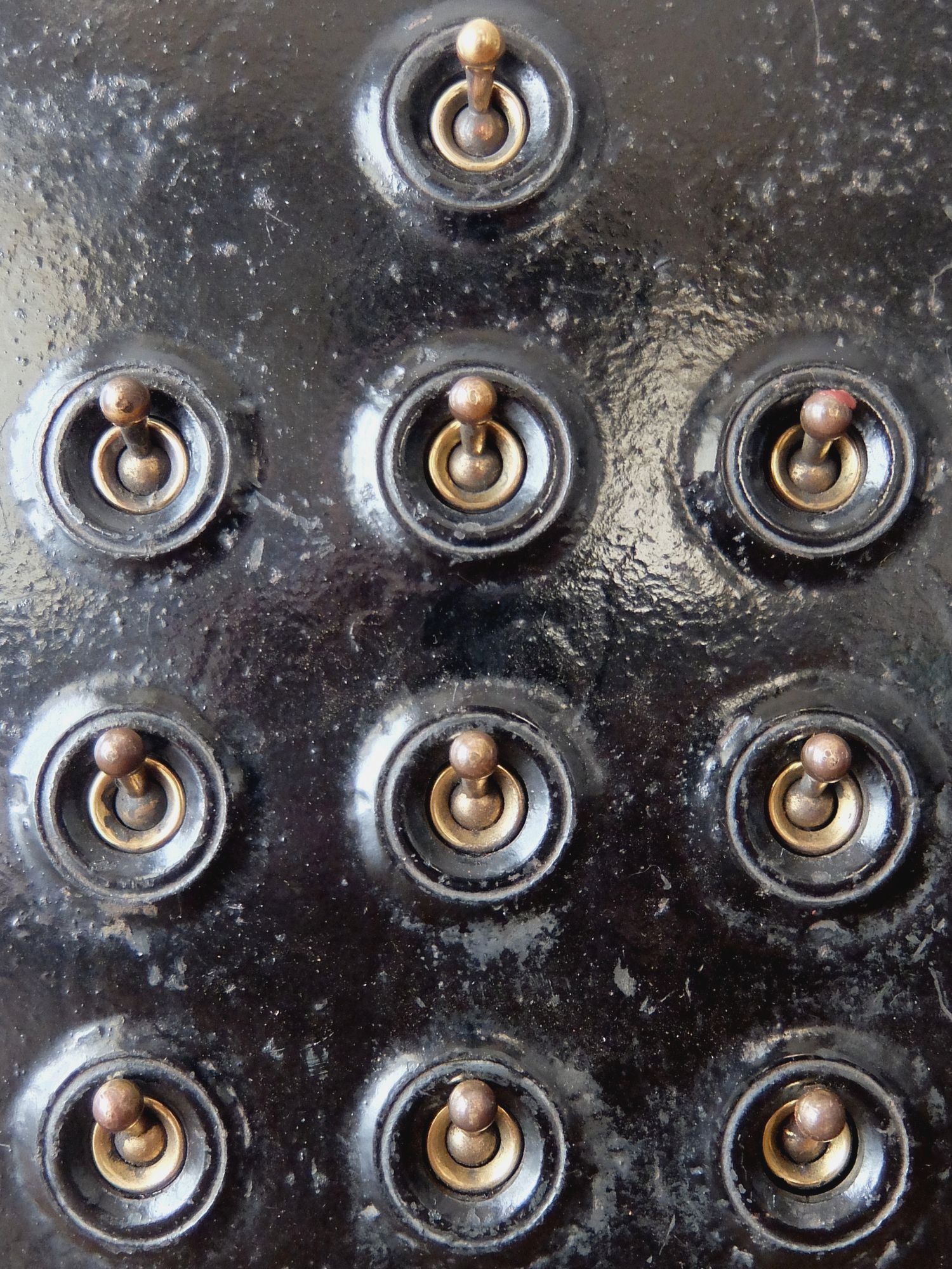 バーミンガムの工場で使用されていた鉄のケースに収まったロータリースイッチ