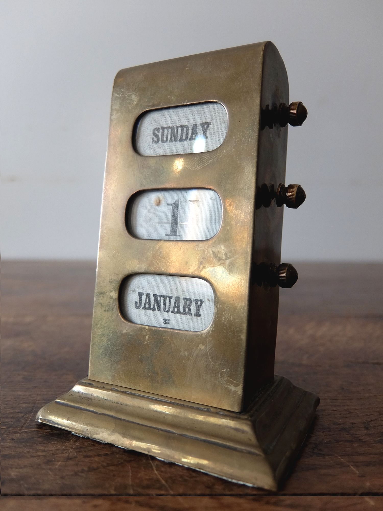 フランス語表記が珍しい19世紀末に製作された真鍮製の万年カレンダー