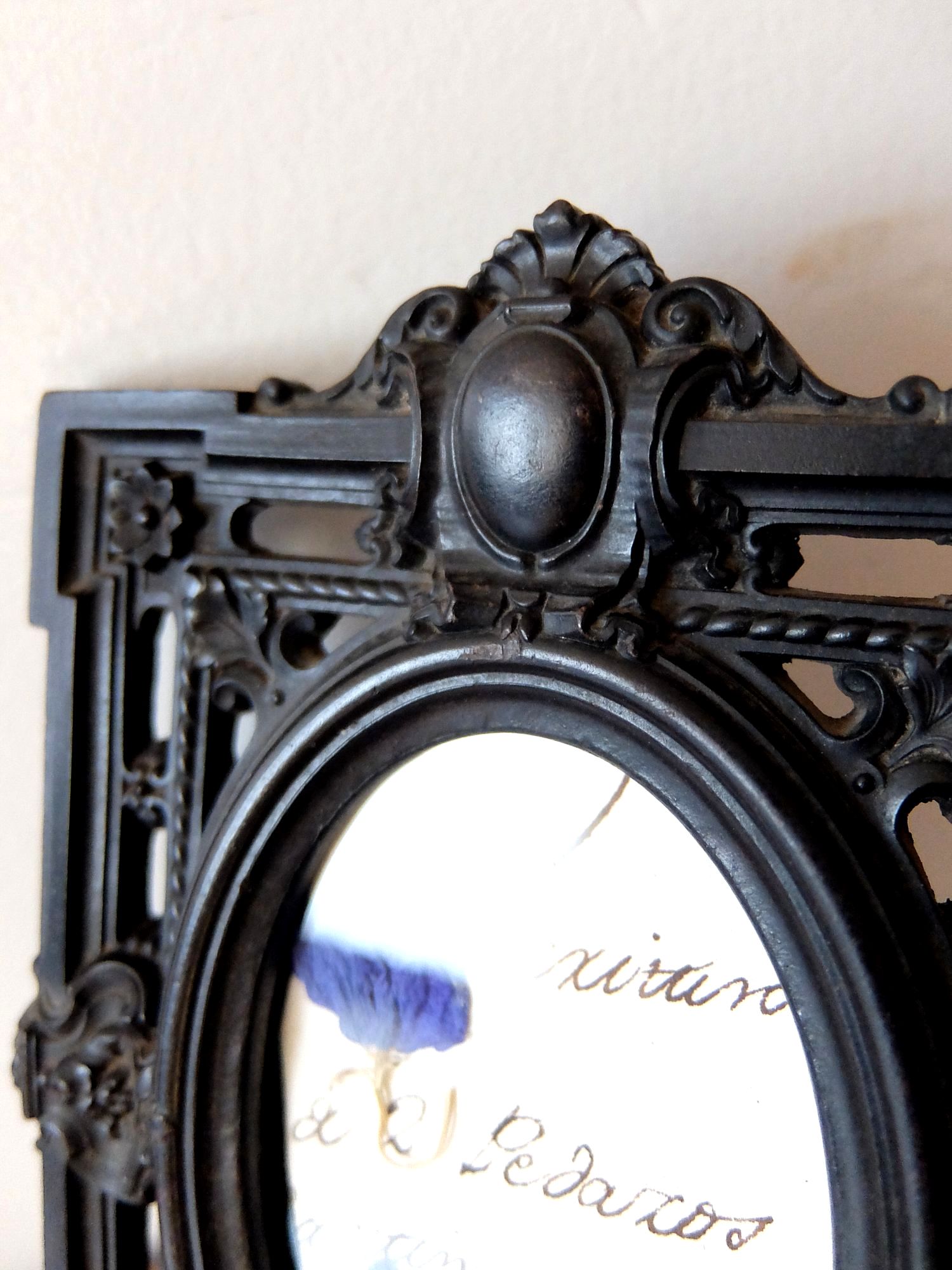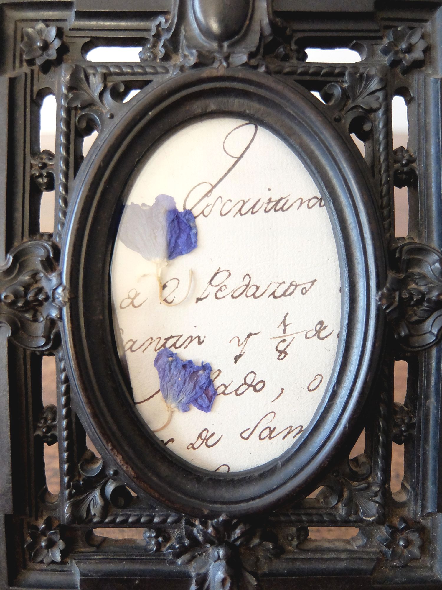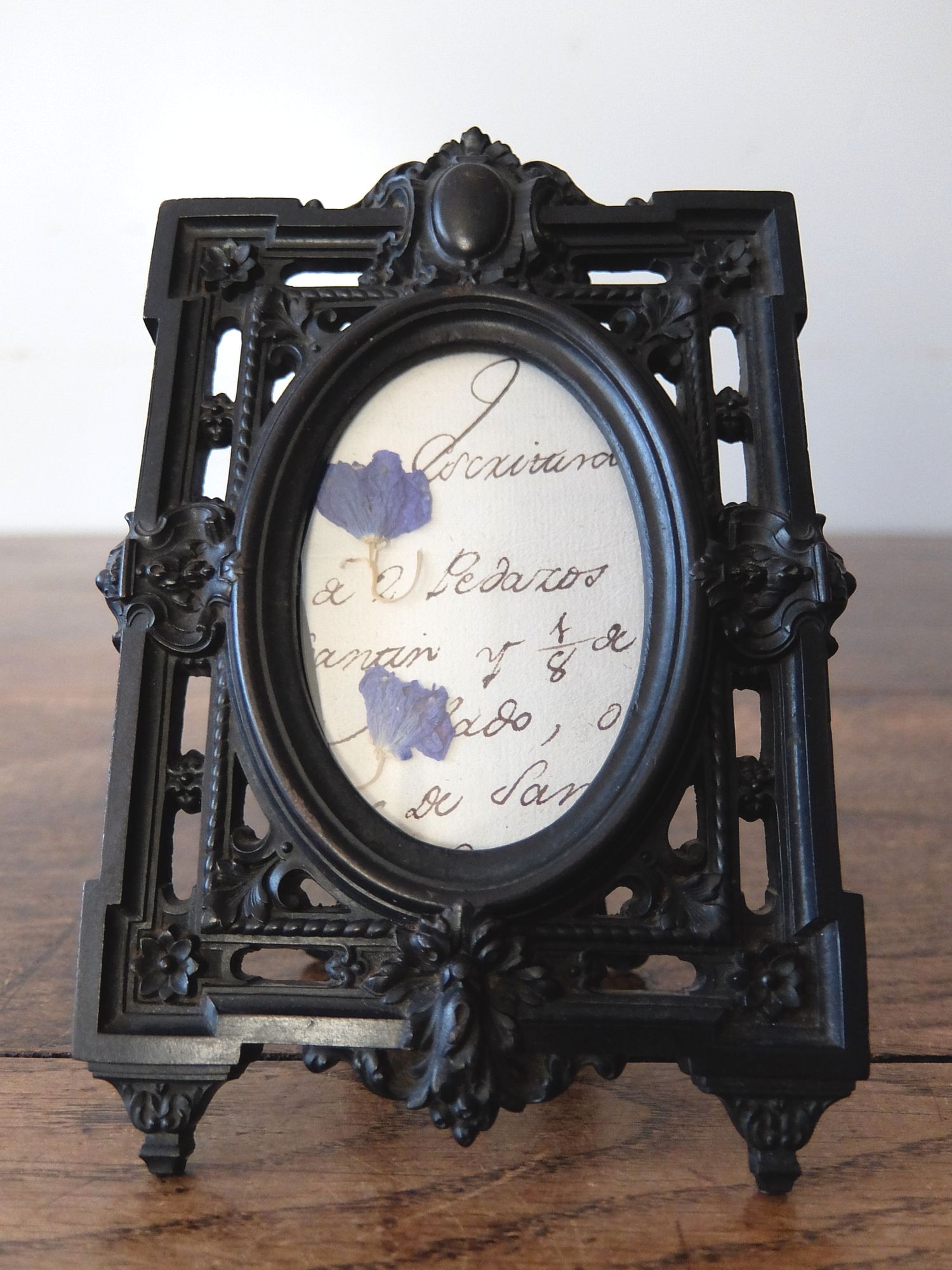 雄牛の血液と木屑を混ぜて熱圧縮した素材【Bois Durci】で作られたナポレオンⅢ世様式の写真たて(古紙・ドライフラワー入り)
