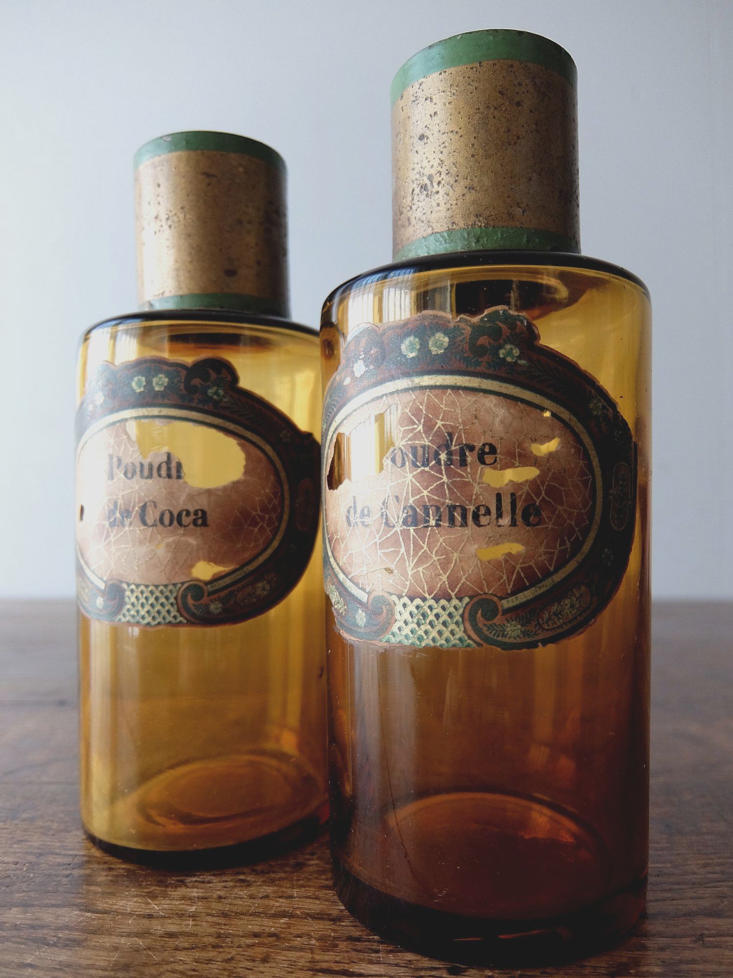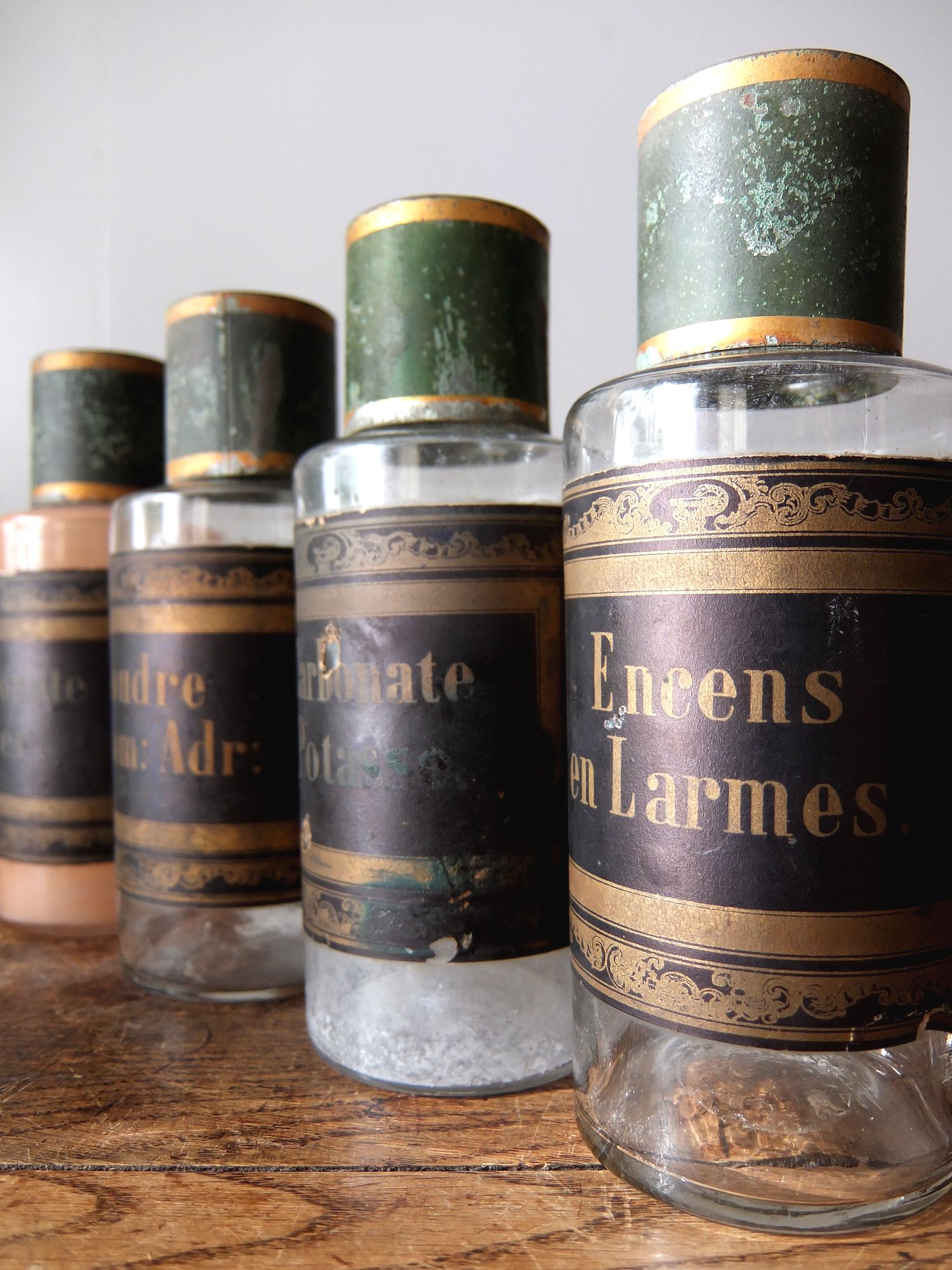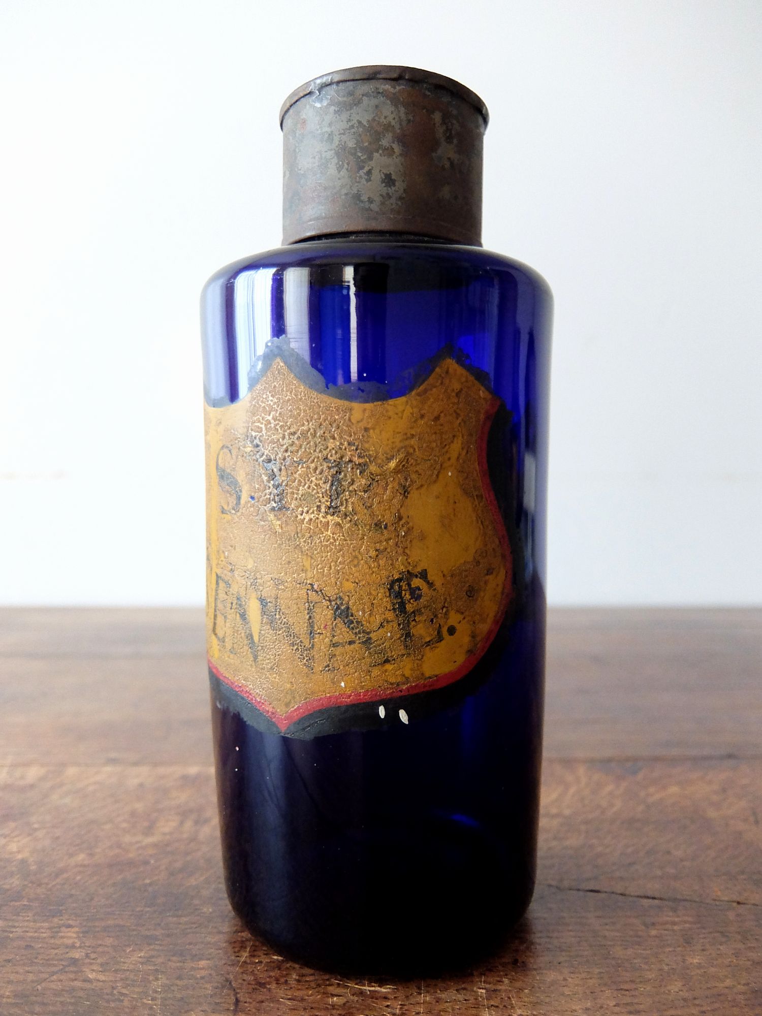 経年を感じさせる蓋とラベルがついた薬瓶