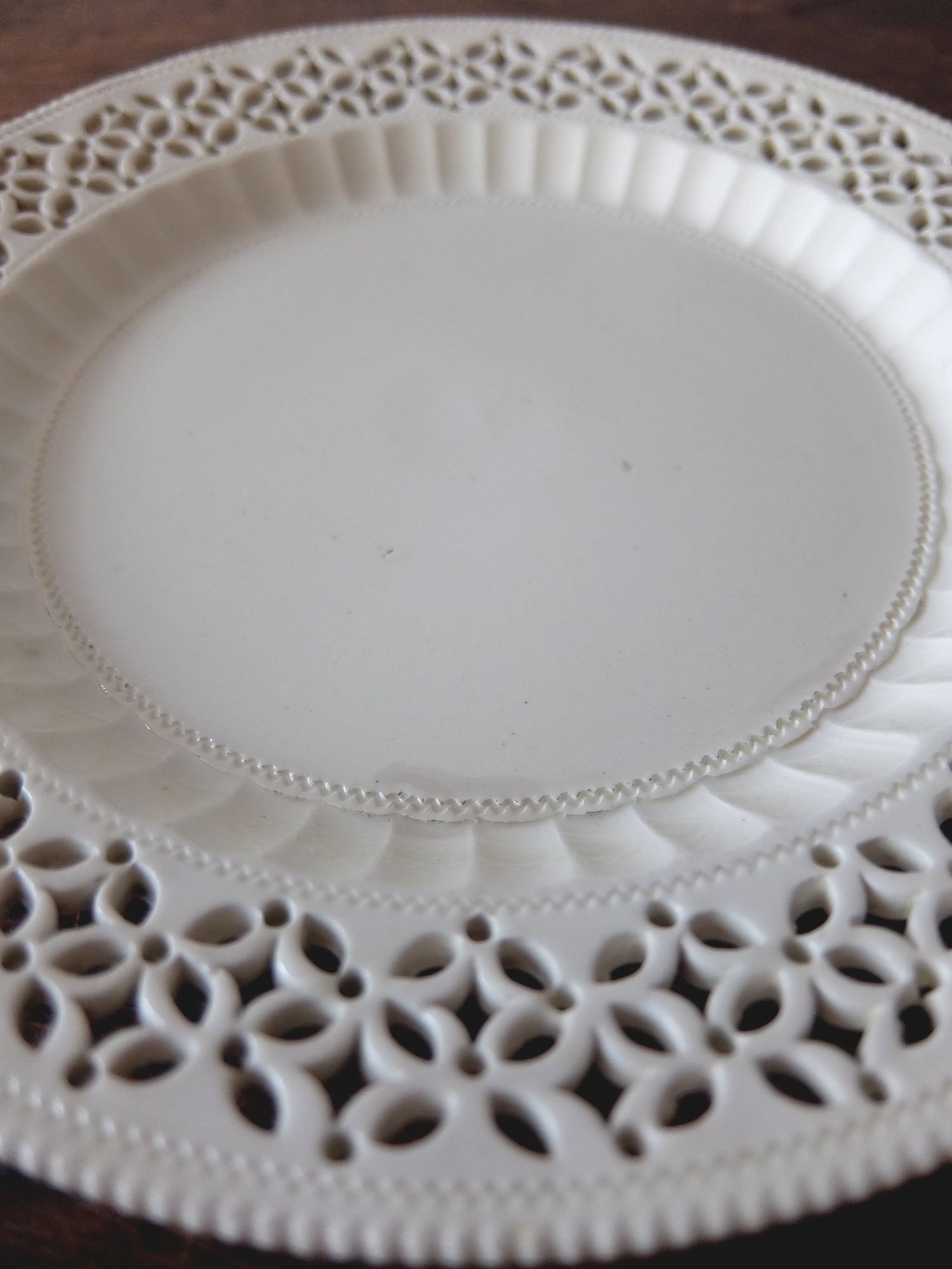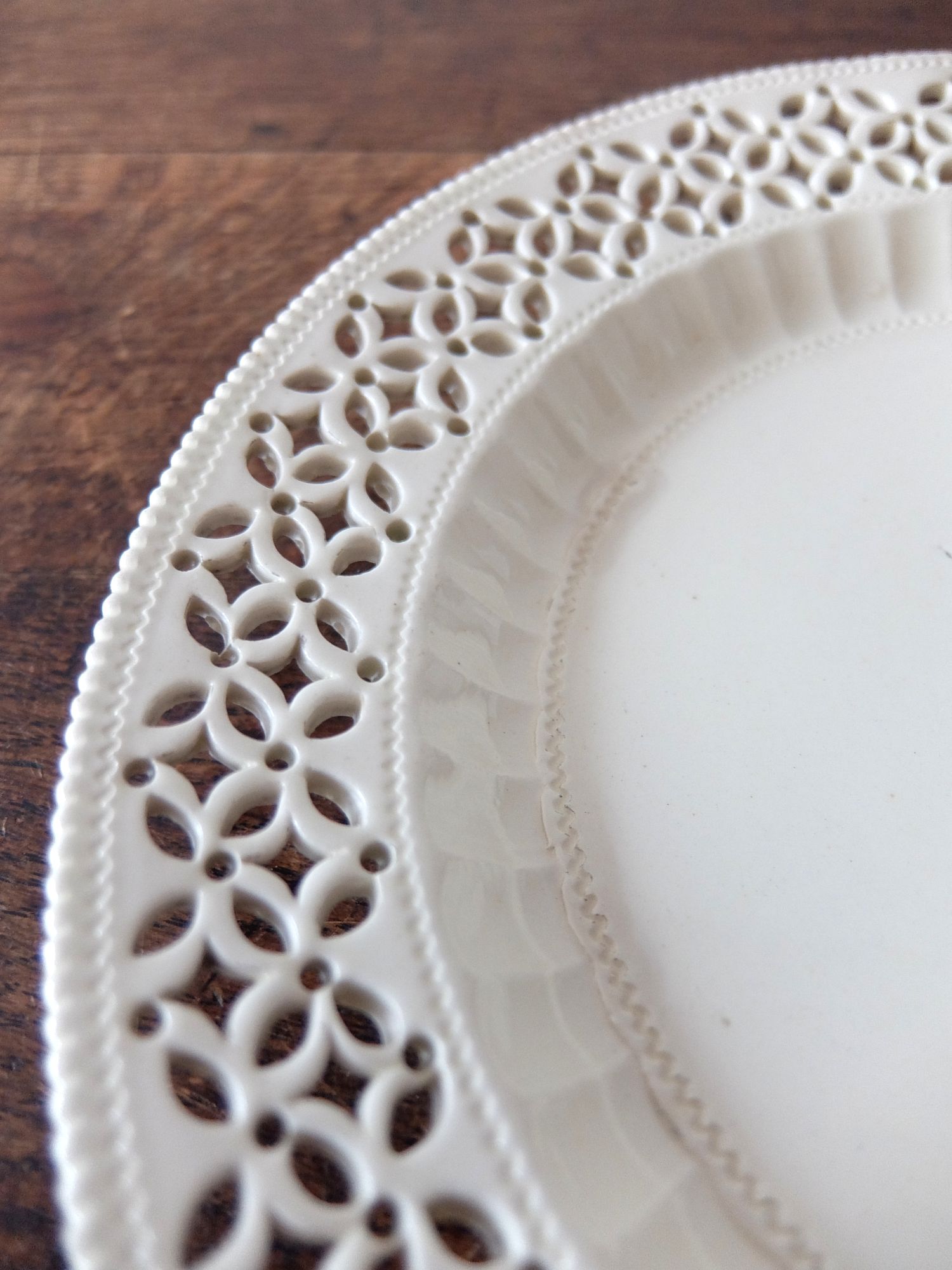 透かしのレース模様が美しいリーズポタリーの平皿