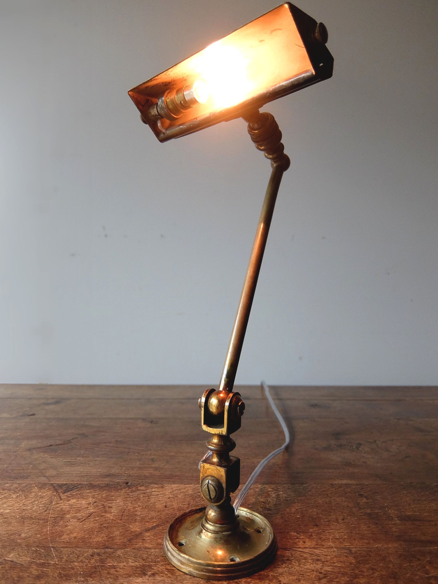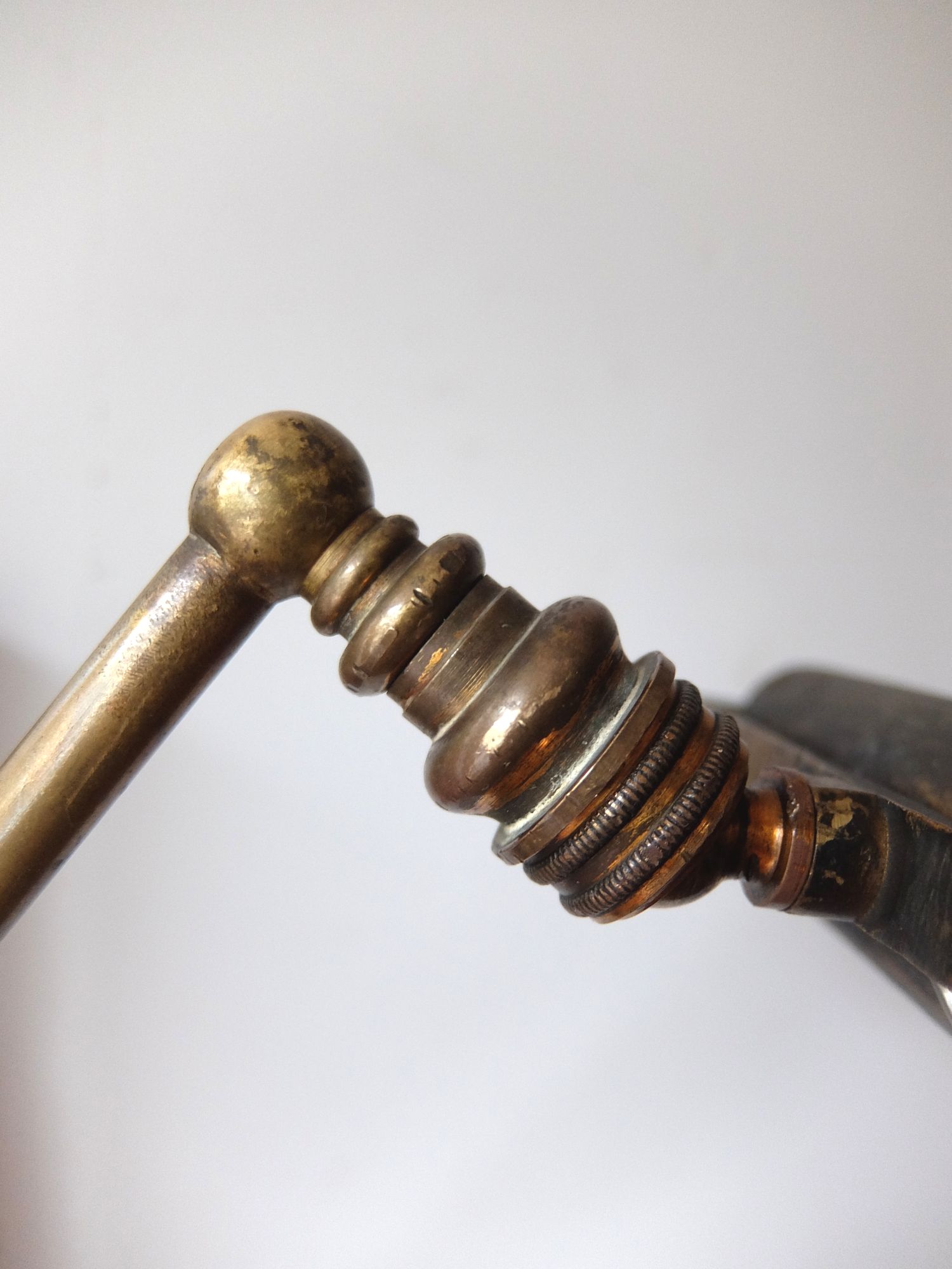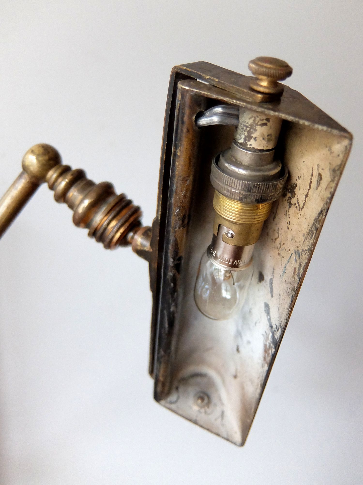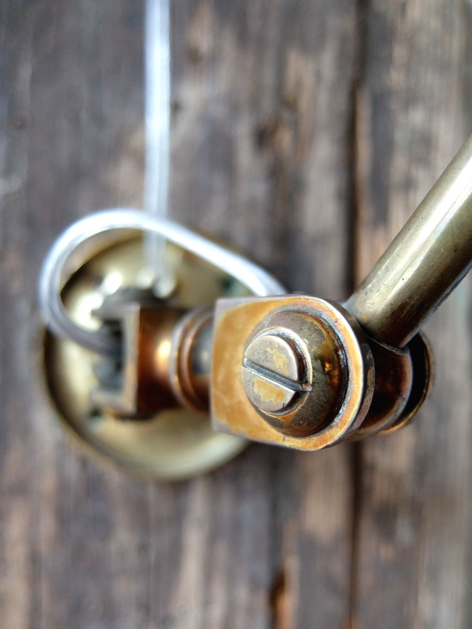真鍮の経年の色彩が美しい壁付けの多関節ランプ
