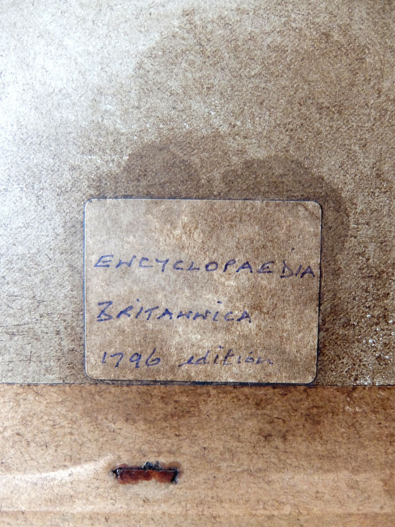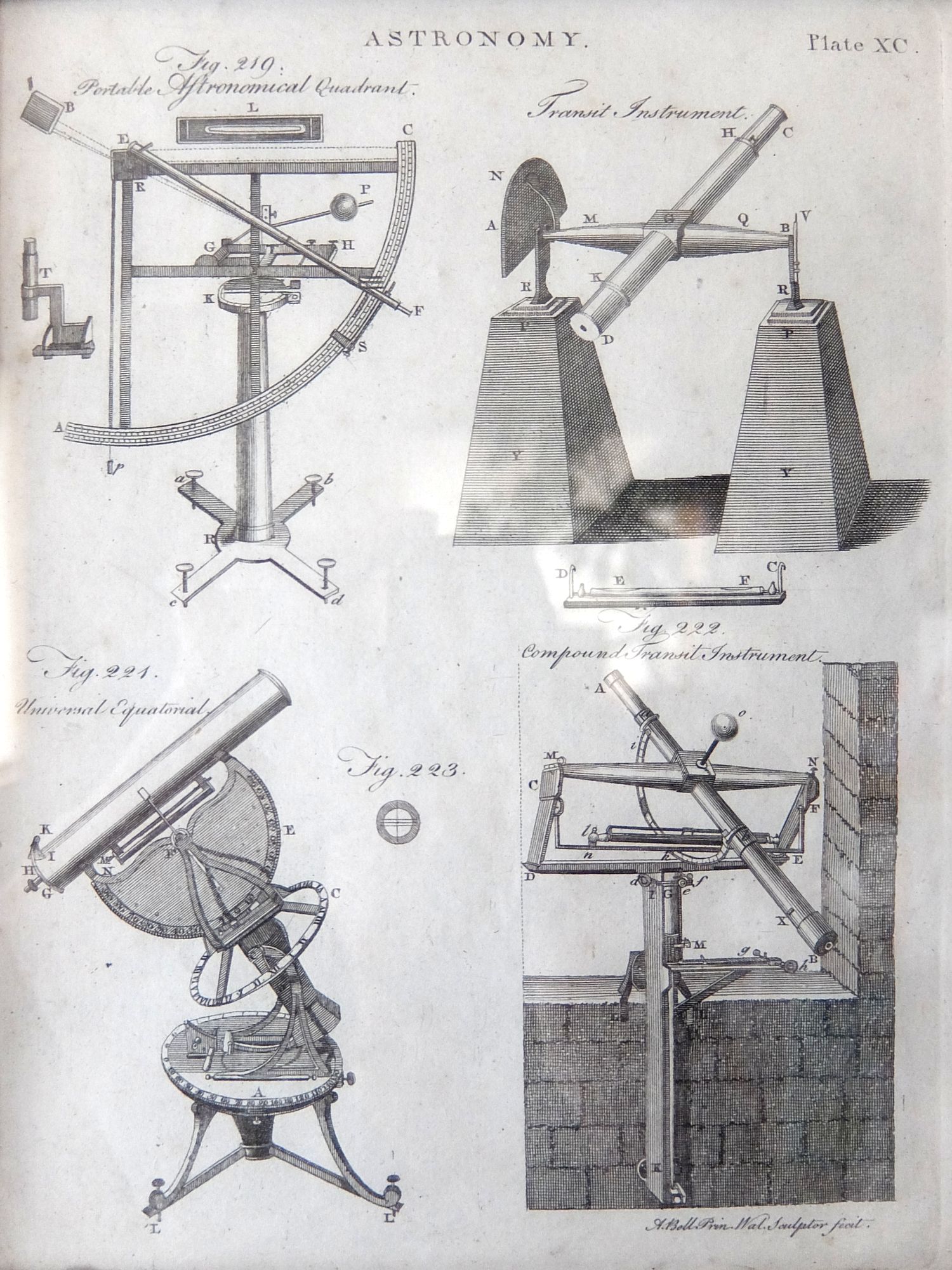 1796年に製本された【ブリタニカ天文学百科事典】より天文機器の銅版画(【Andrew Bell】作図)の額装品 (Fig219 : Portable Astronimical Quadrant・Transit Instrument, Fig221 : Universal Equatorial, Fig222 : Compound Transit Instrument)