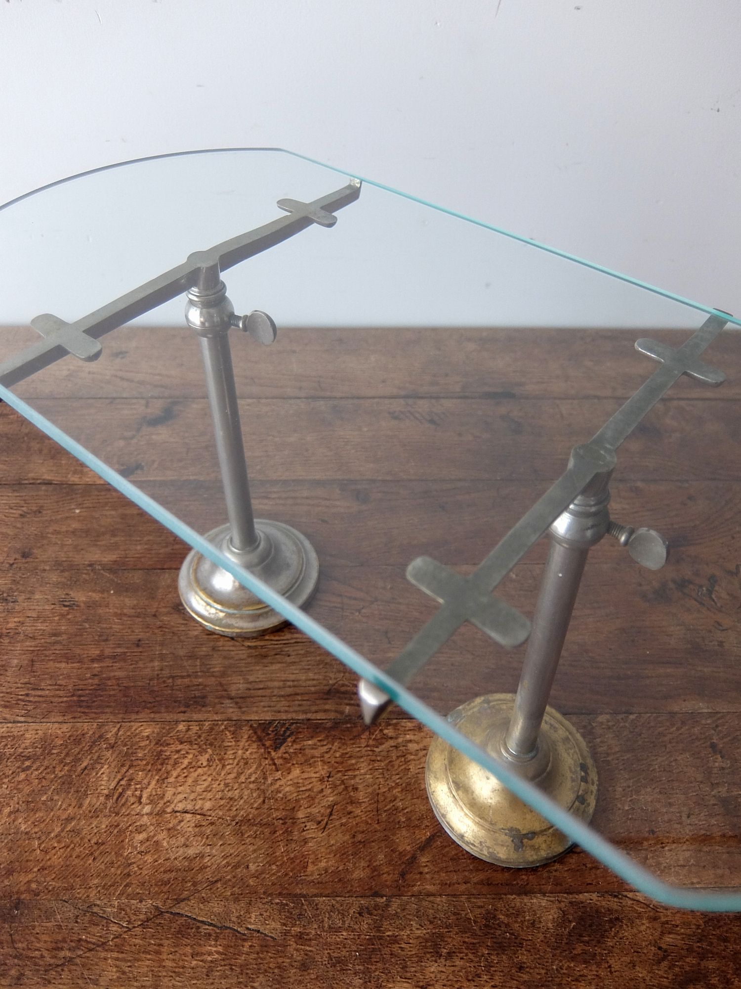 昇降可能なガラス天板のディスプレイスタンド