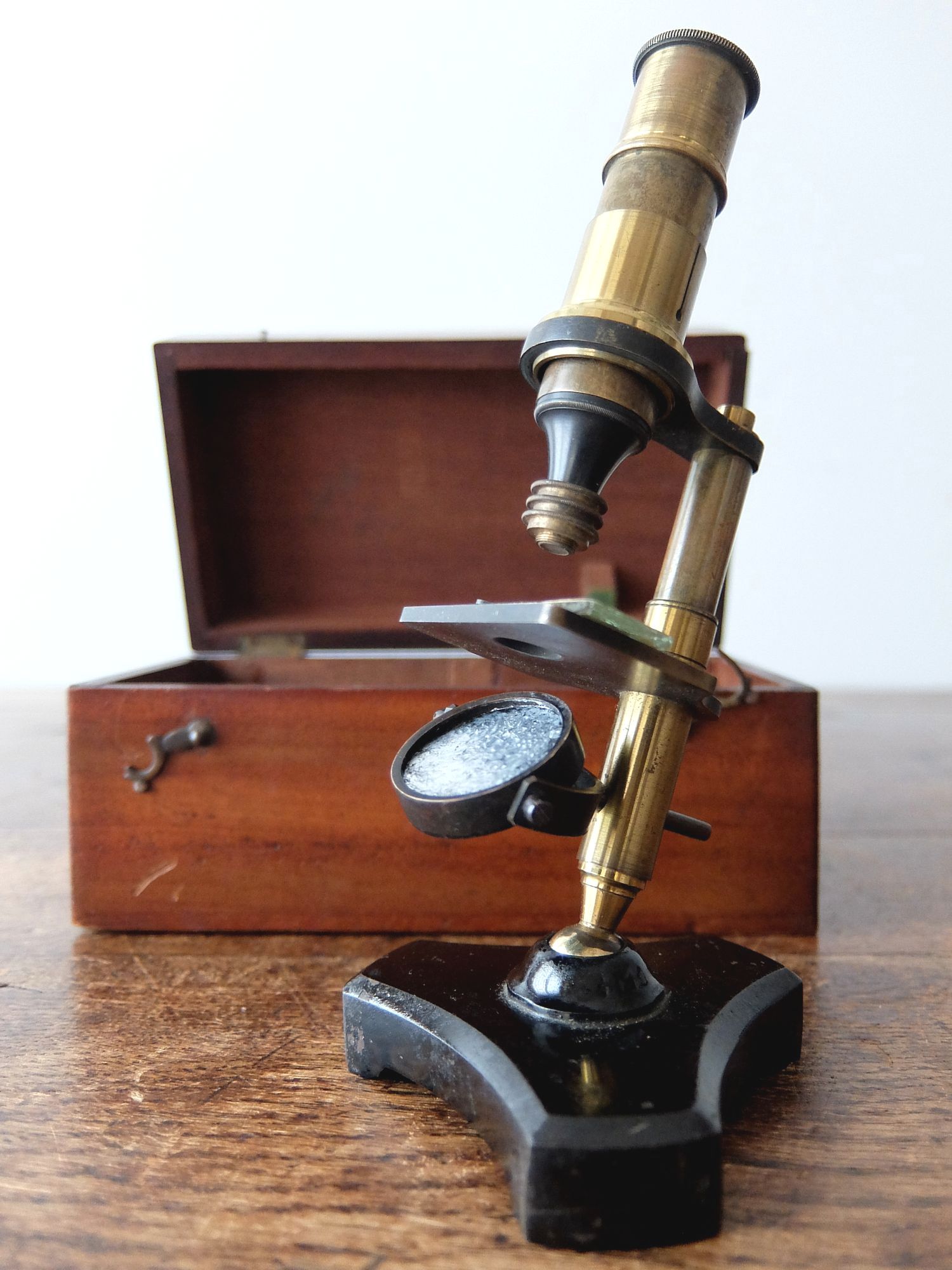 経年の雰囲気が美しい真鍮製顕微鏡