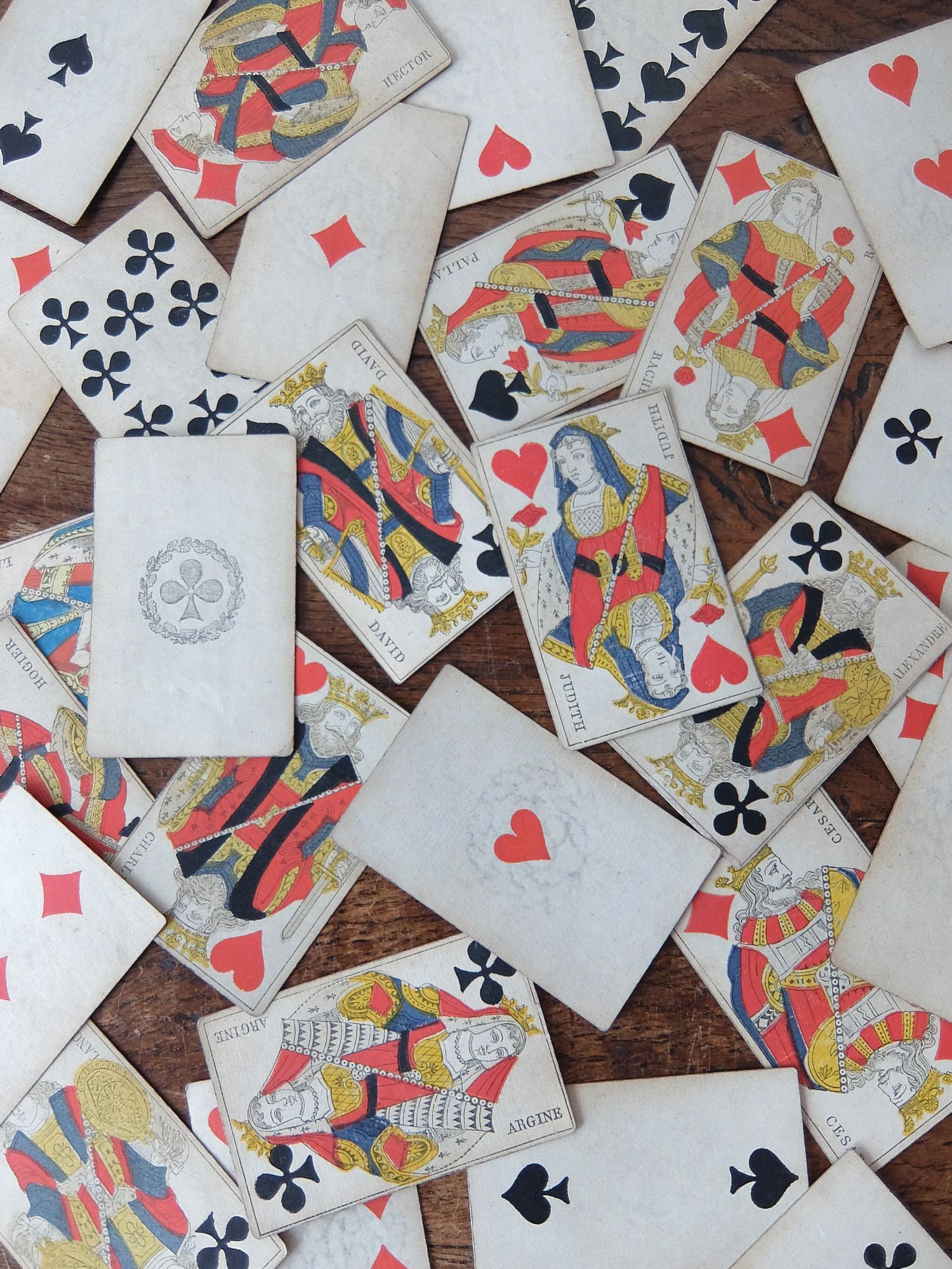 経年の雰囲気が美しいナポレオンⅢ世時代のトランプ (4種13枚ずつの計52枚セット)