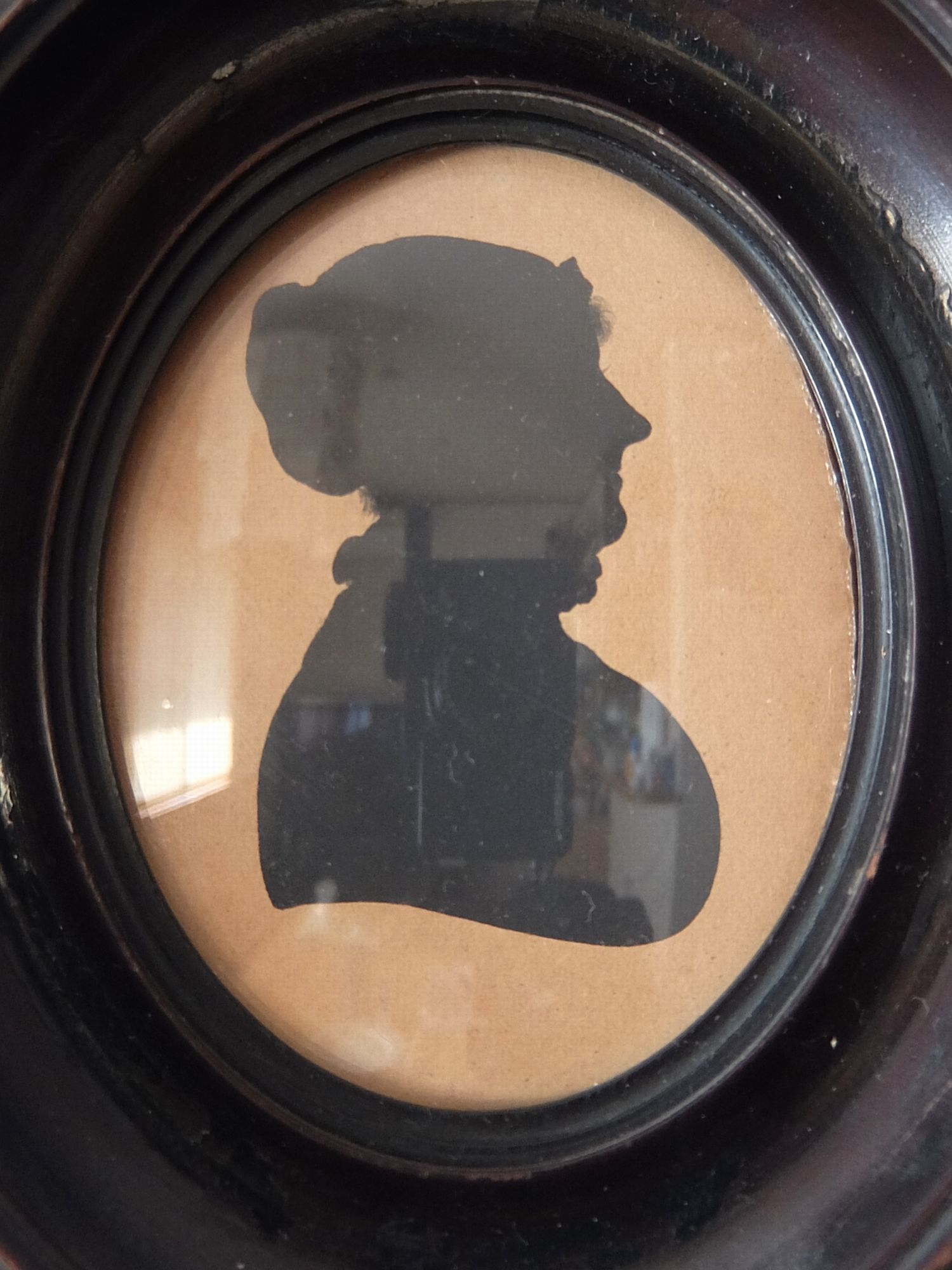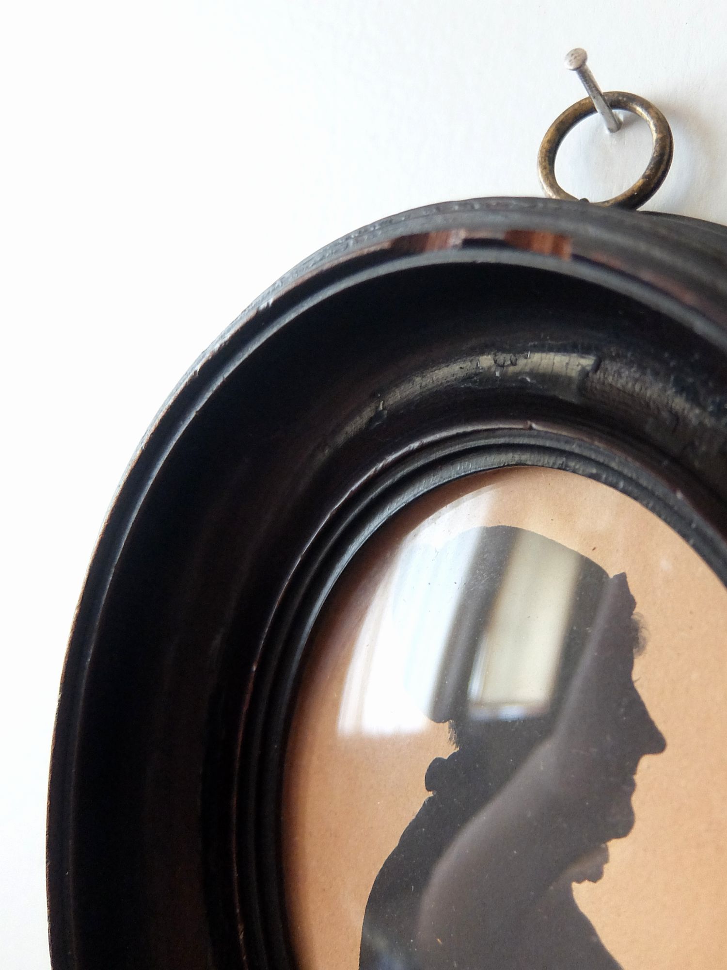 貴婦人のシルエットが印象的な楕円形のフレーム ※ガラスはドーム状です