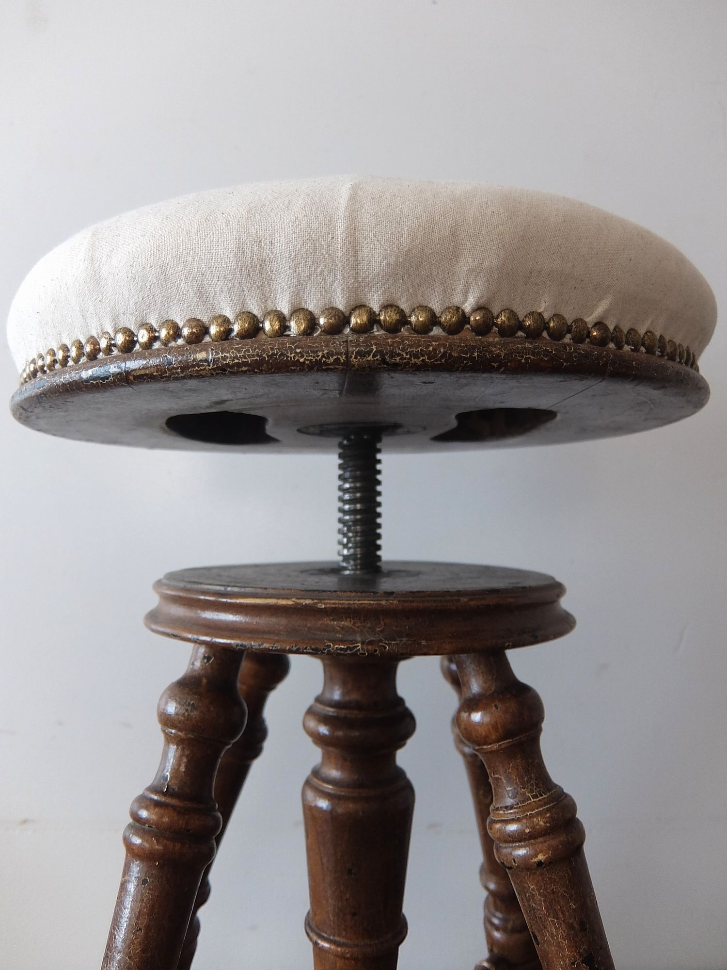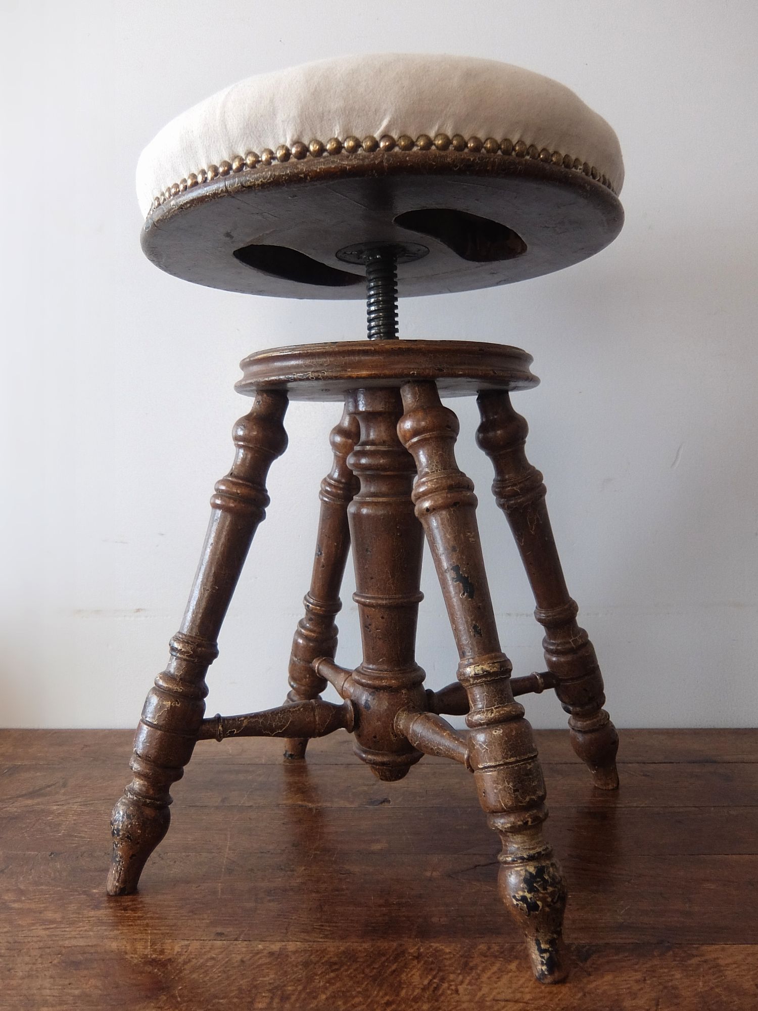 朽ちた塗装と意匠が美しい昇降可能なピアノスツール