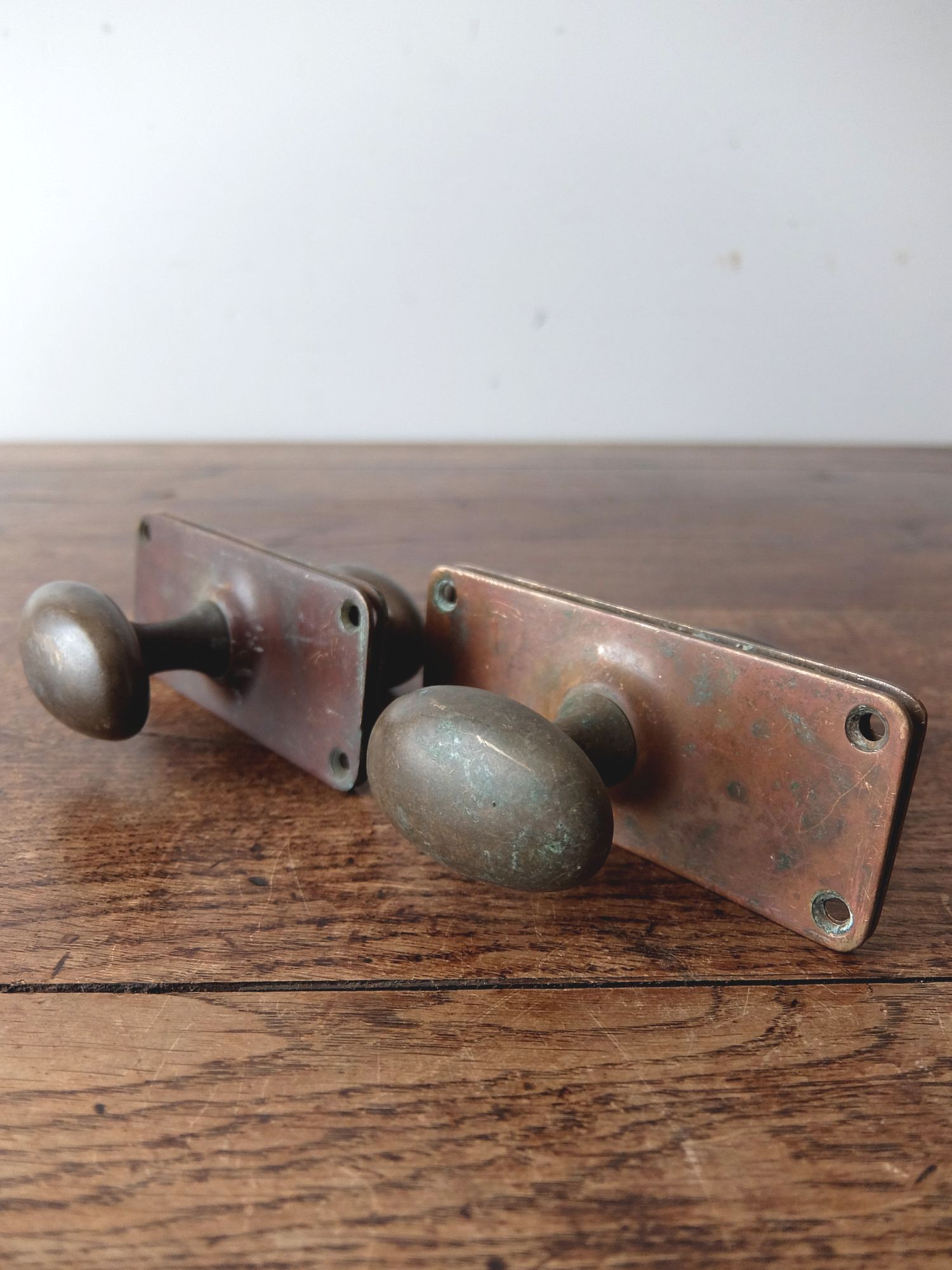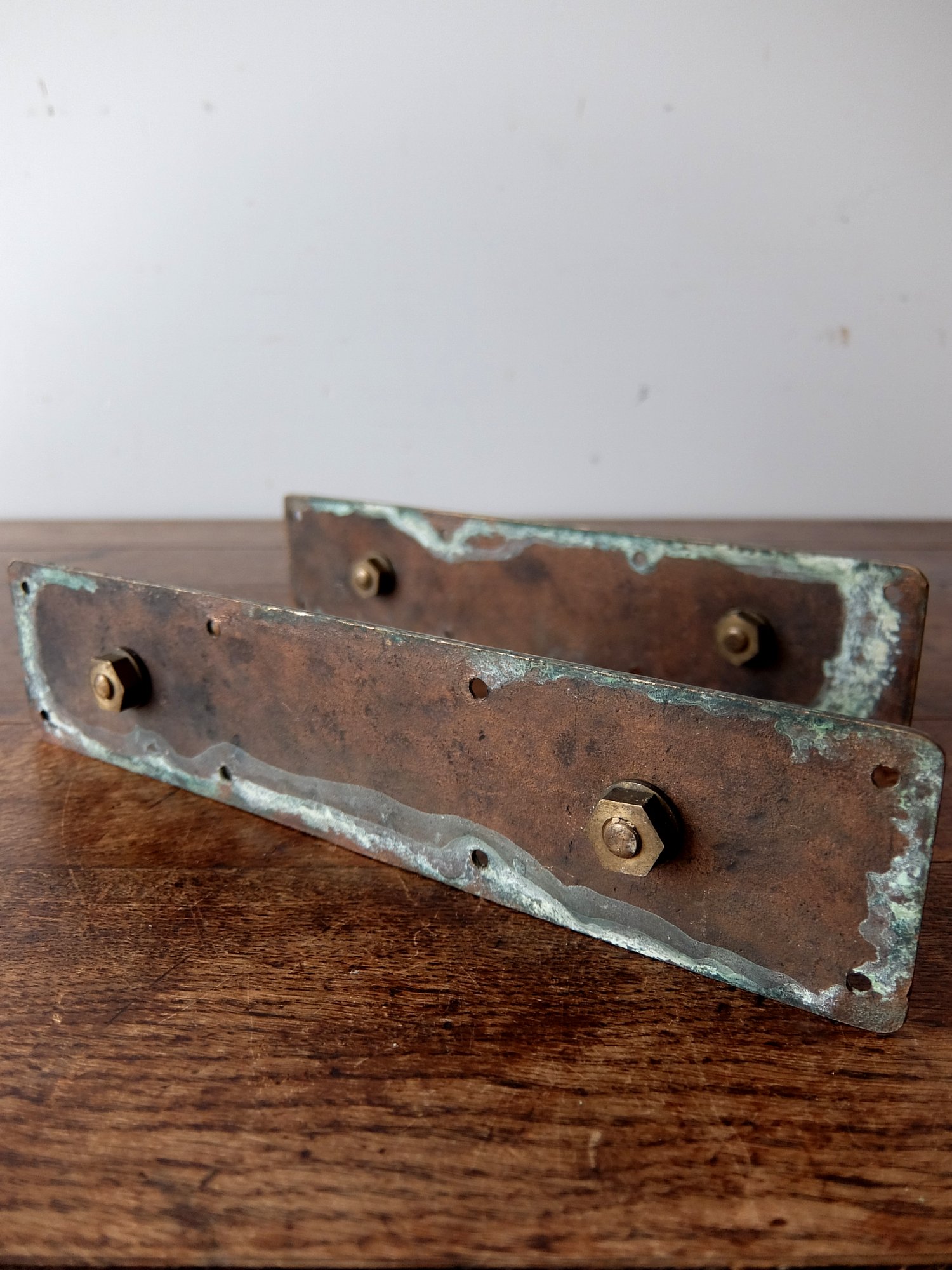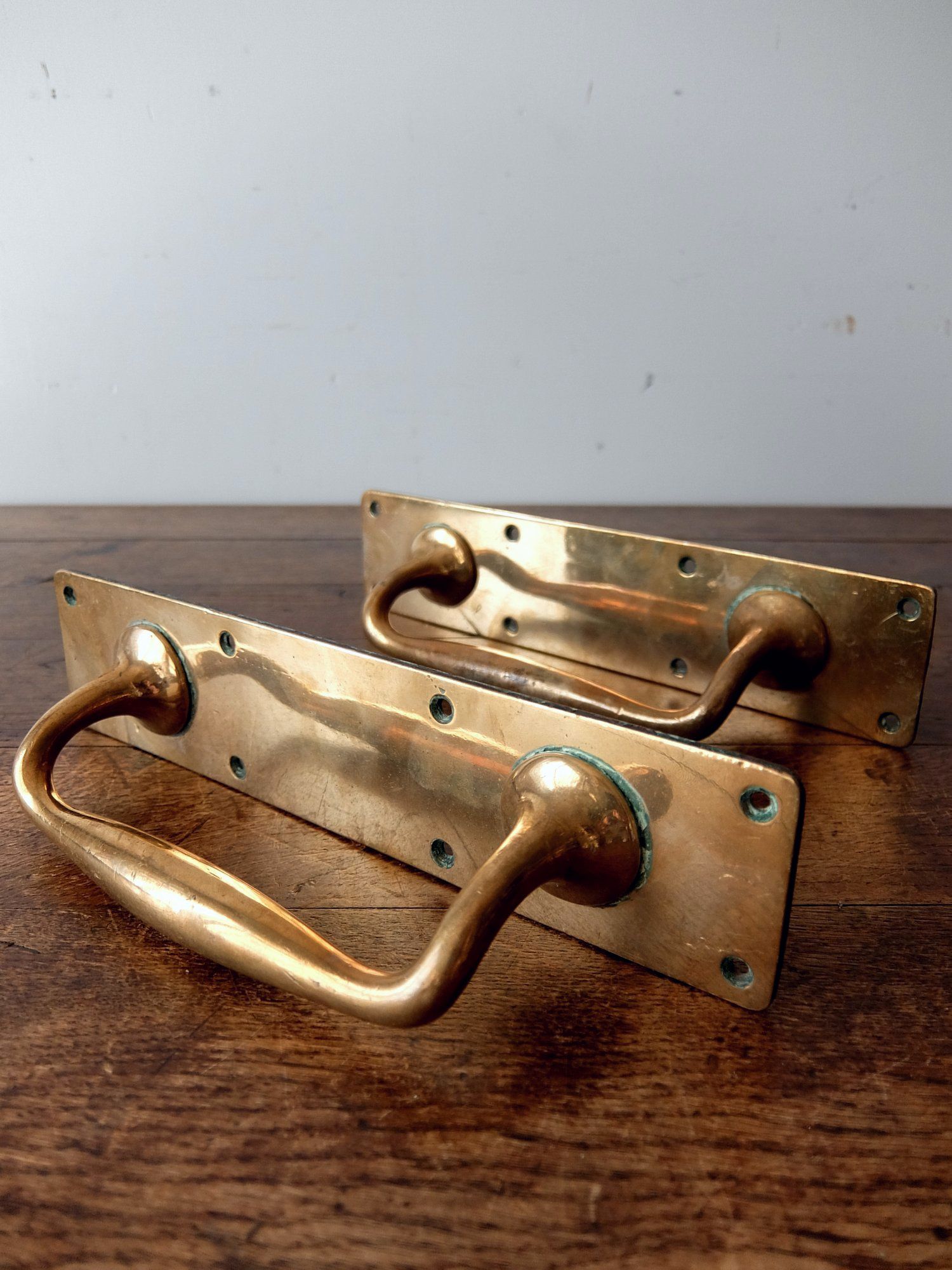真鍮の経年劣化の状態が美しいドアハンドル(セット)