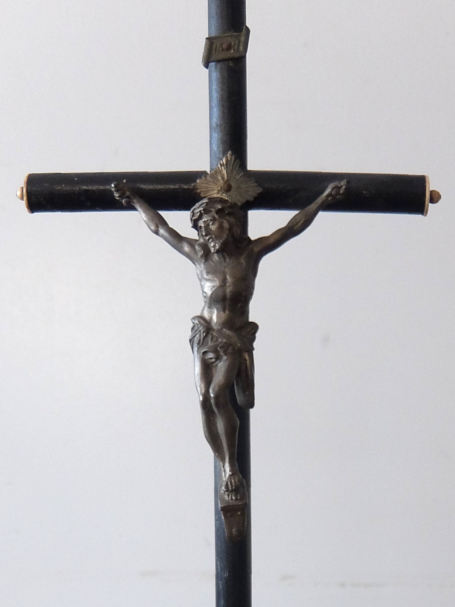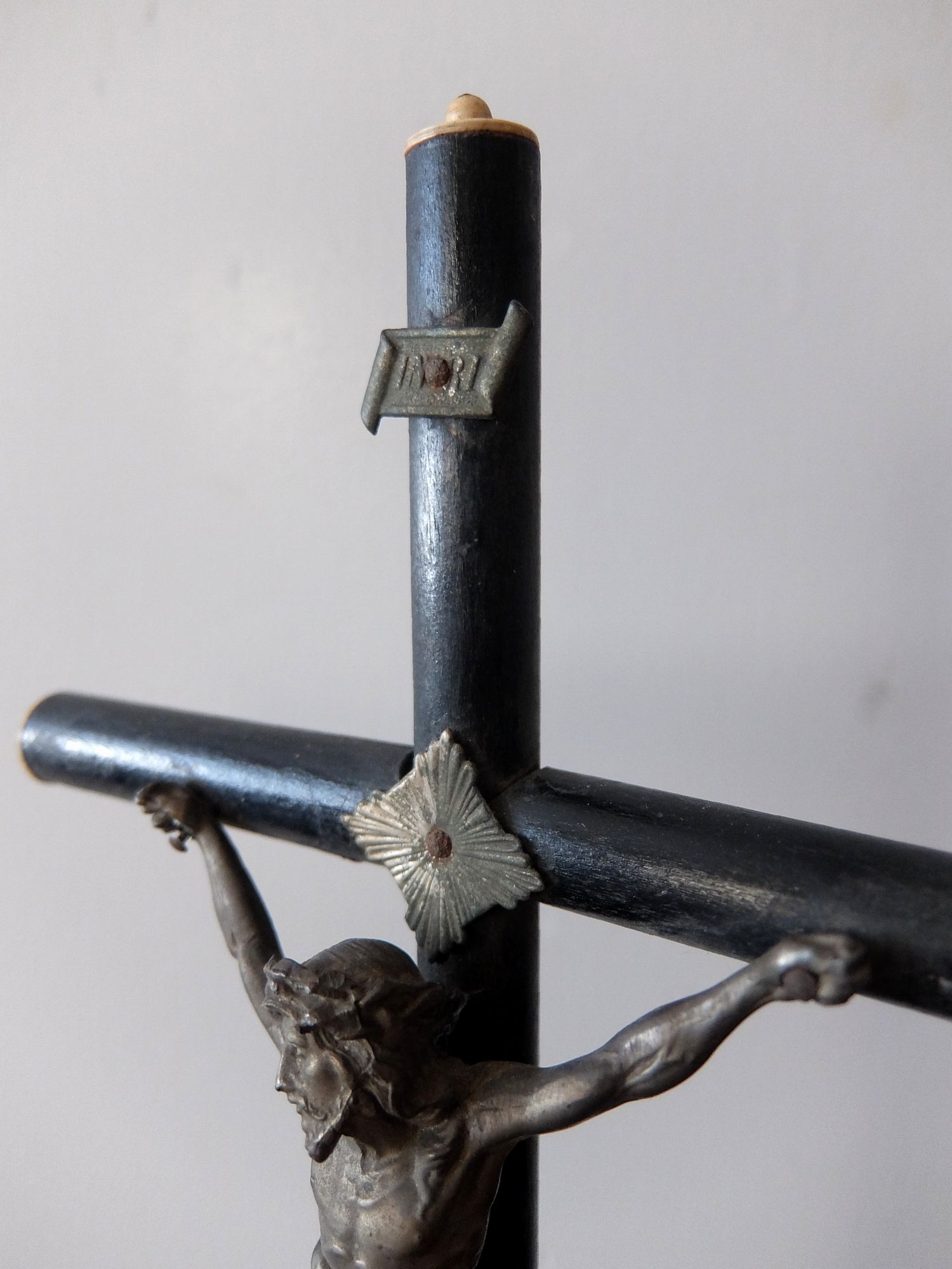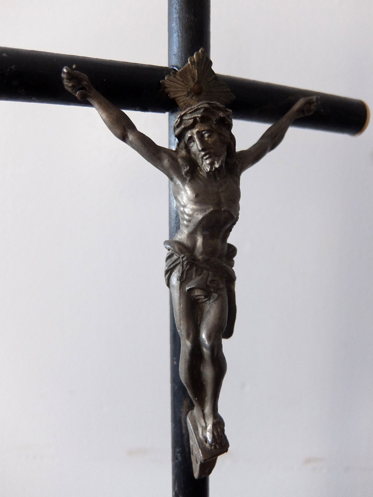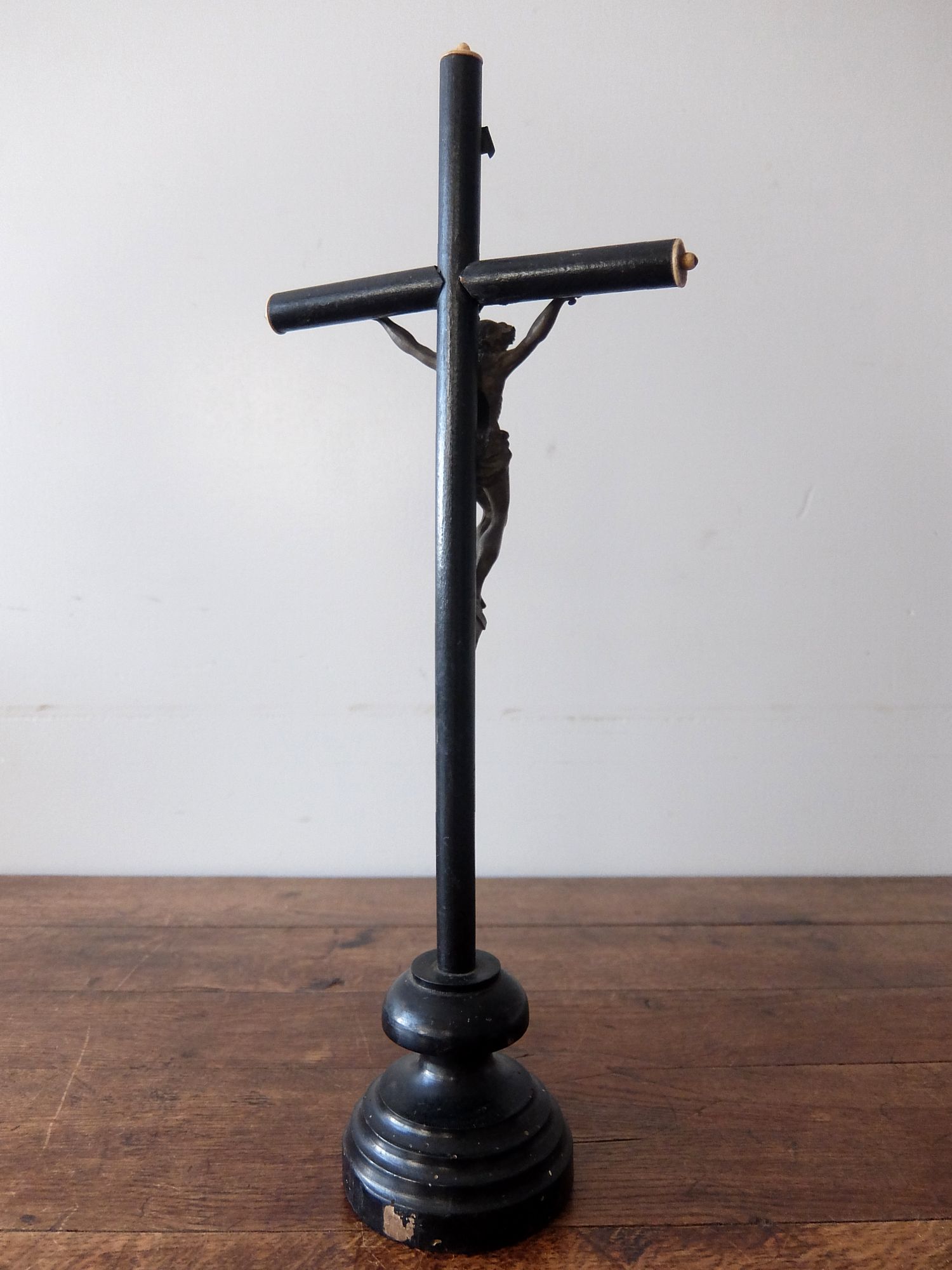 ピューター製のキリスト像が美しい黒の塗装が印象的な十字架