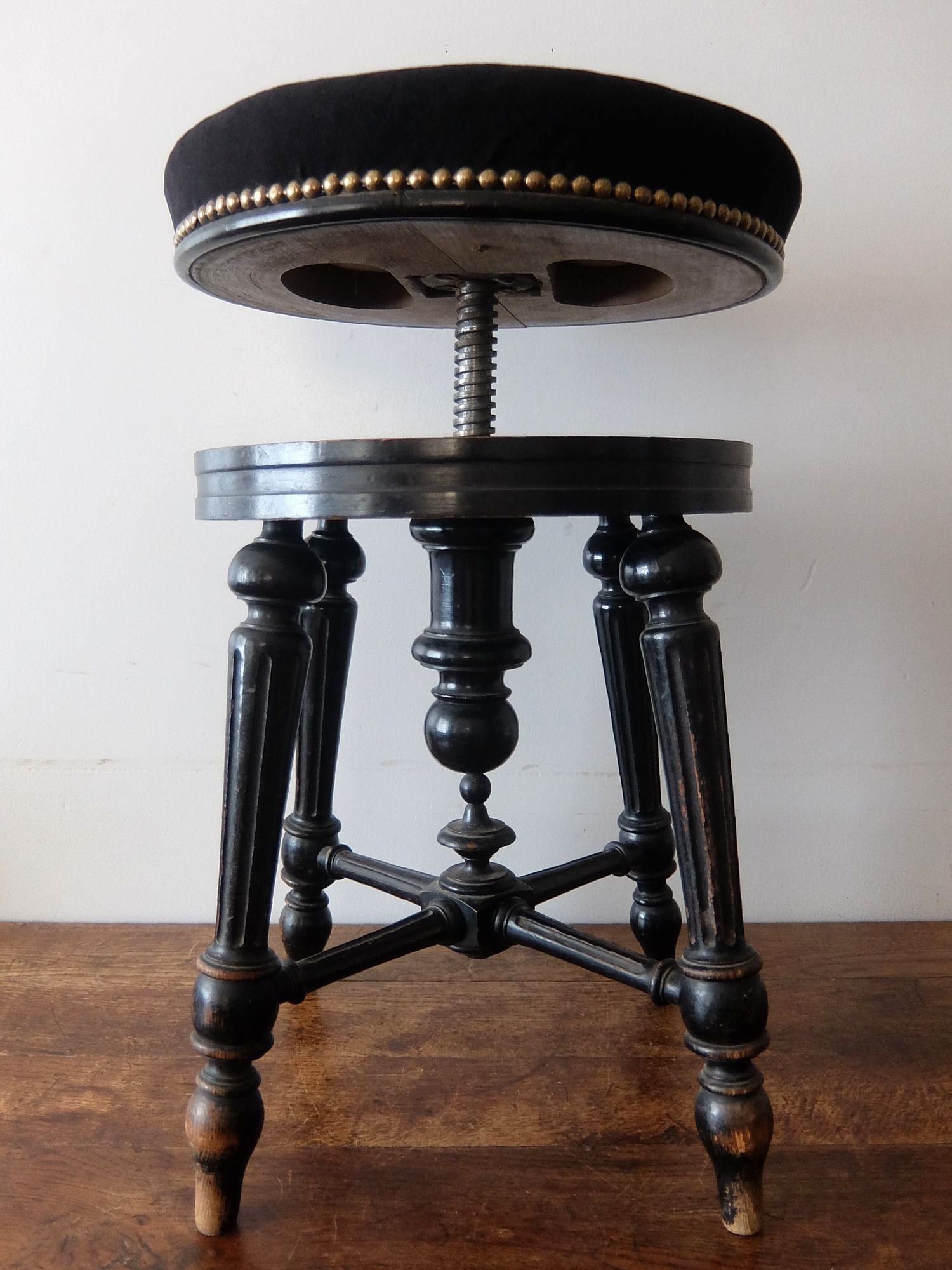 黒の塗装と意匠が美しいナポレオンⅢ世様式のピアノスツール