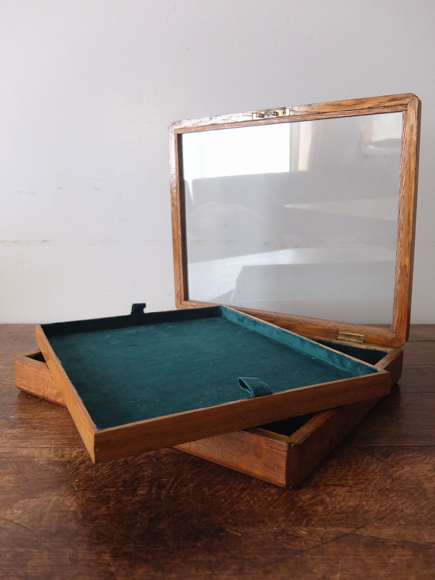 内部にトレイが入っている2段式のジュエリー用ショーケース(カギ付)