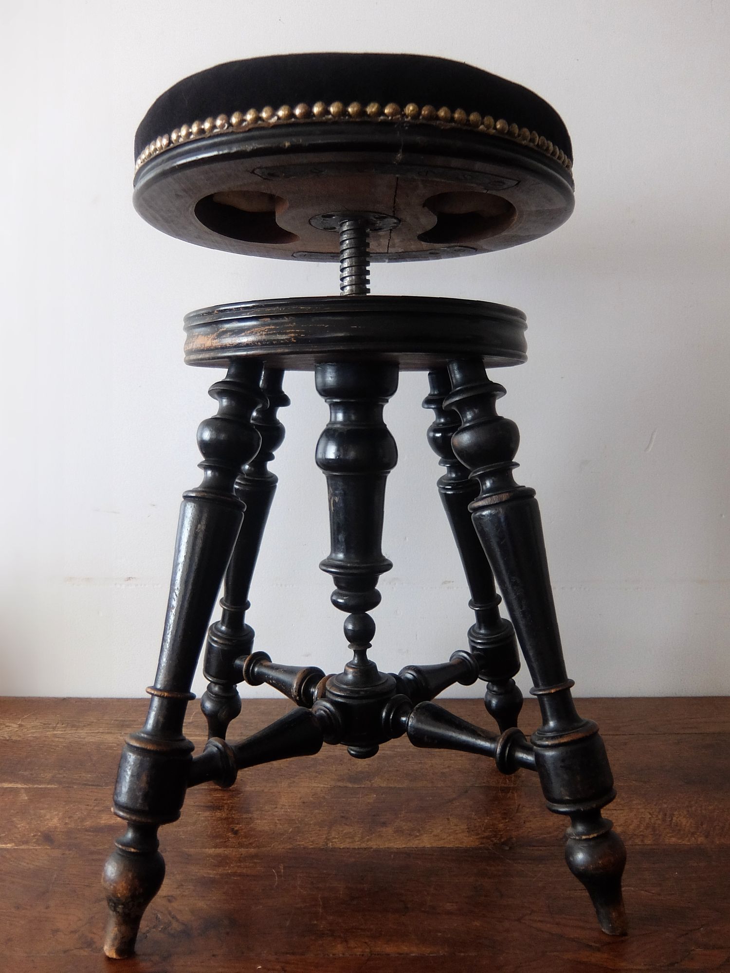 黒の塗装と意匠が美しいナポレオンⅢ世様式のピアノスツール