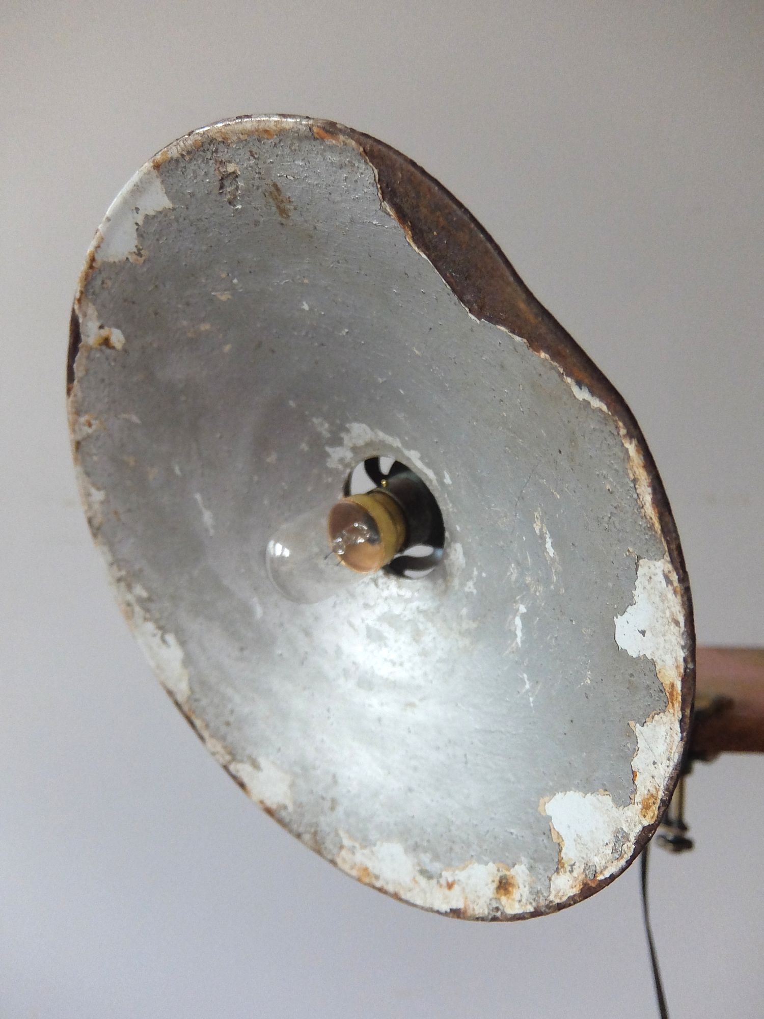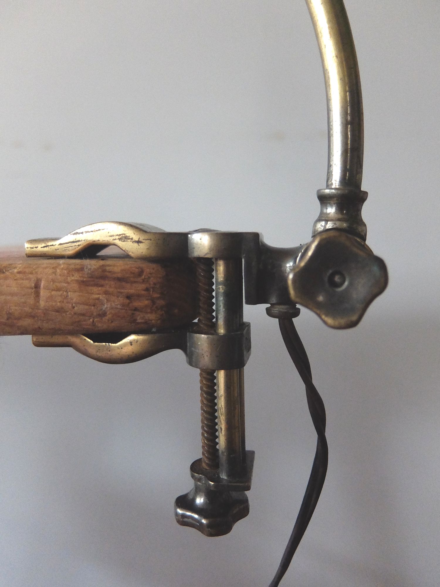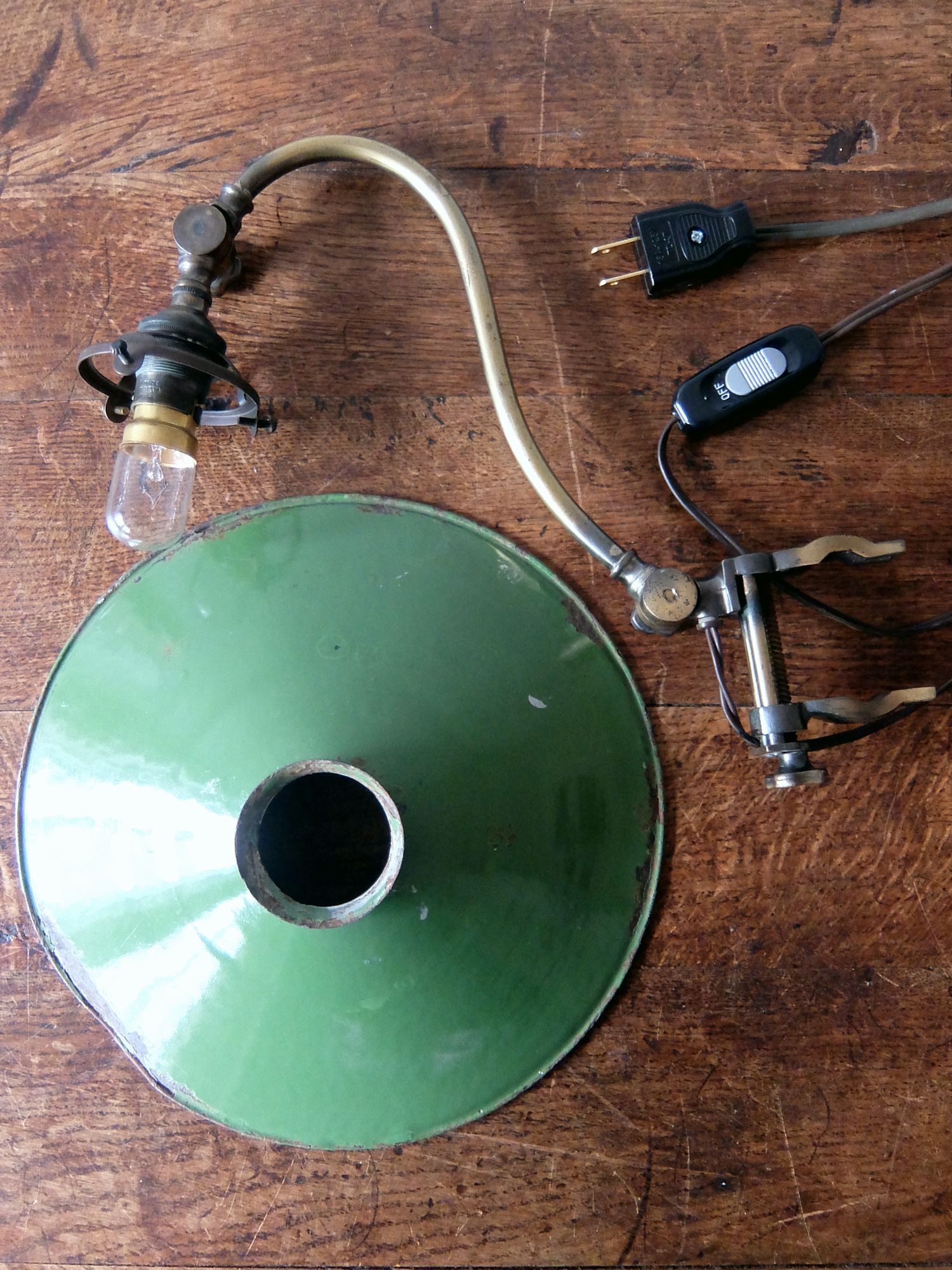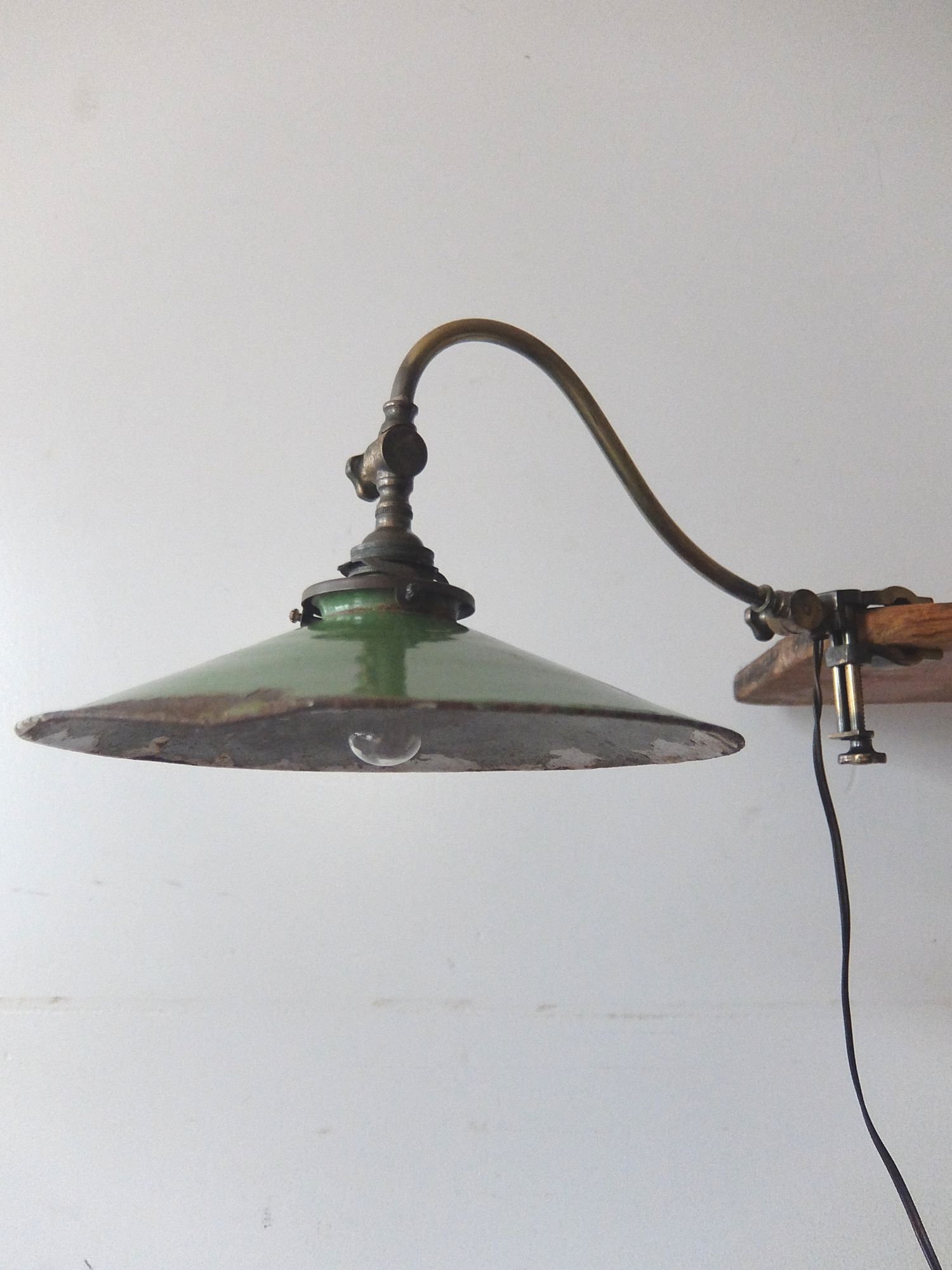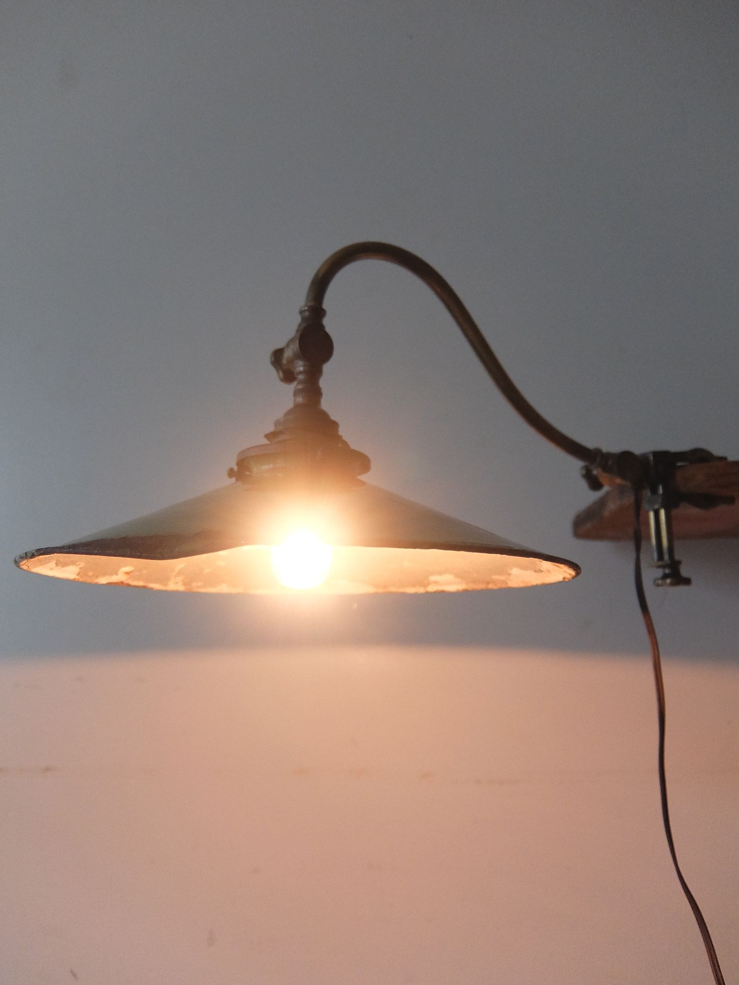クランプで固定するエナメルシェード付きの可変式照明