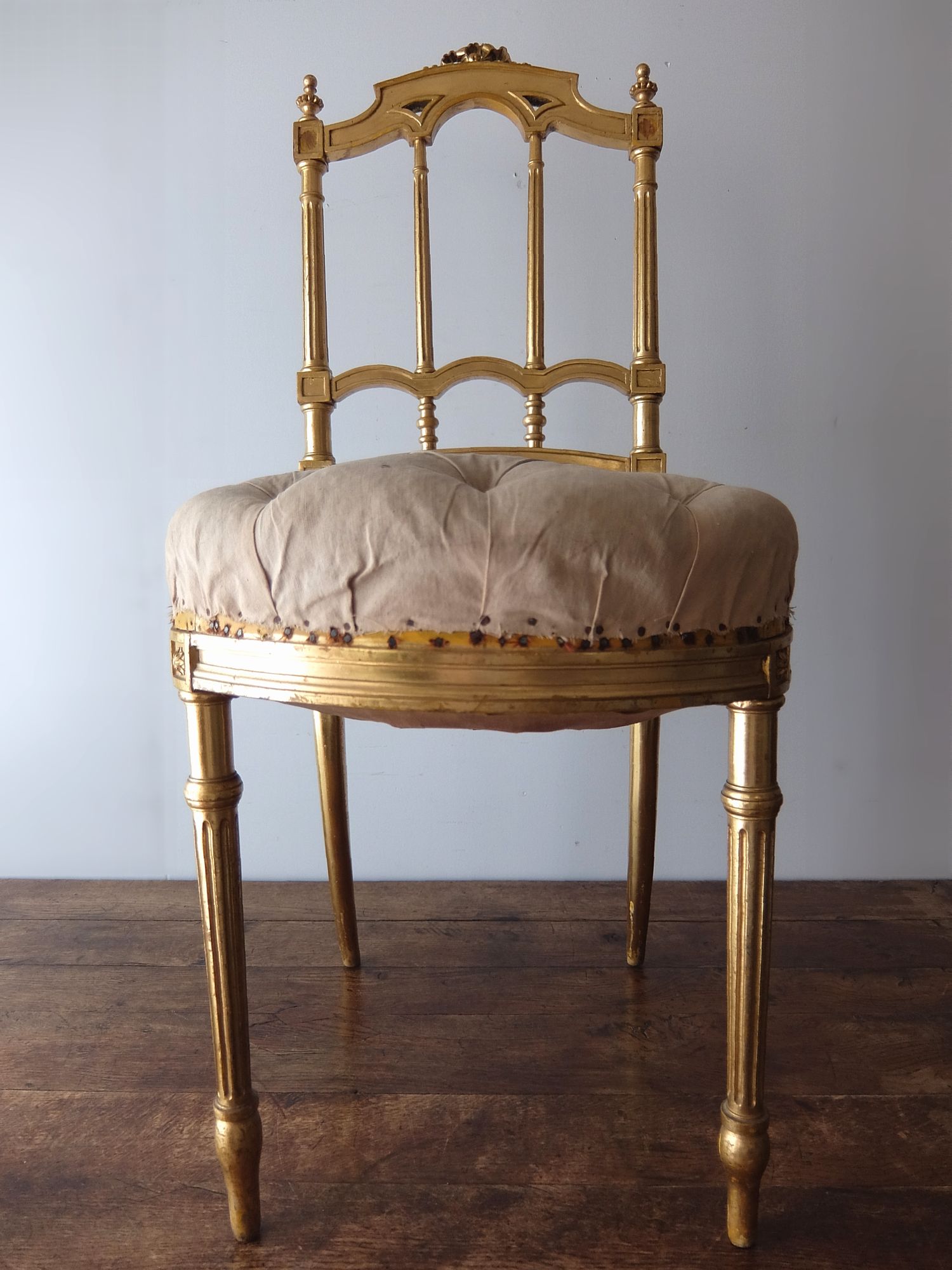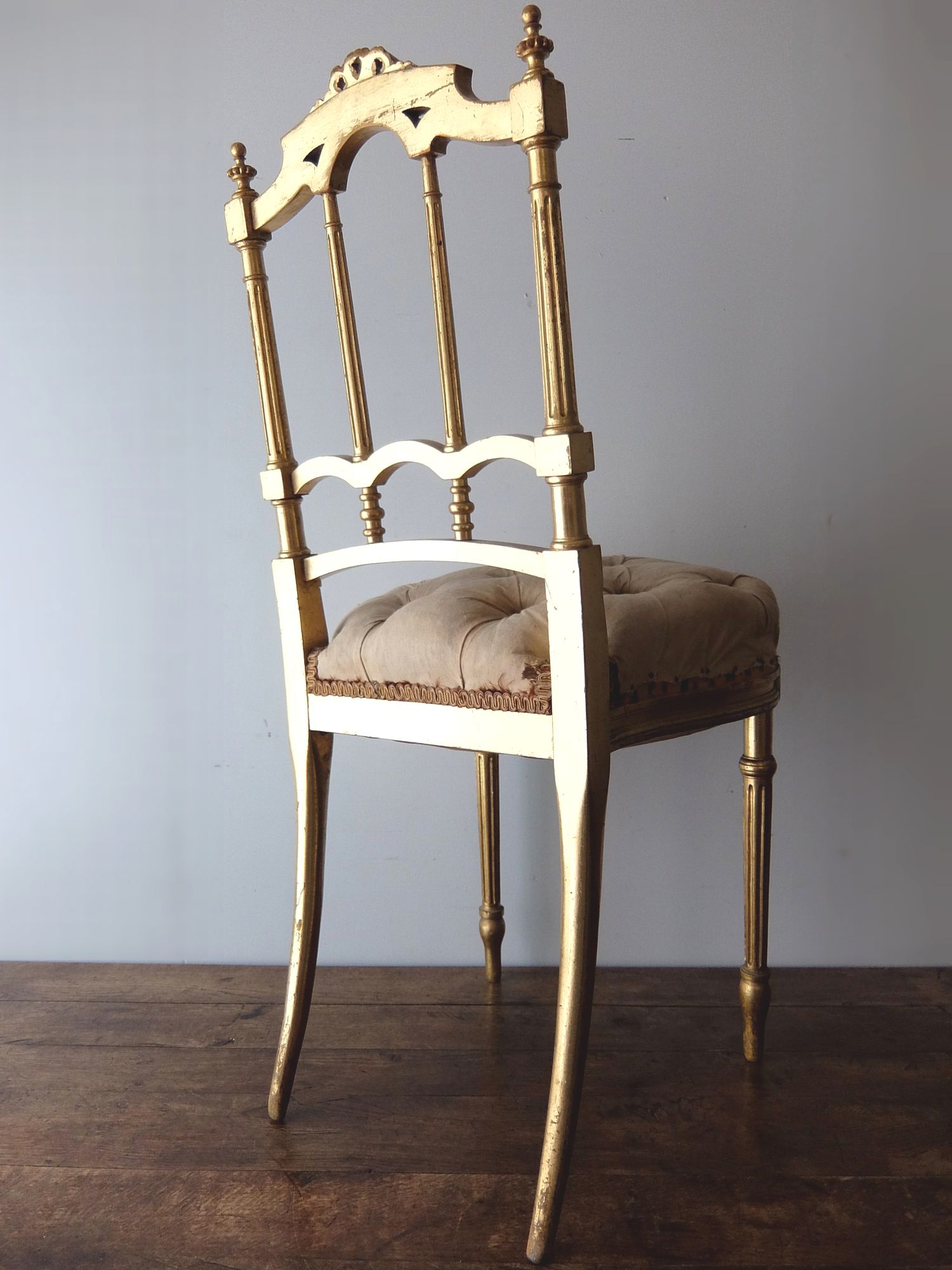 ゴールドの塗装や背もたれの繊細な意匠が美しいのチェアー