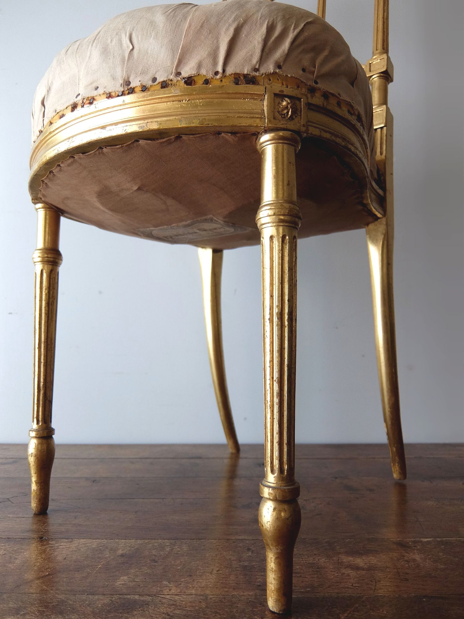 ※座面がボタン留め及び裏側にラベルが貼っているため、座面の張替はしておりません