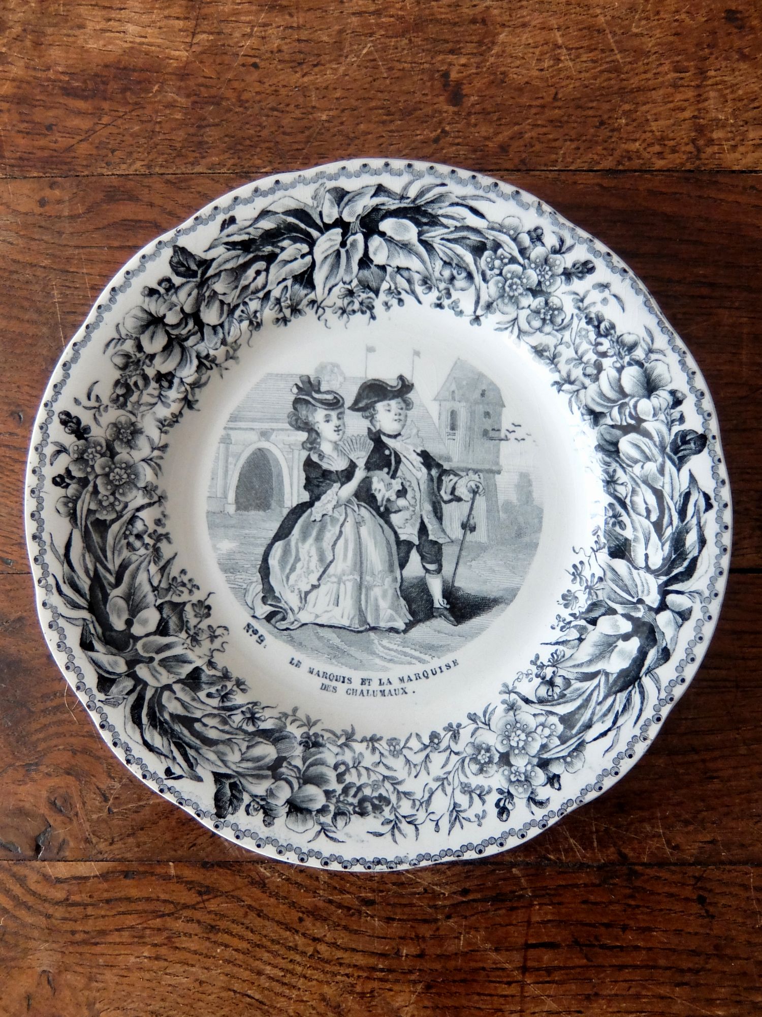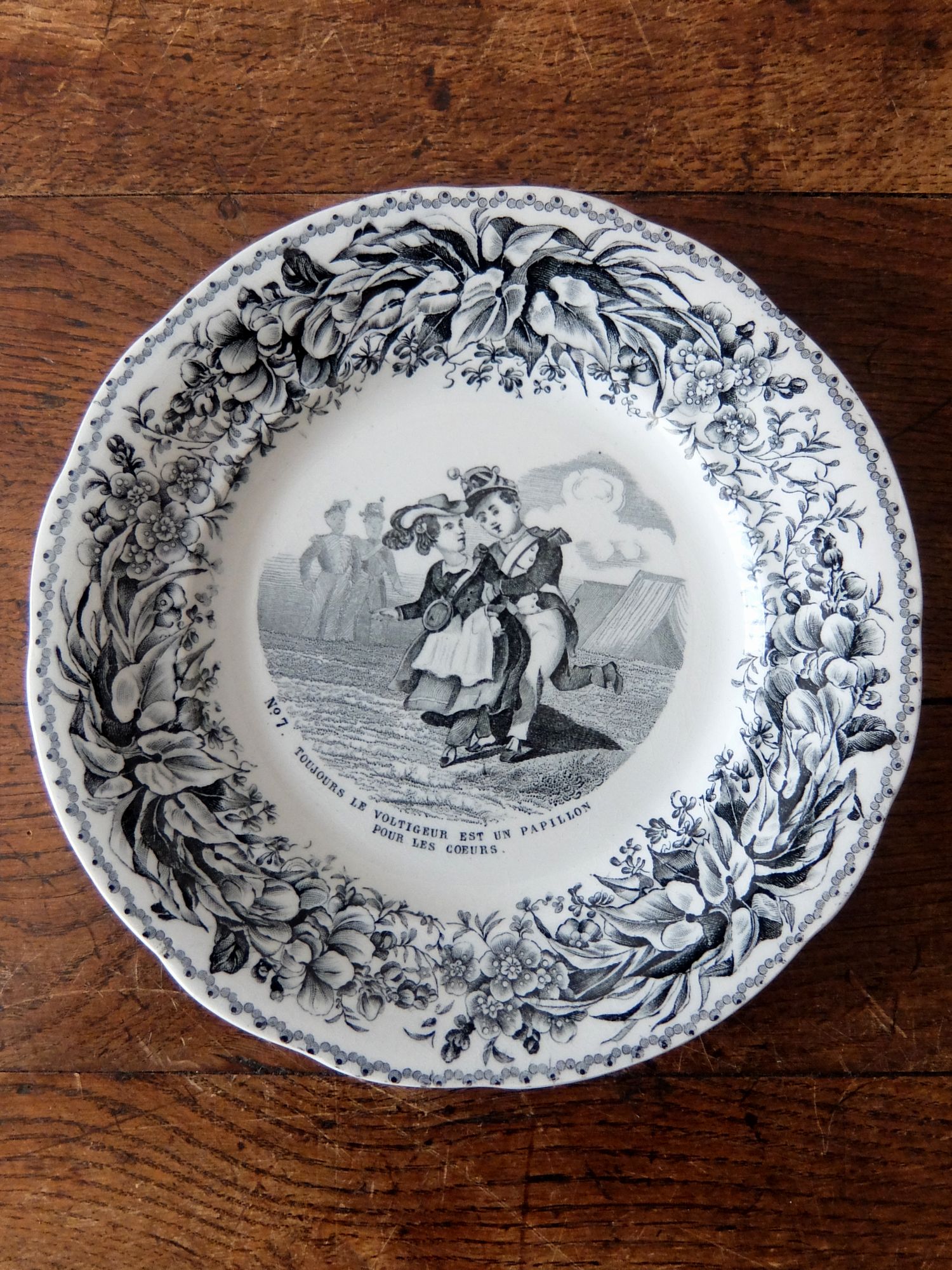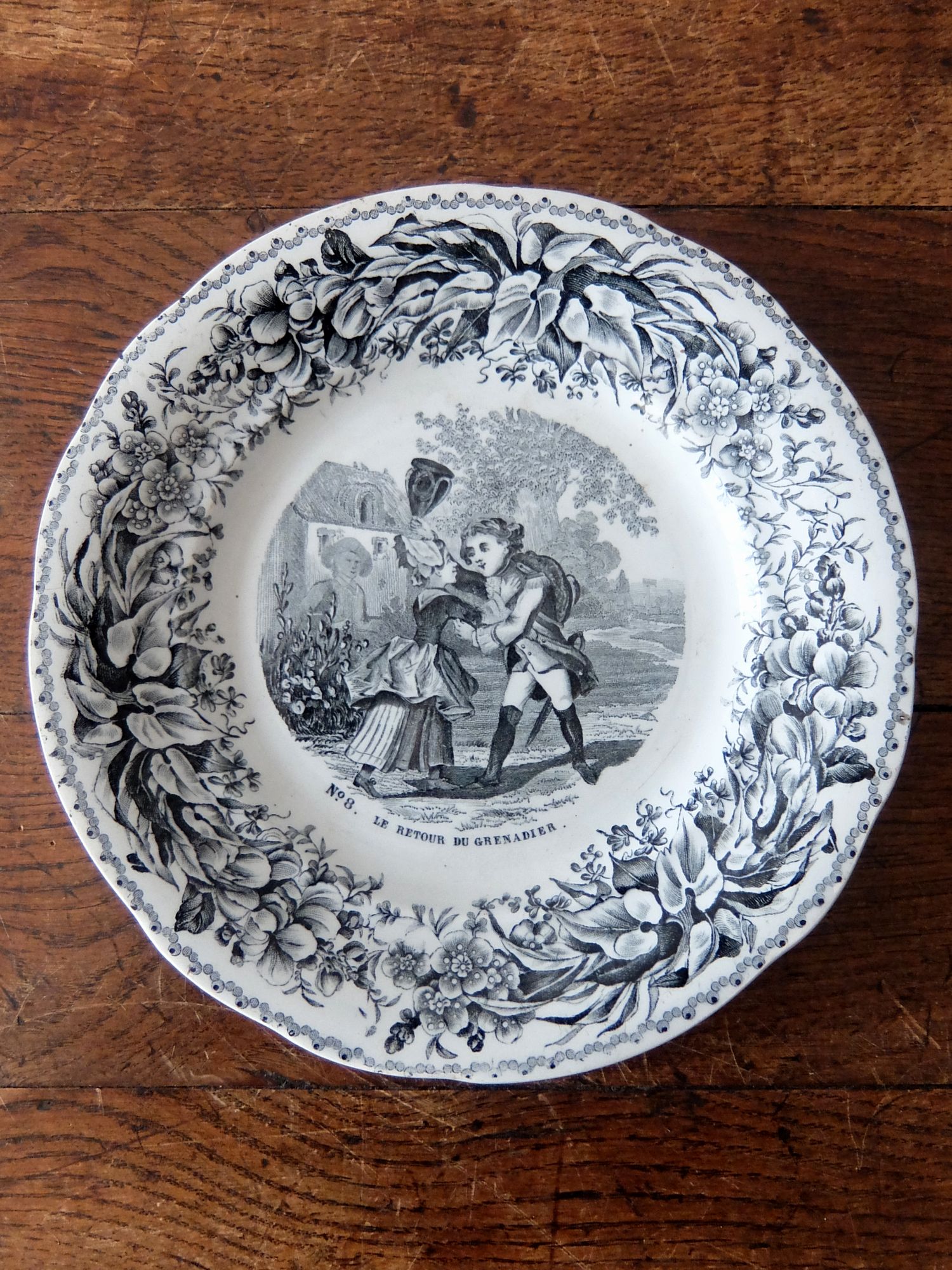 19世紀中期に作られた童話の挿絵が描かれたクレイユ・エ・モントローのGrisailleの平皿【No.7、No.8、No.9】