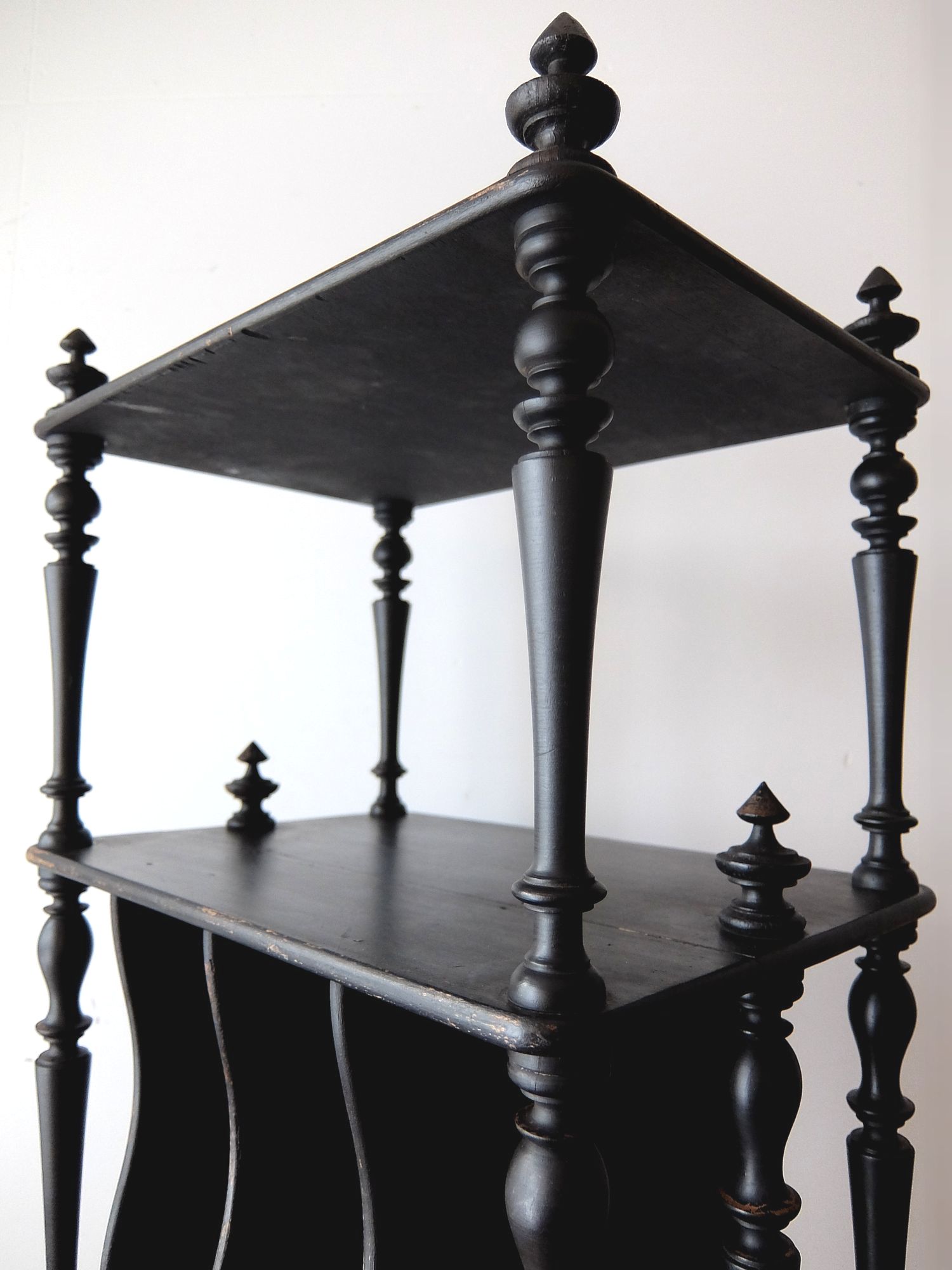 繊細な彫刻と漆黒の塗装が美しいナポレオンⅢ世様式のシェルフ