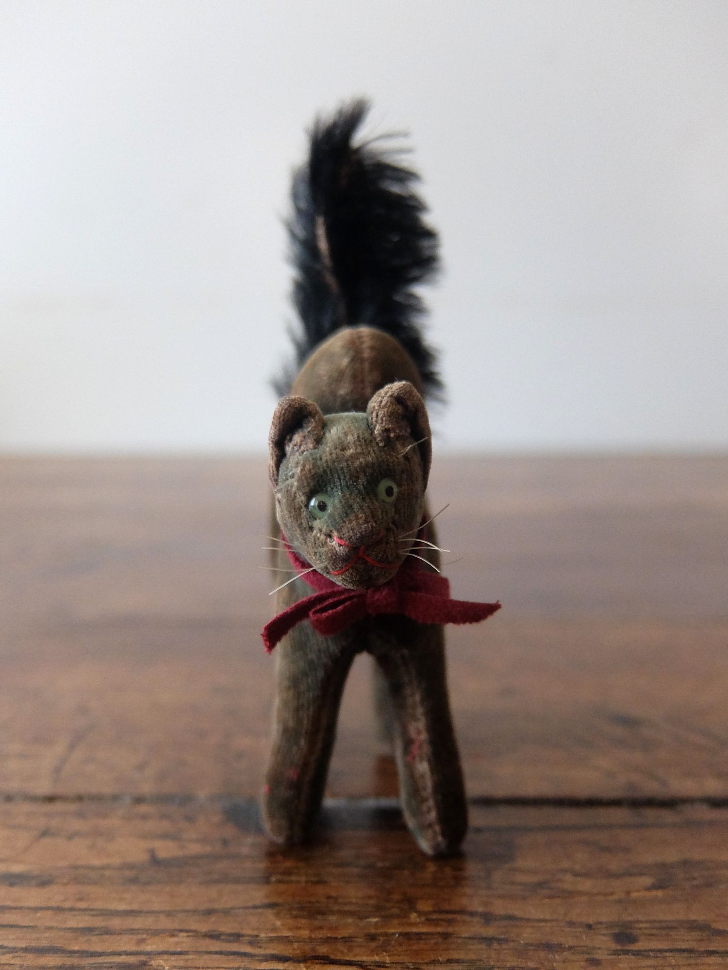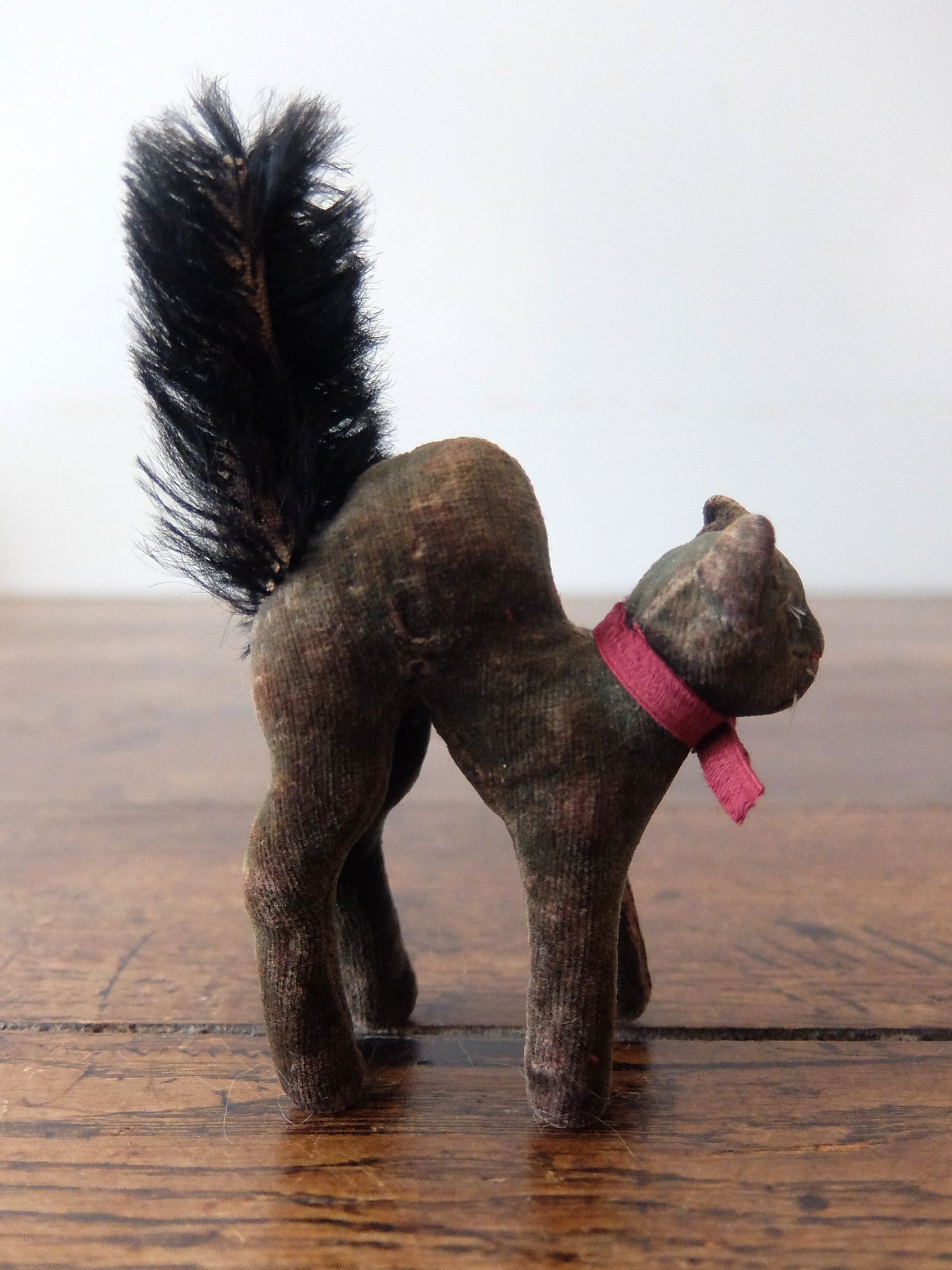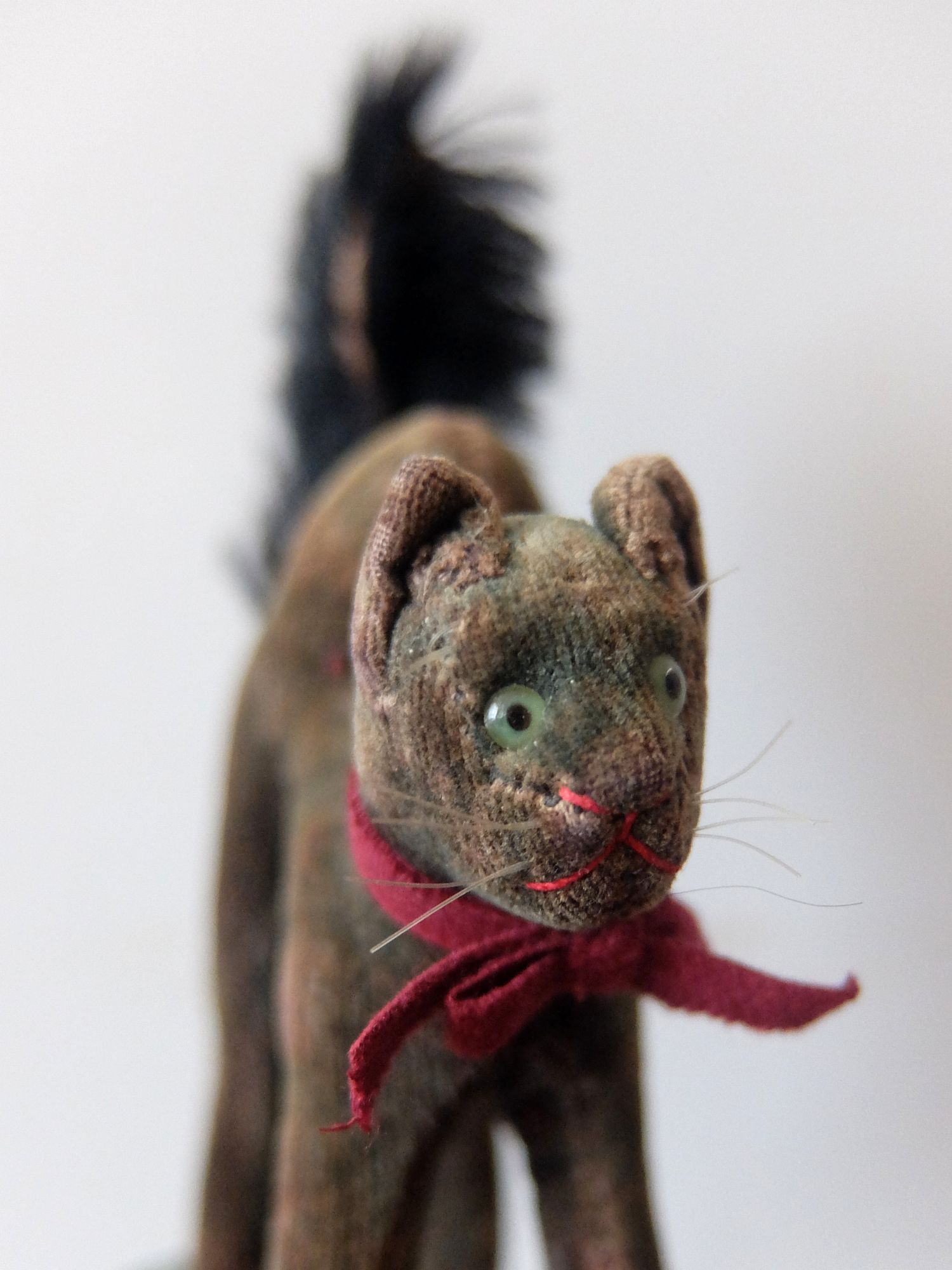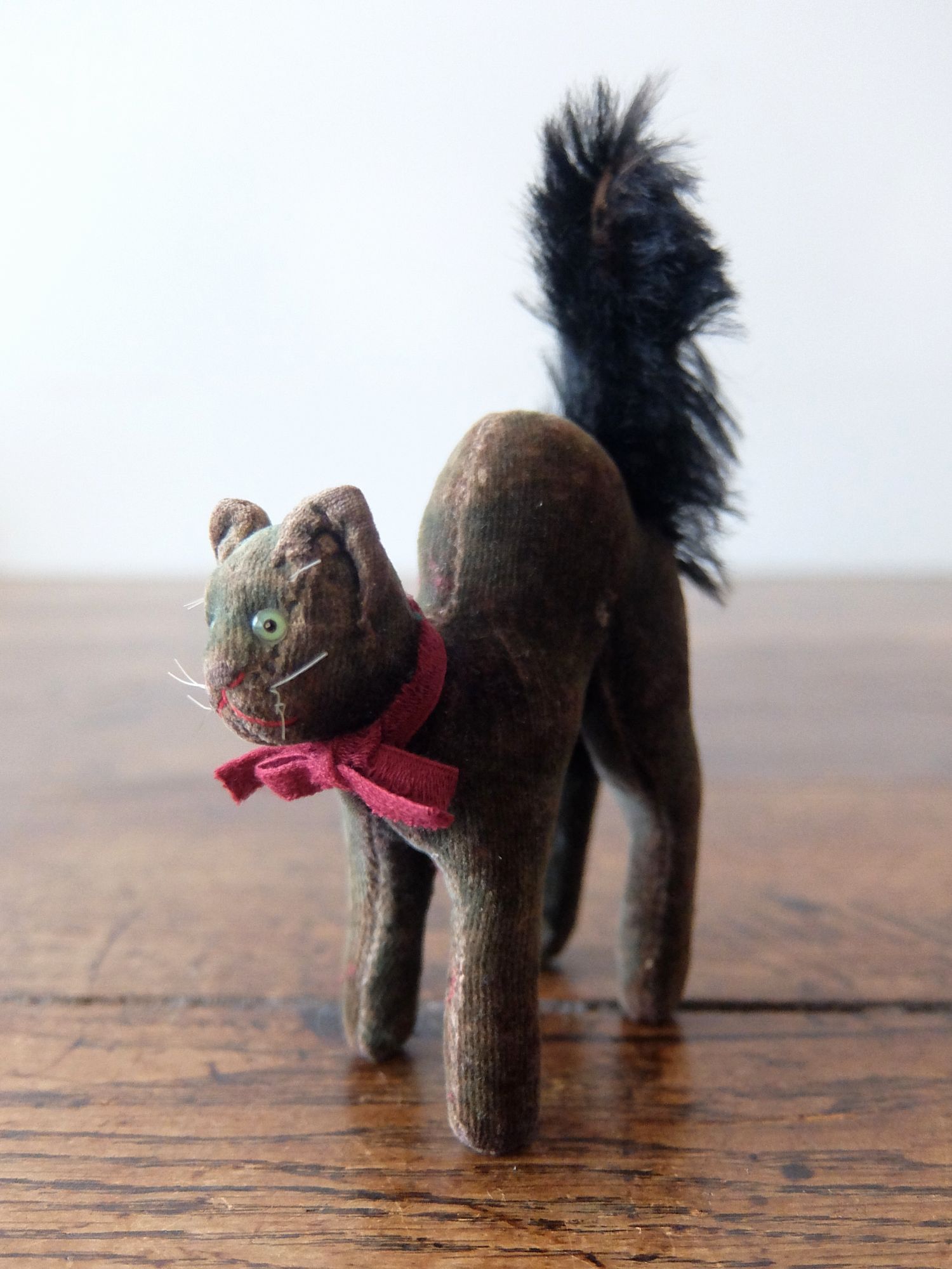 背中を丸めた威嚇のポーズが可愛らしい【Steiff(シュタイフ)】社製の黒猫のぬいぐるみ