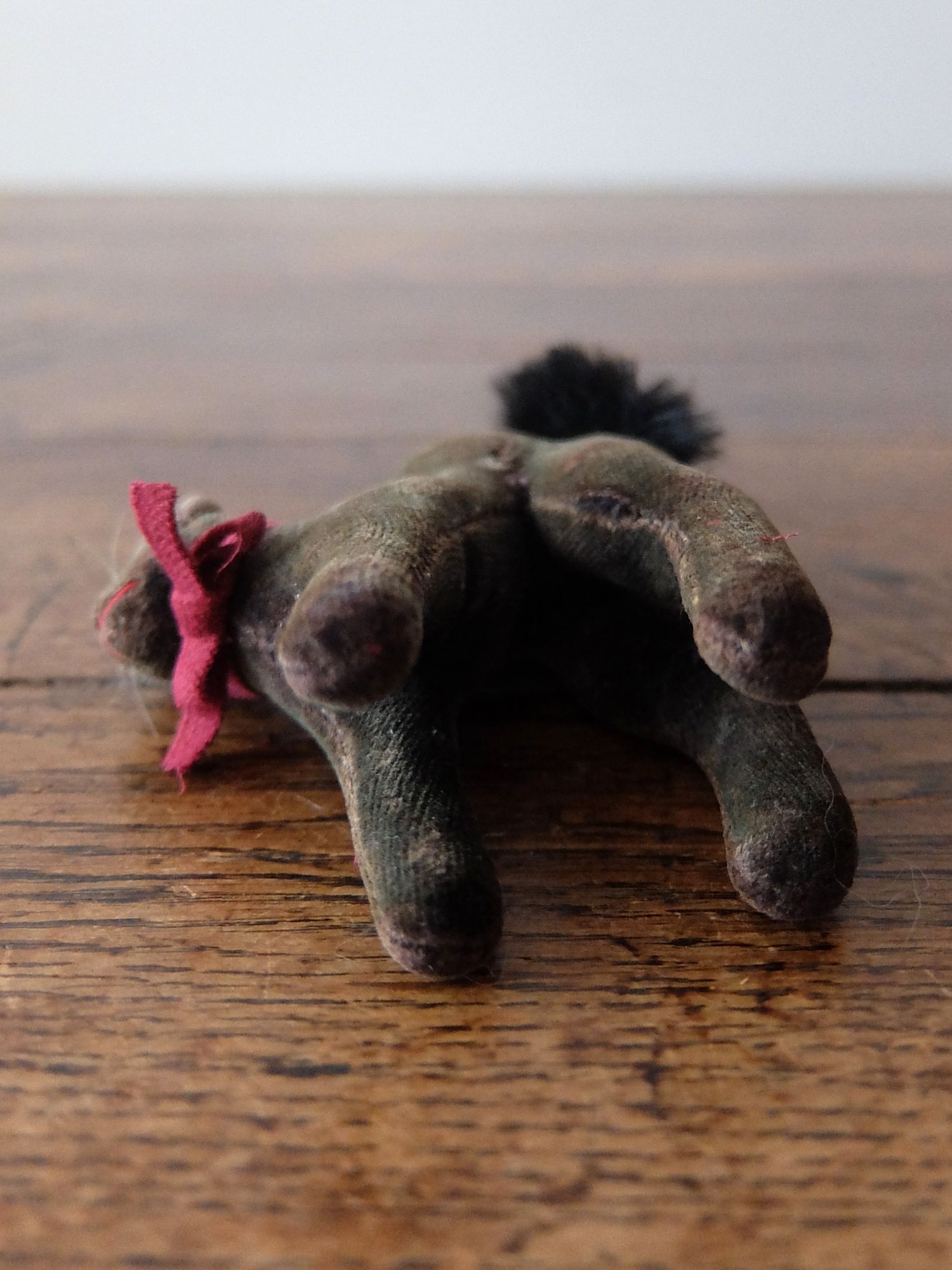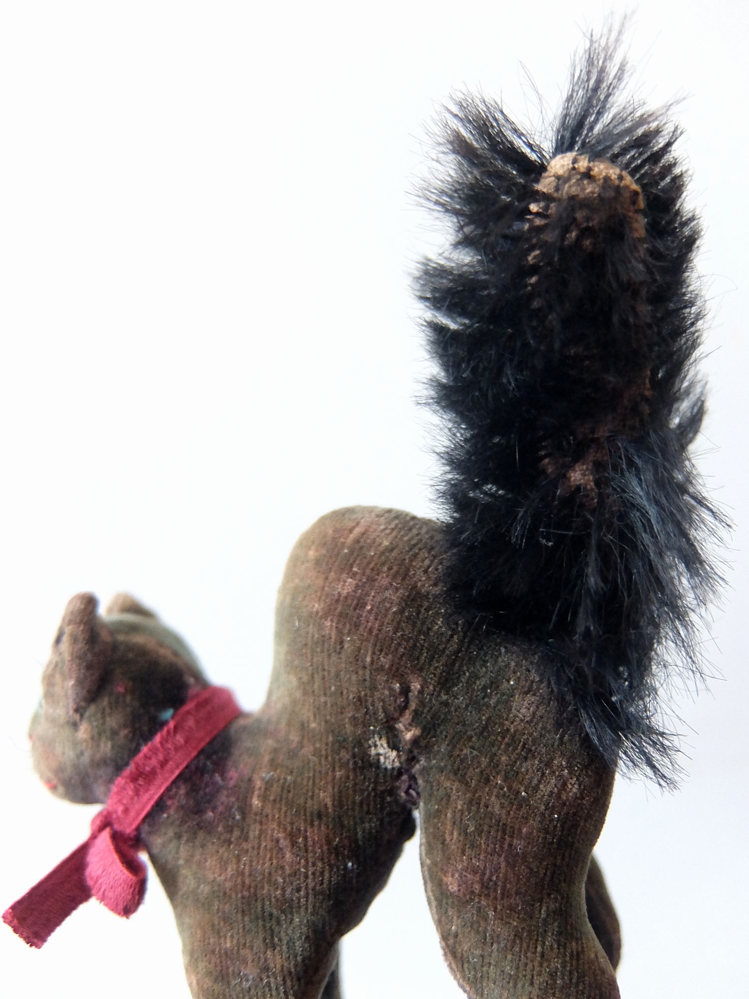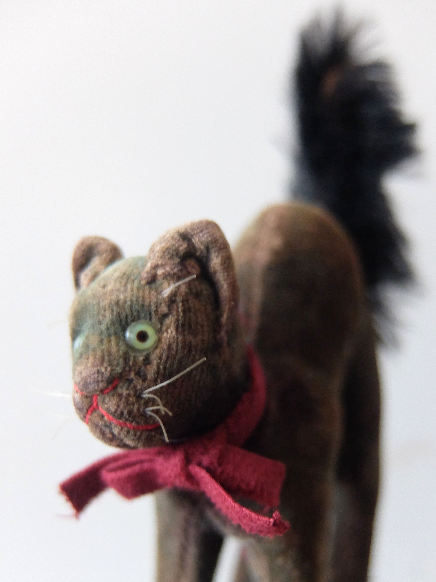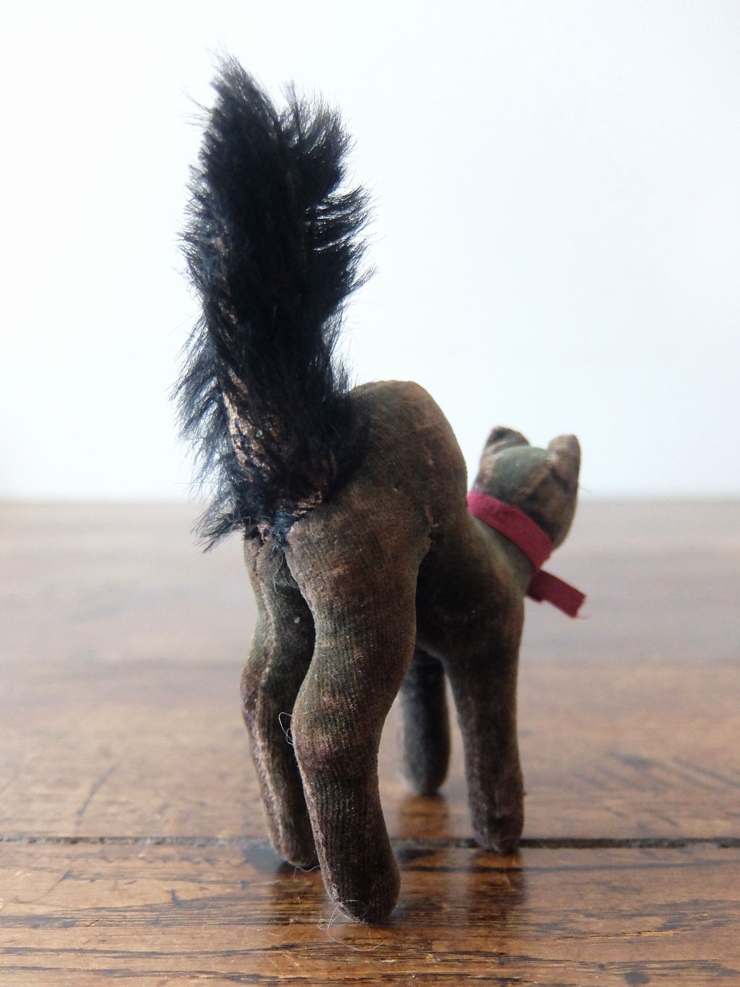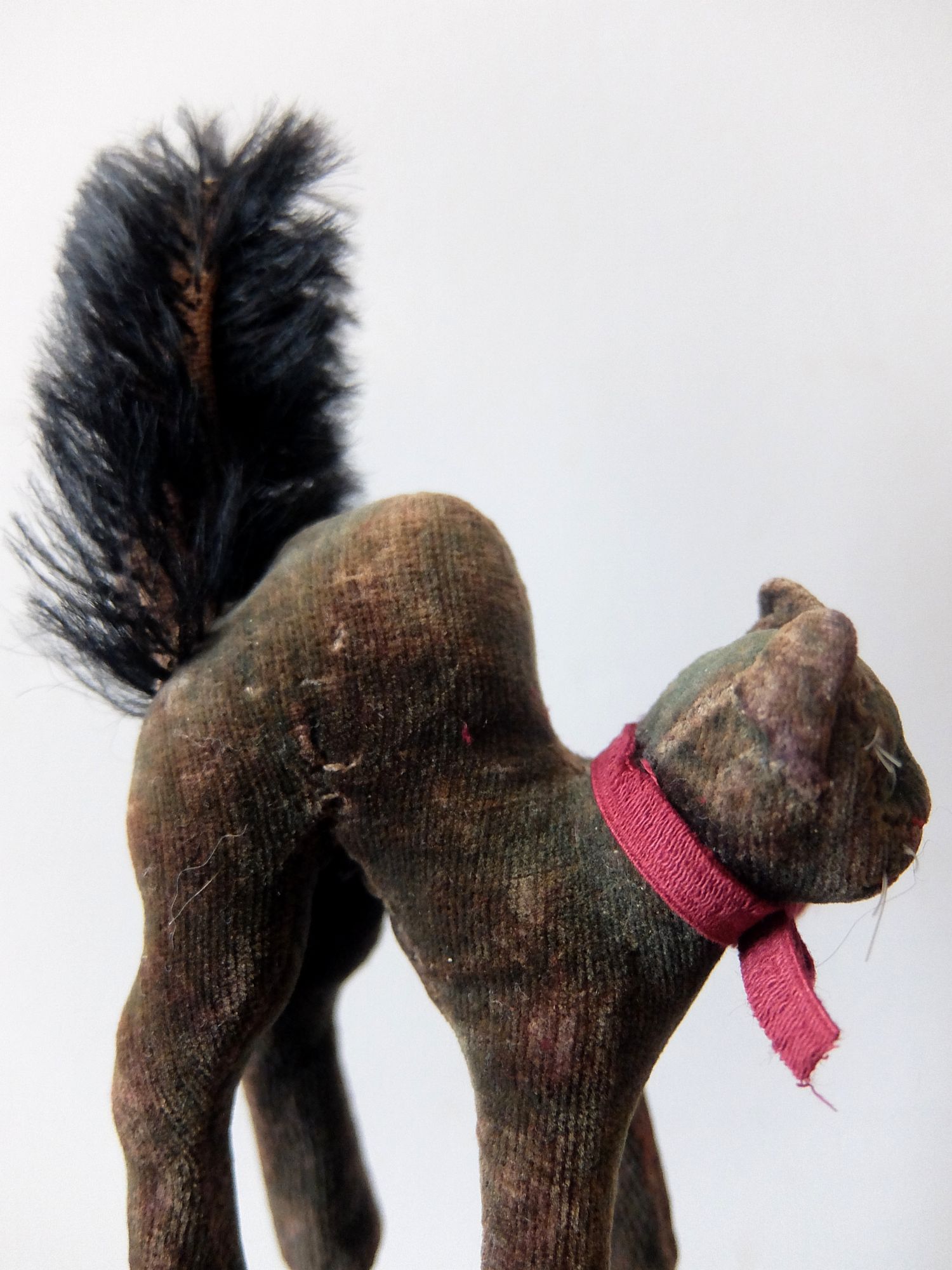 背中を丸めた威嚇のポーズが可愛らしい【Steiff(シュタイフ)】社製の黒猫のぬいぐるみ