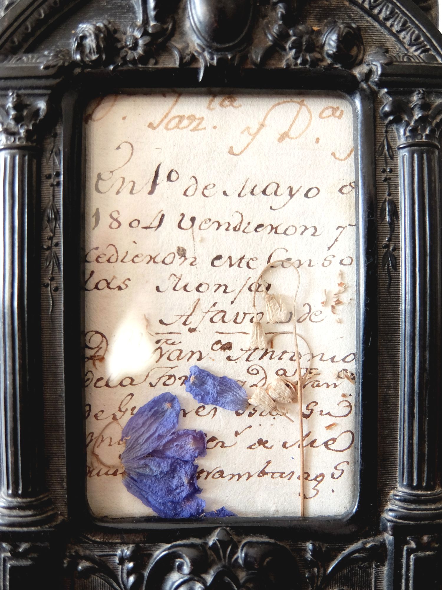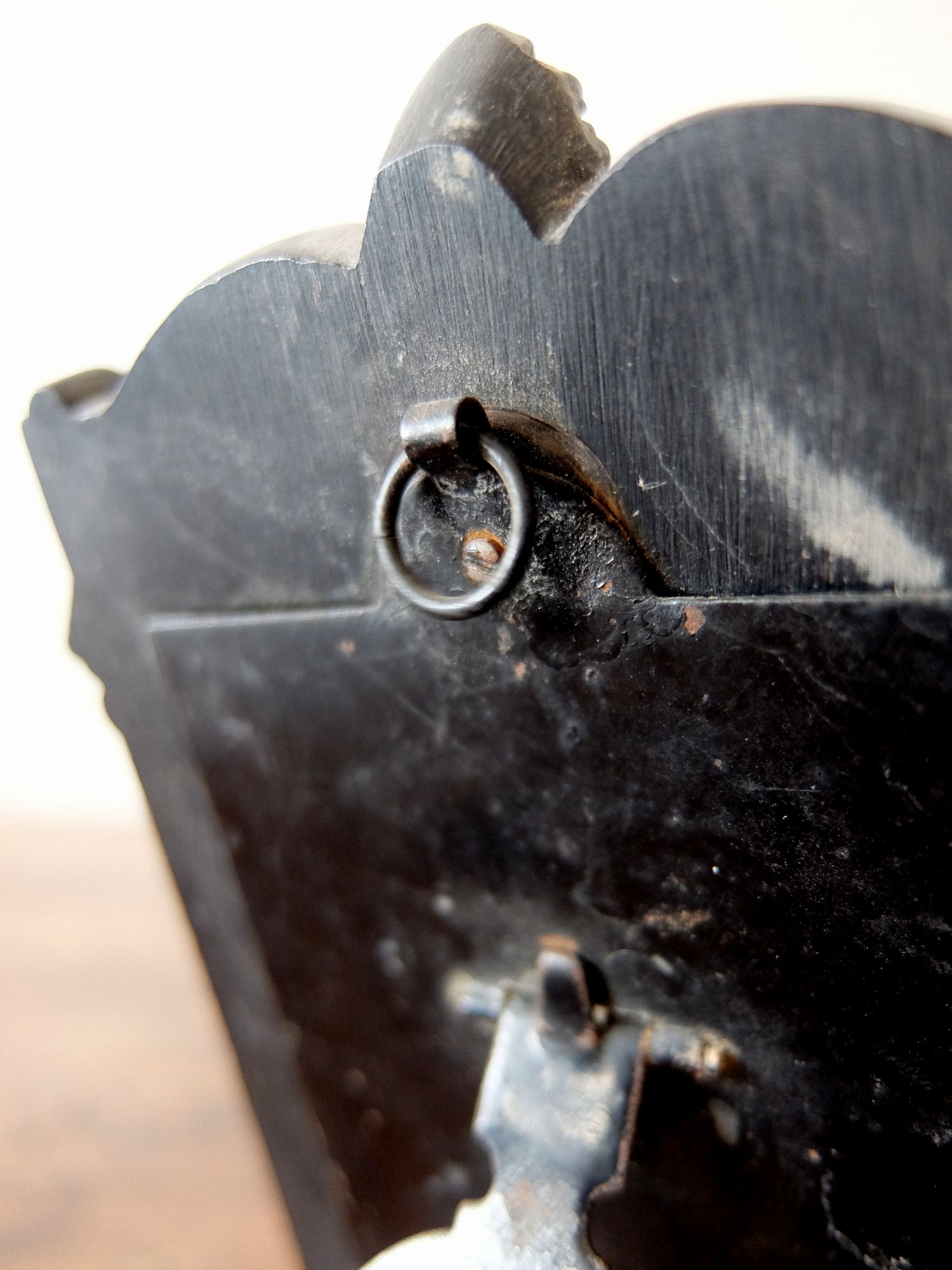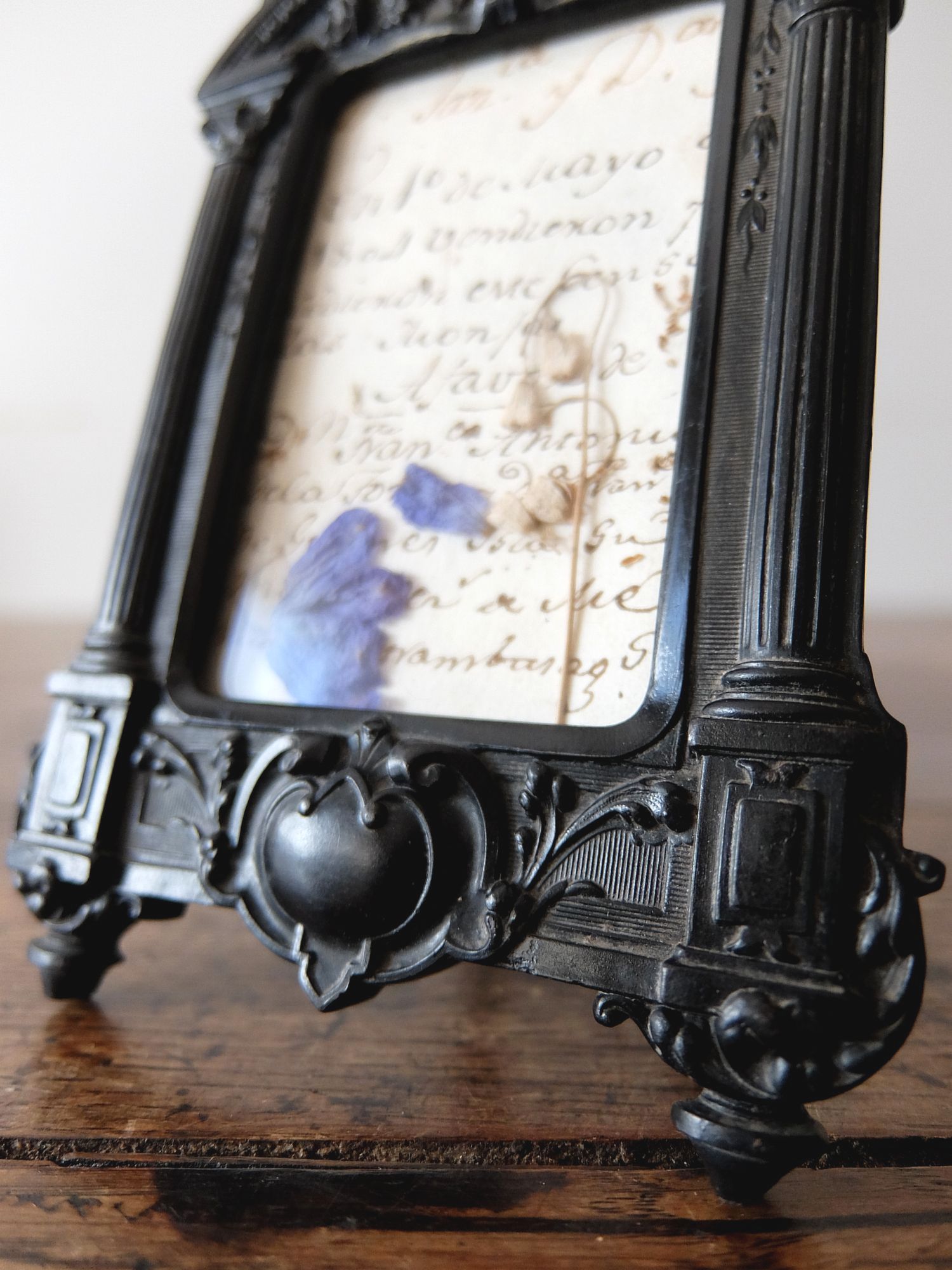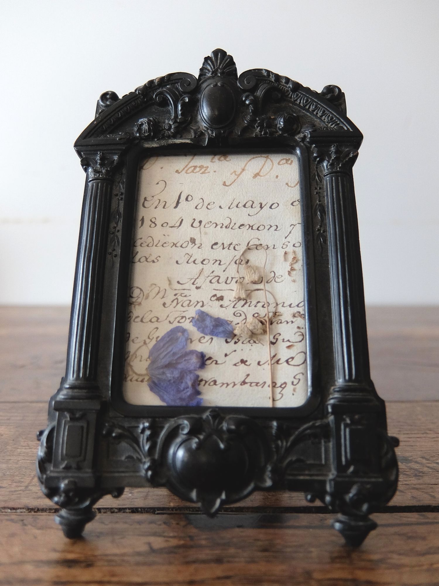 雄牛の血液と木屑を混ぜて熱圧縮した素材【Bois Durci】で作られたナポレオンⅢ世様式の写真たて(古紙・ドライフラワー入り)