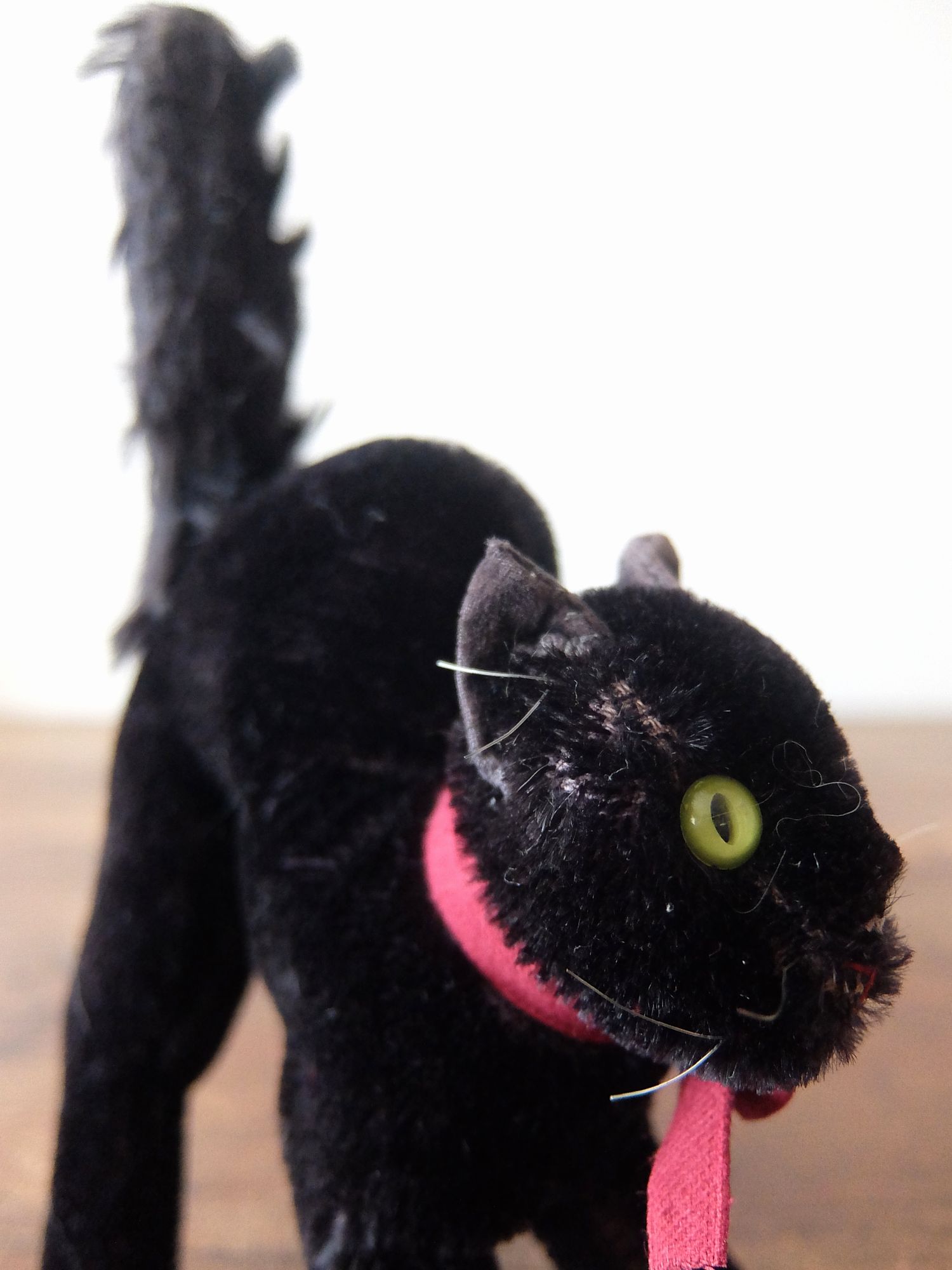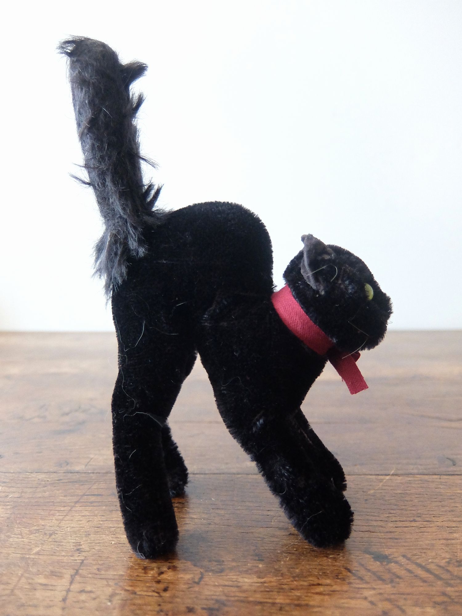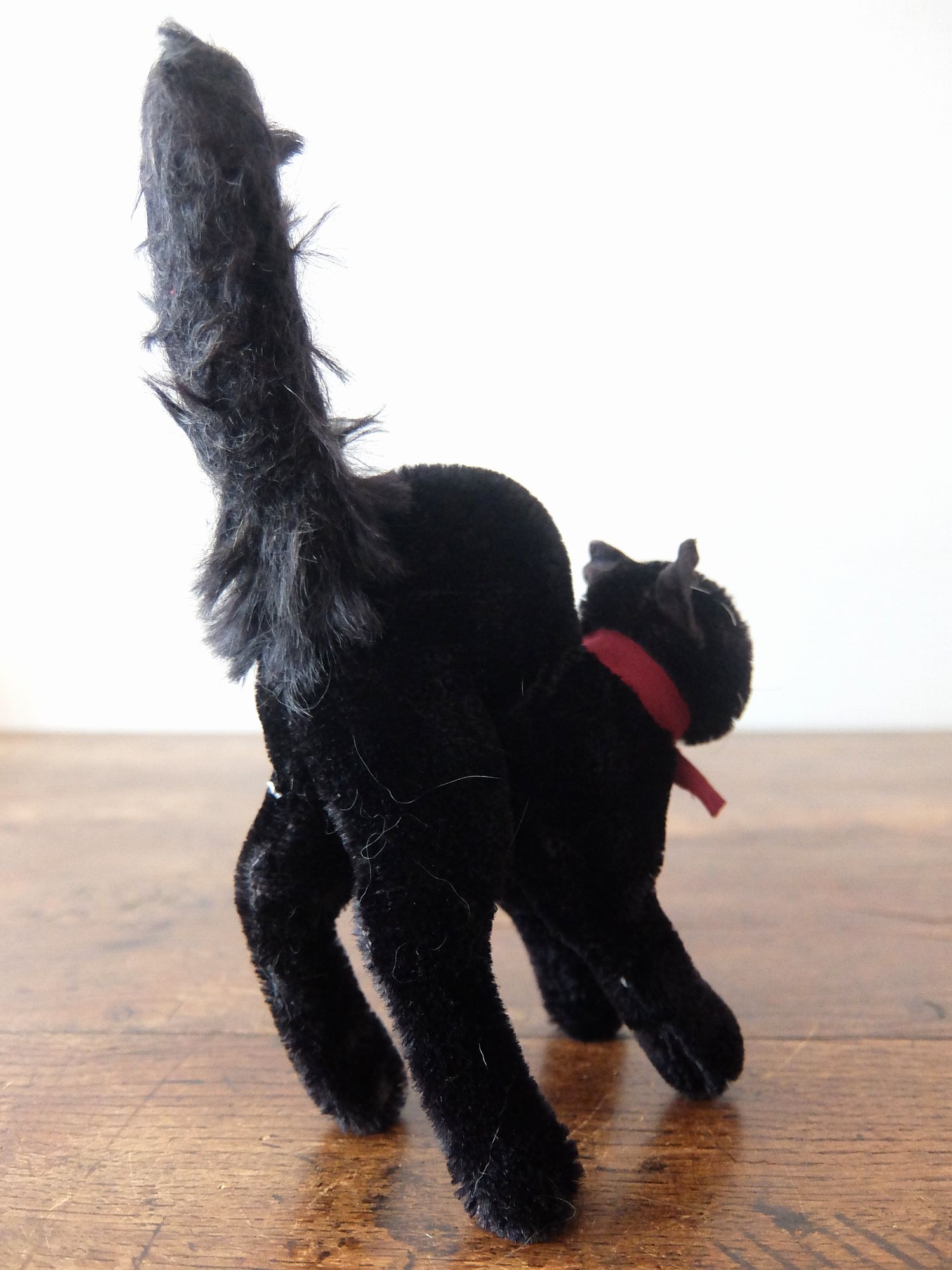 背中を丸めた威嚇のポーズが可愛らしい【Steiff(シュタイフ)】社製の黒猫のぬいぐるみ