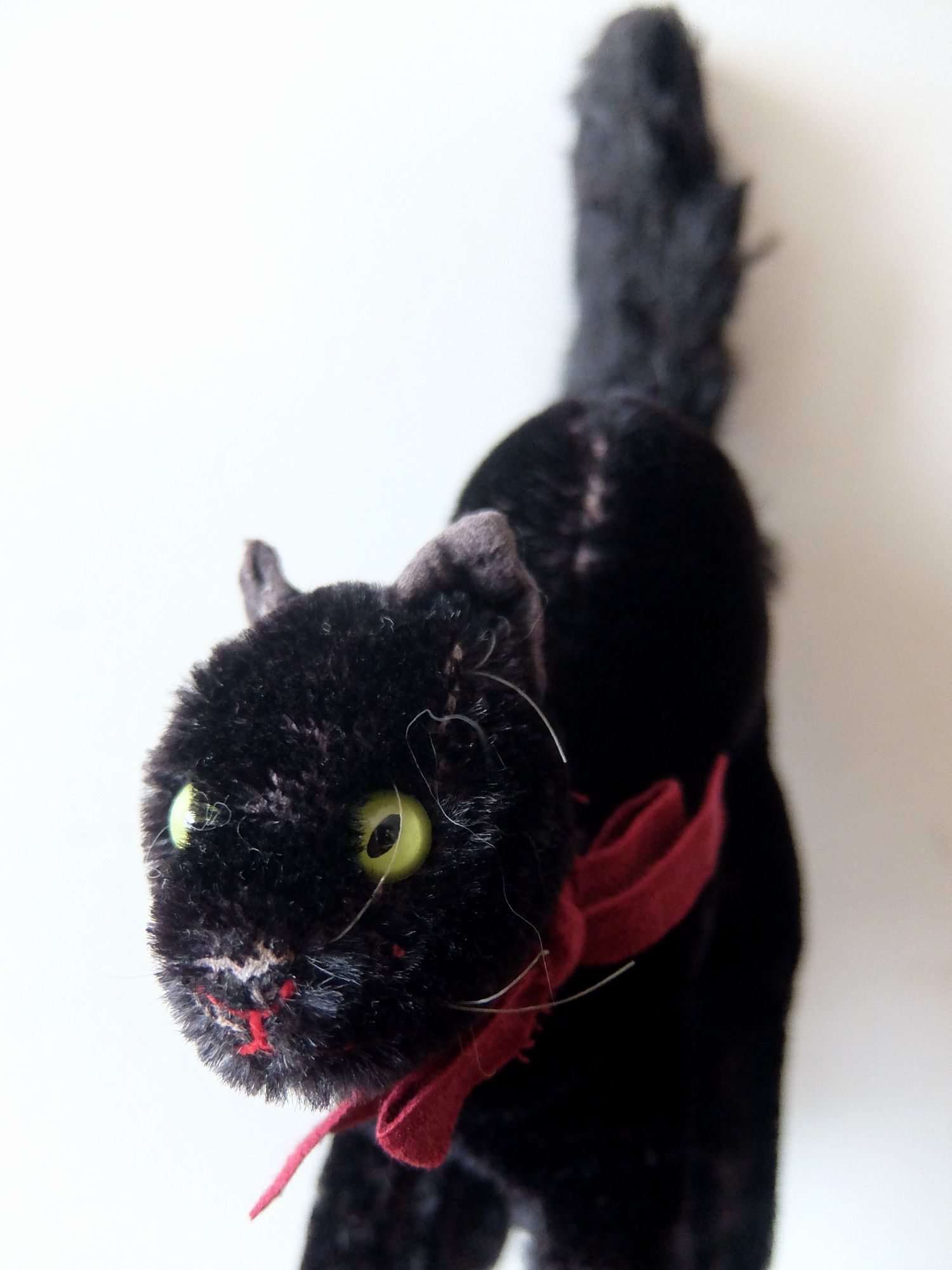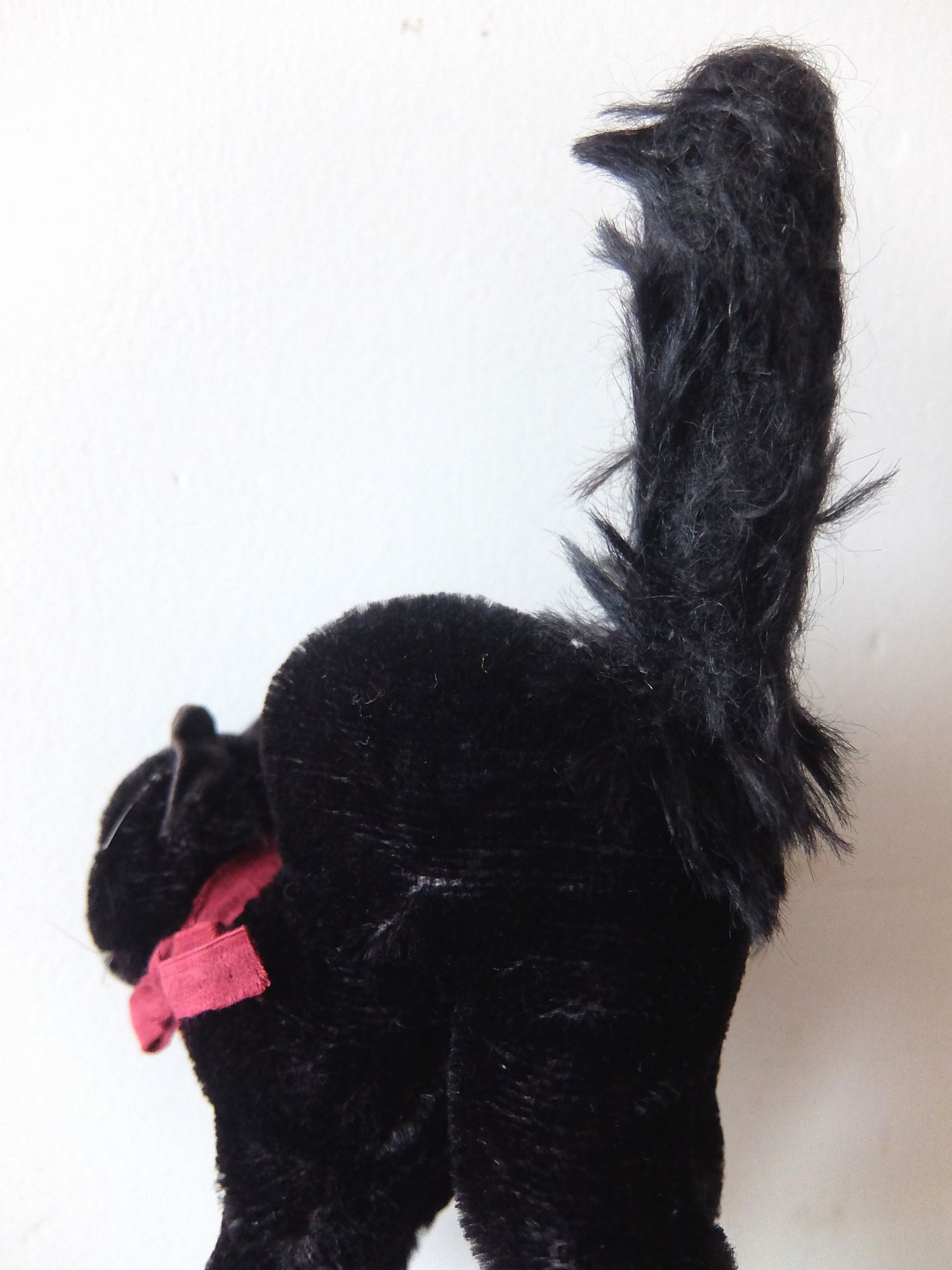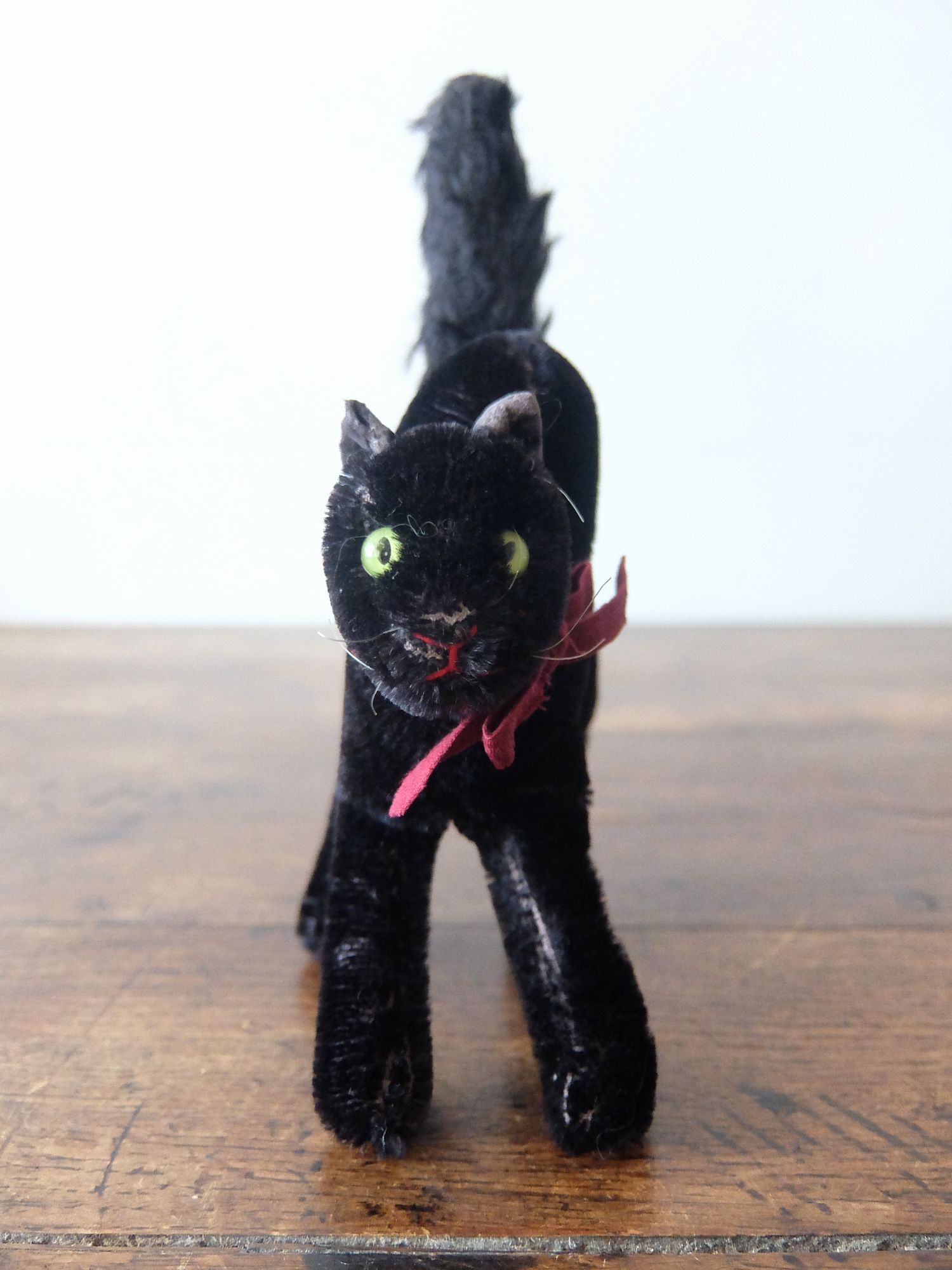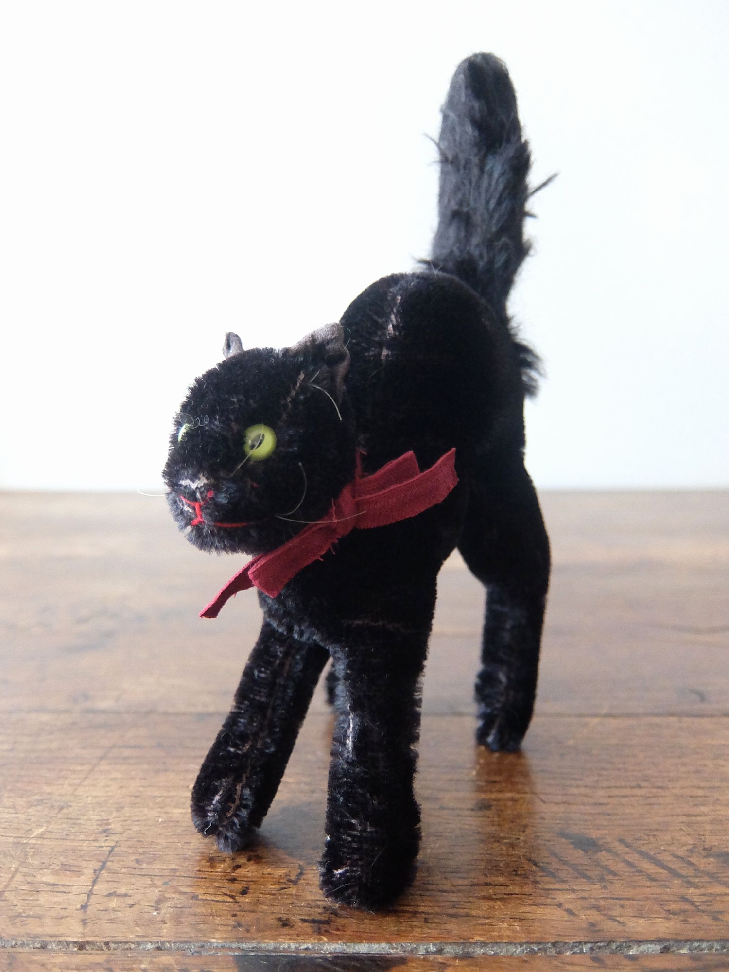 背中を丸めた威嚇のポーズが可愛らしい【Steiff(シュタイフ)】社製の黒猫のぬいぐるみ