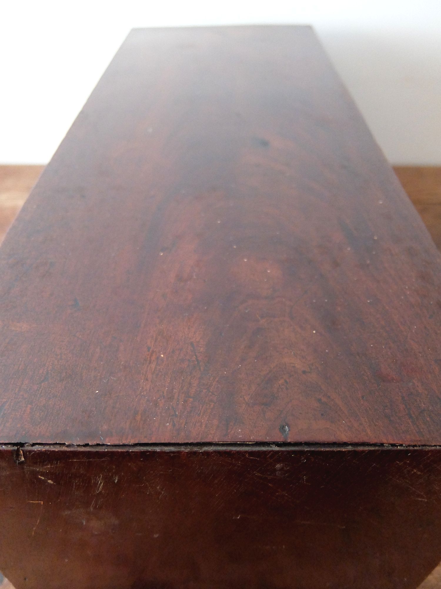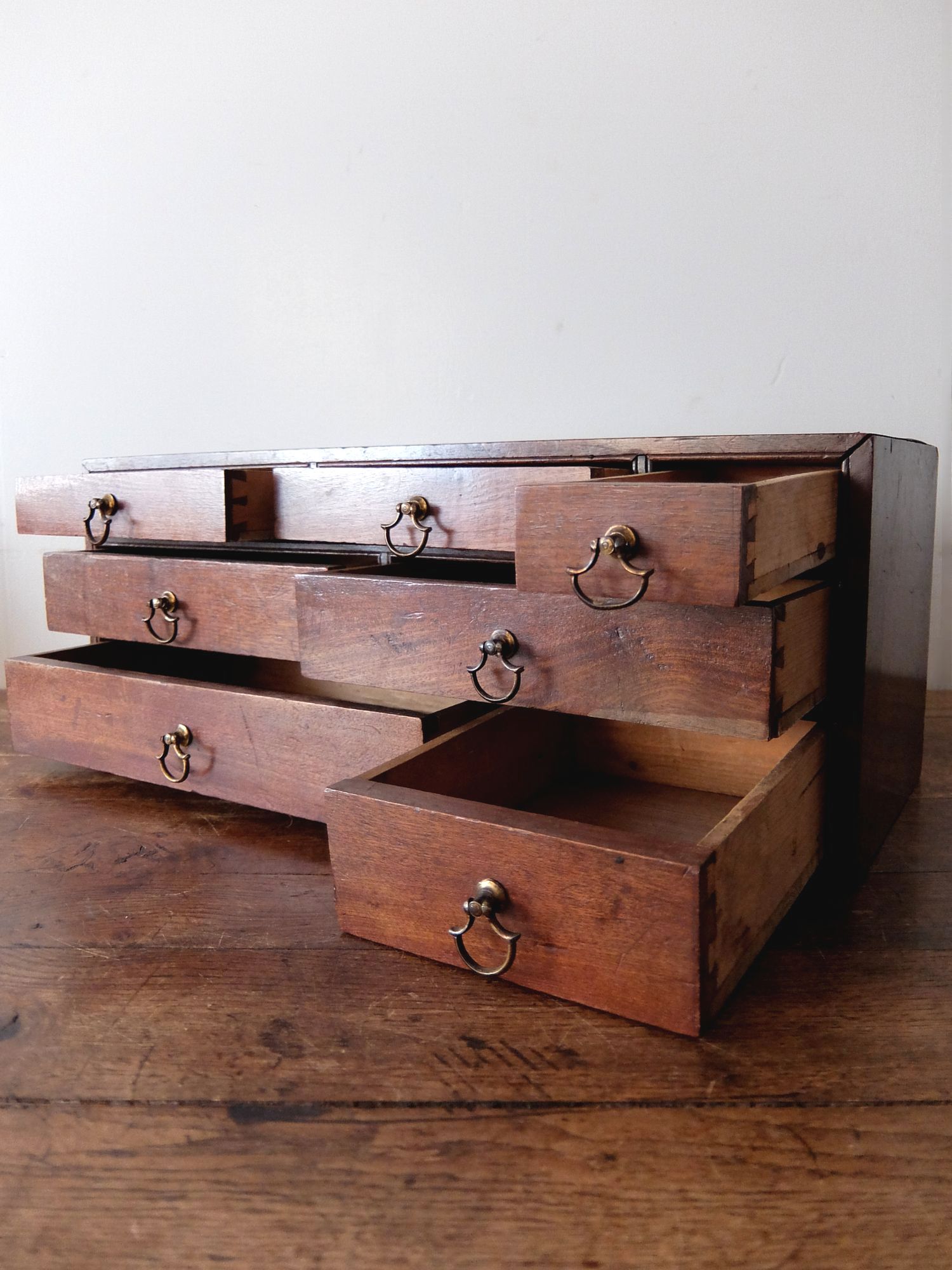 小分けされた引出しが可愛らしいマホガニー材の手芸用小物入れ