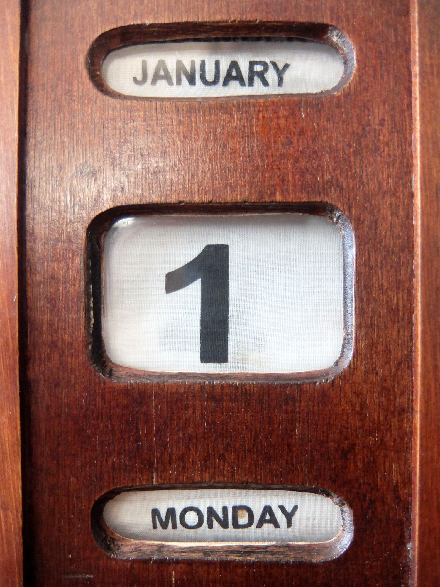 経年の雰囲気が魅力的な木製の万年カレンダー