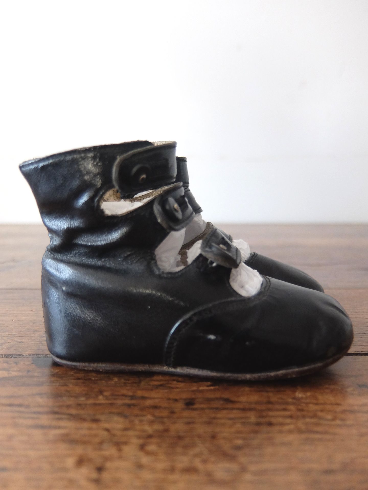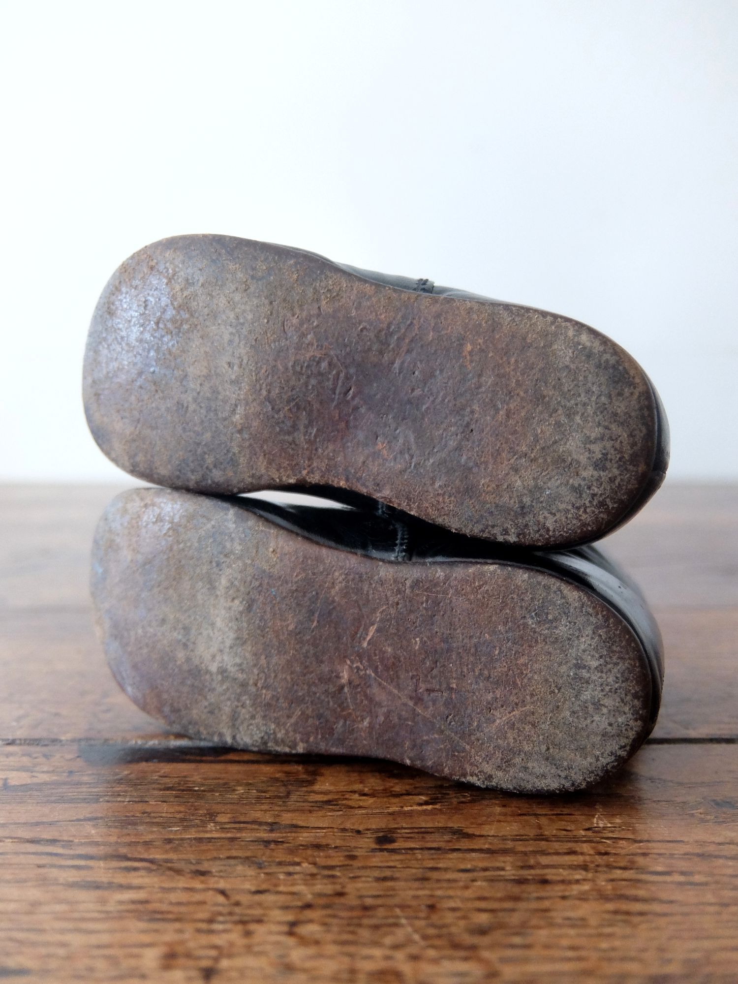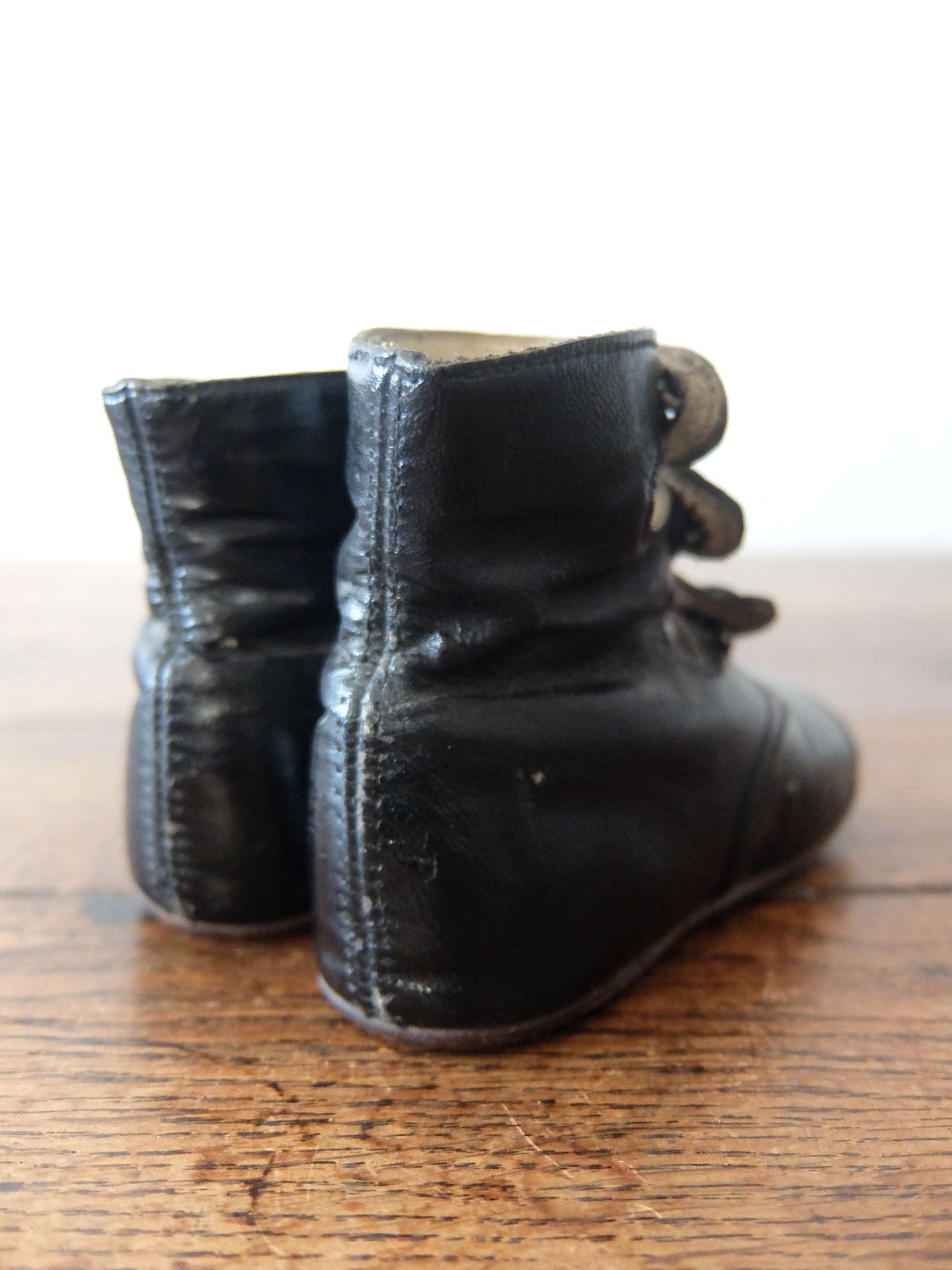 使い込まれた革の雰囲気が魅力的な子供用/人形用のヴィクトリアンベビーシューズ