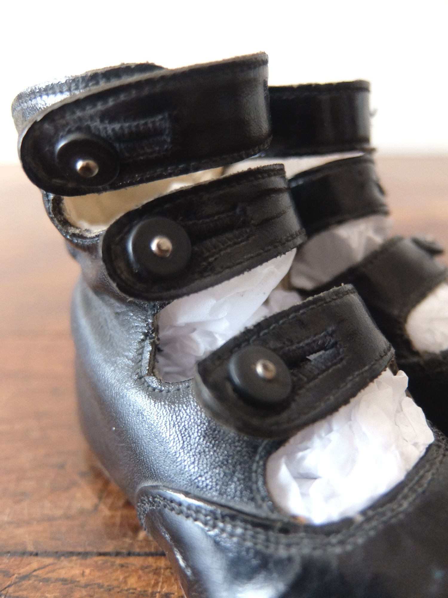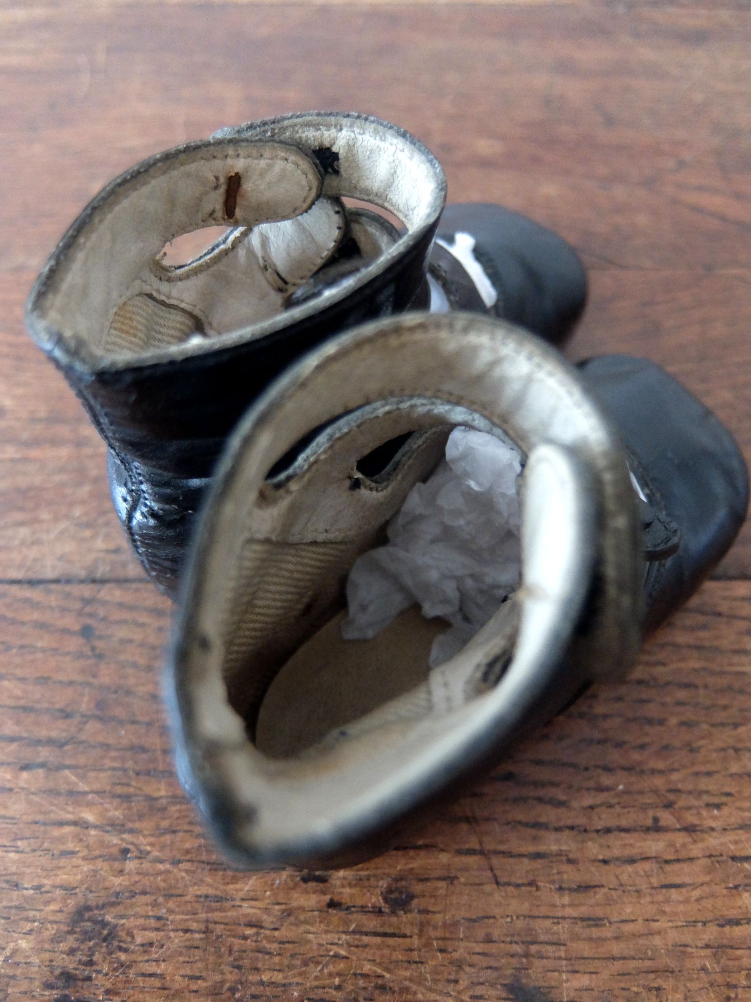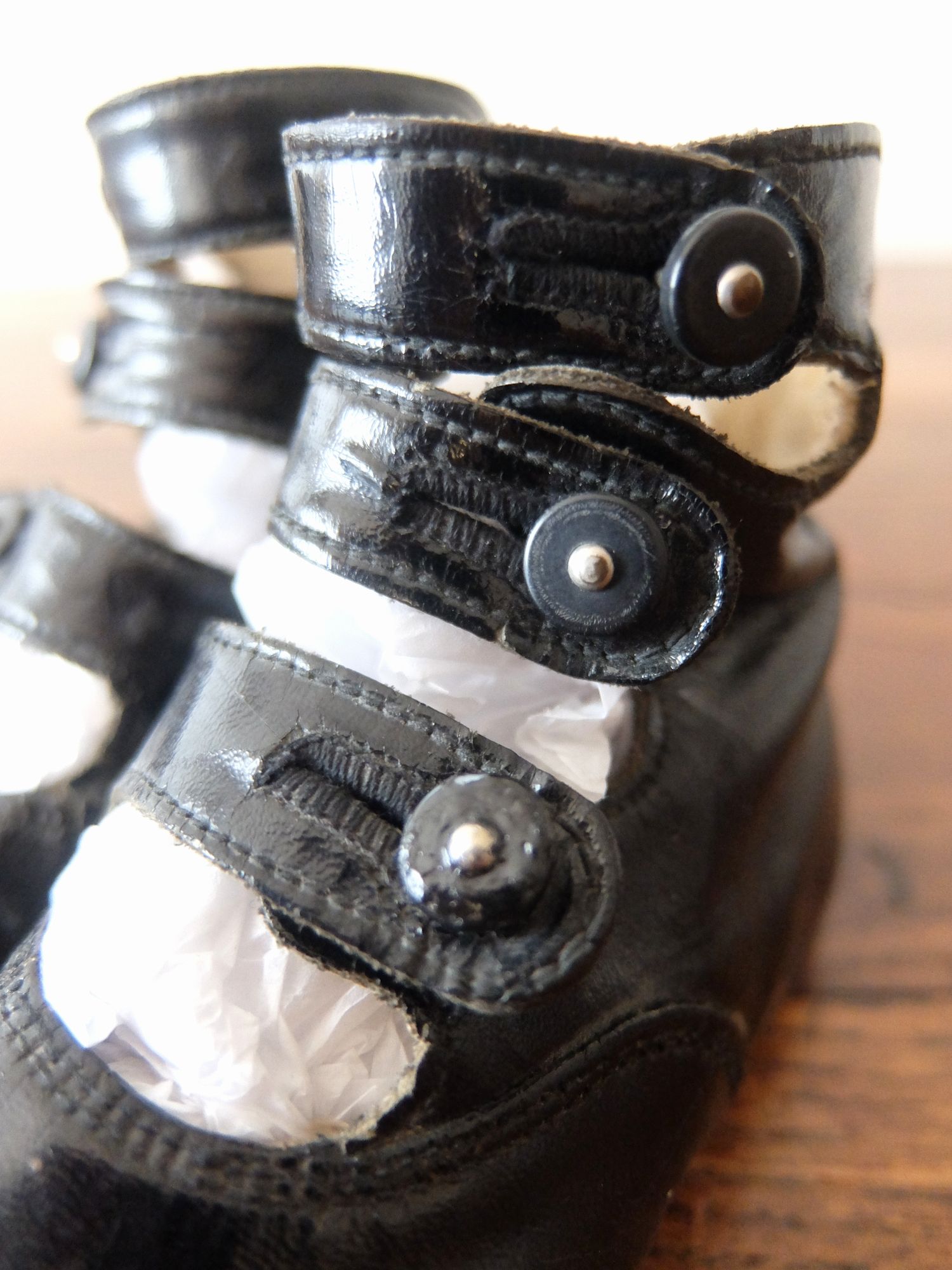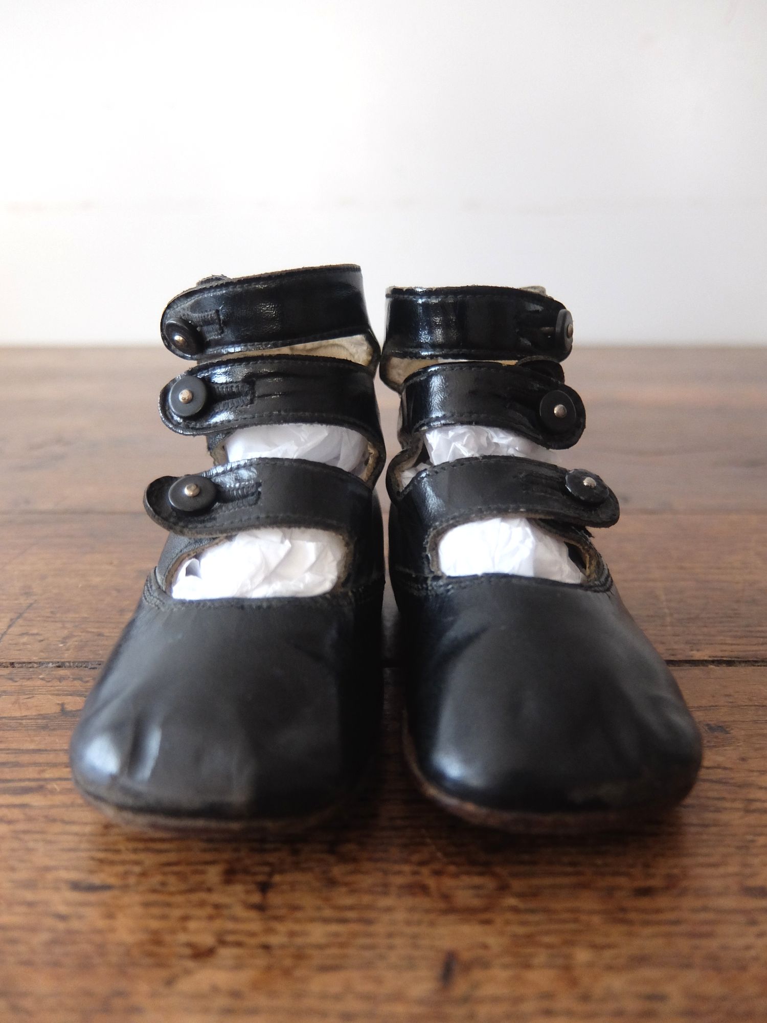 使い込まれた革の雰囲気が魅力的な子供用/人形用のヴィクトリアンベビーシューズ