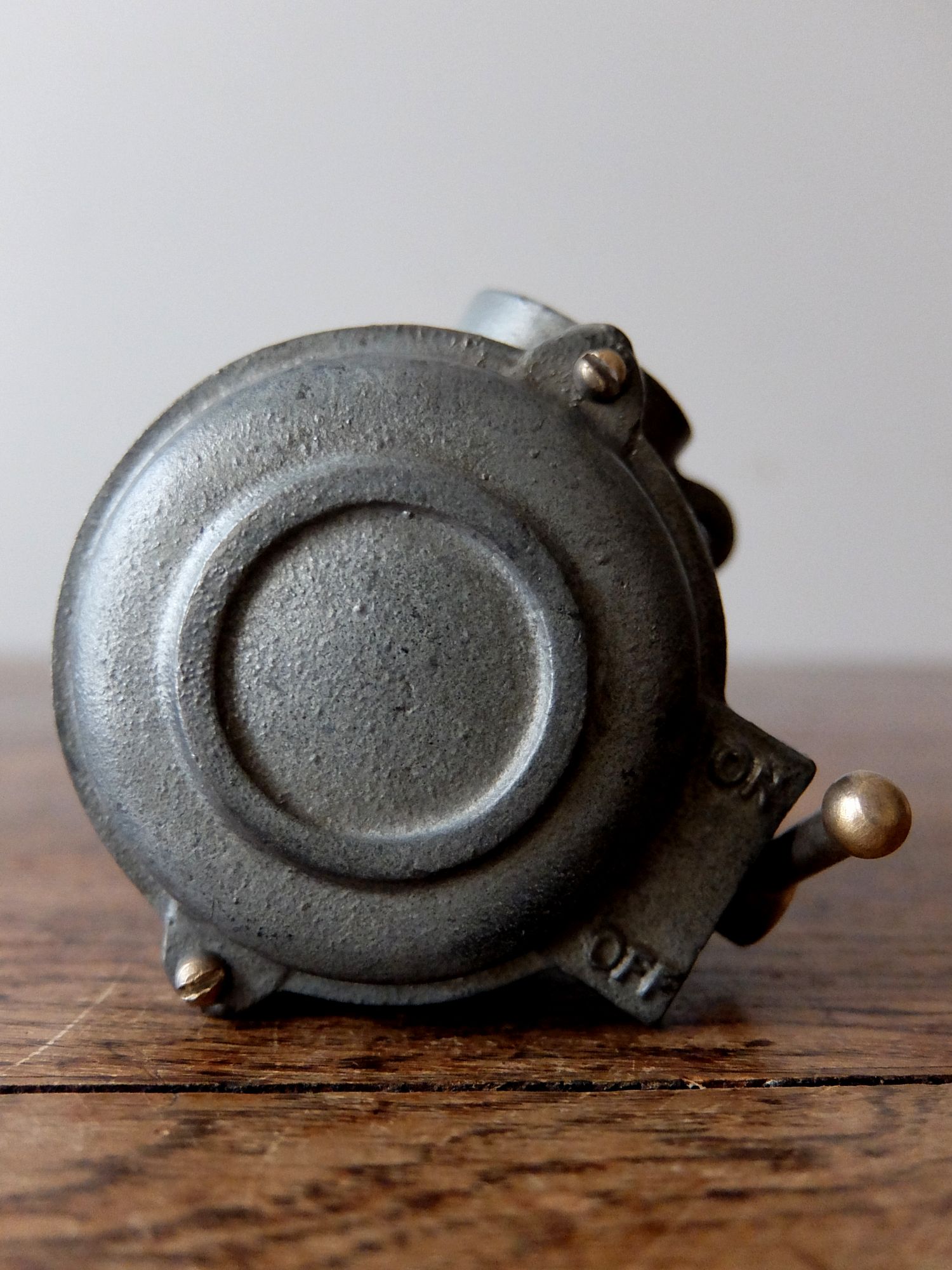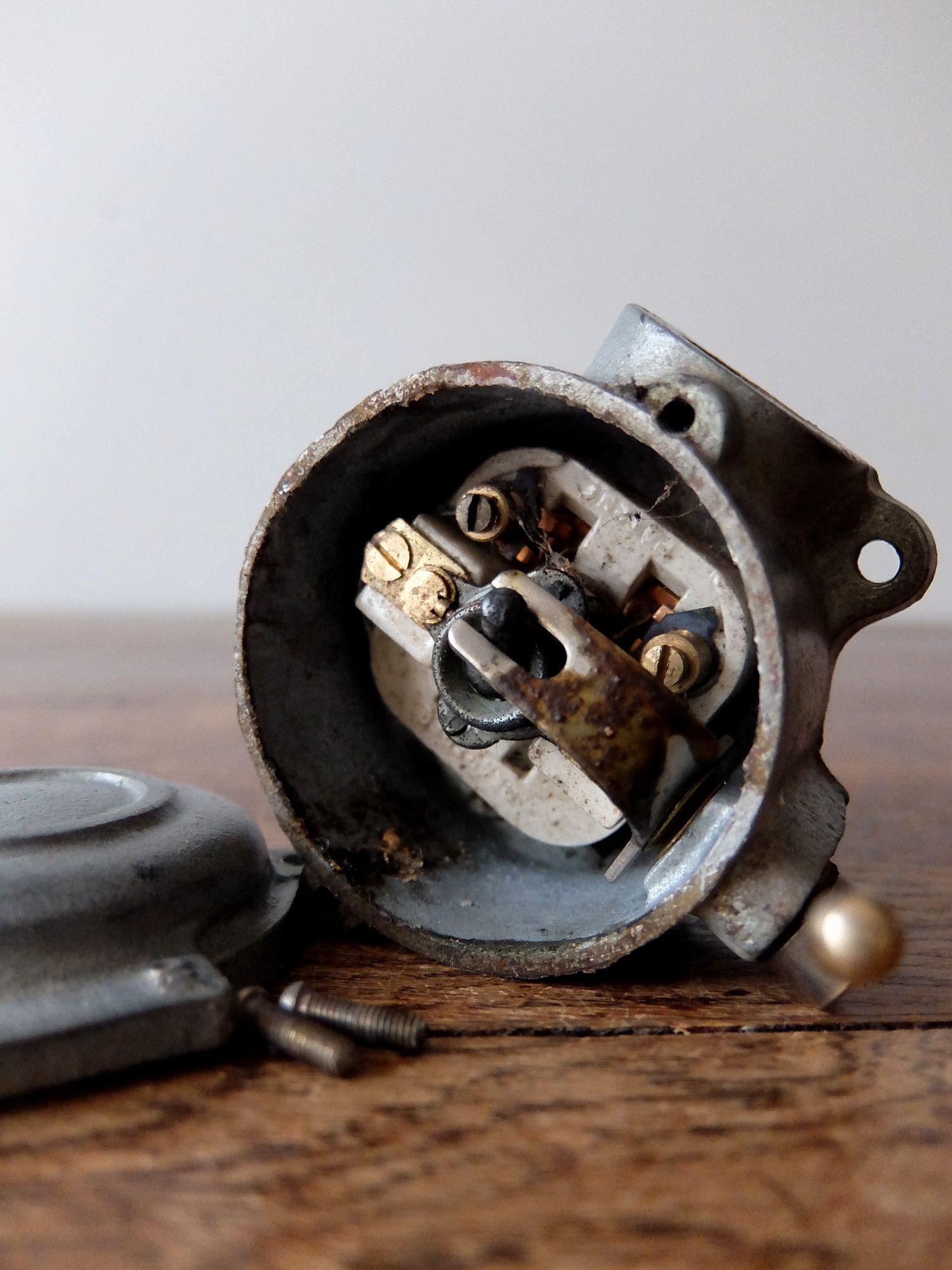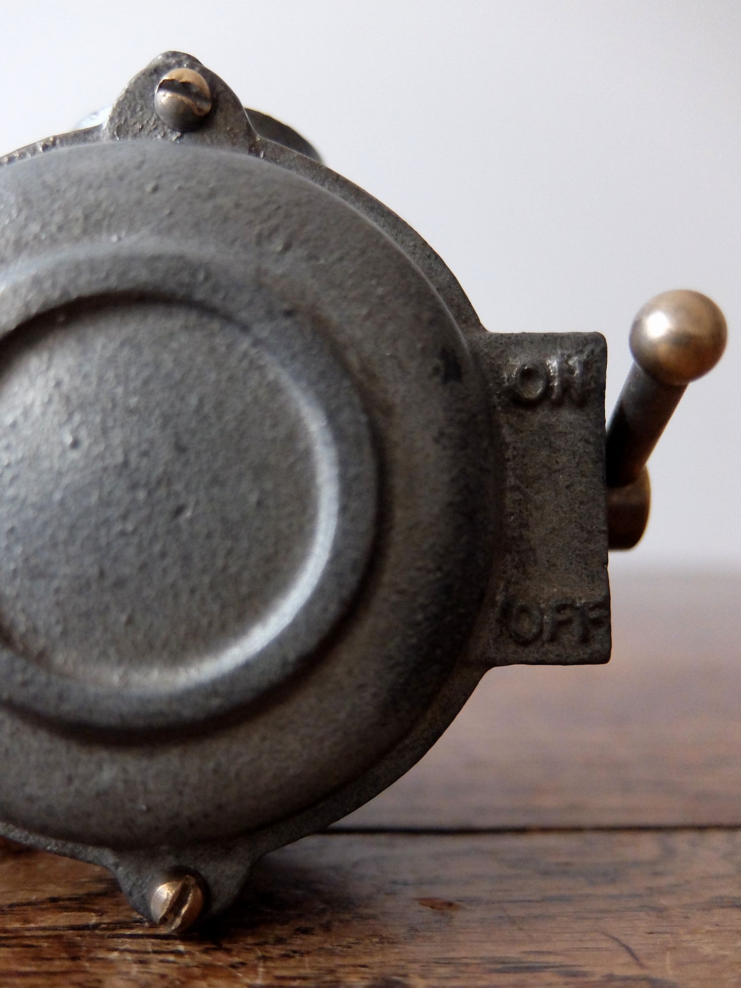 側面のタブで操作する鉄のケースに収まったスイッチ