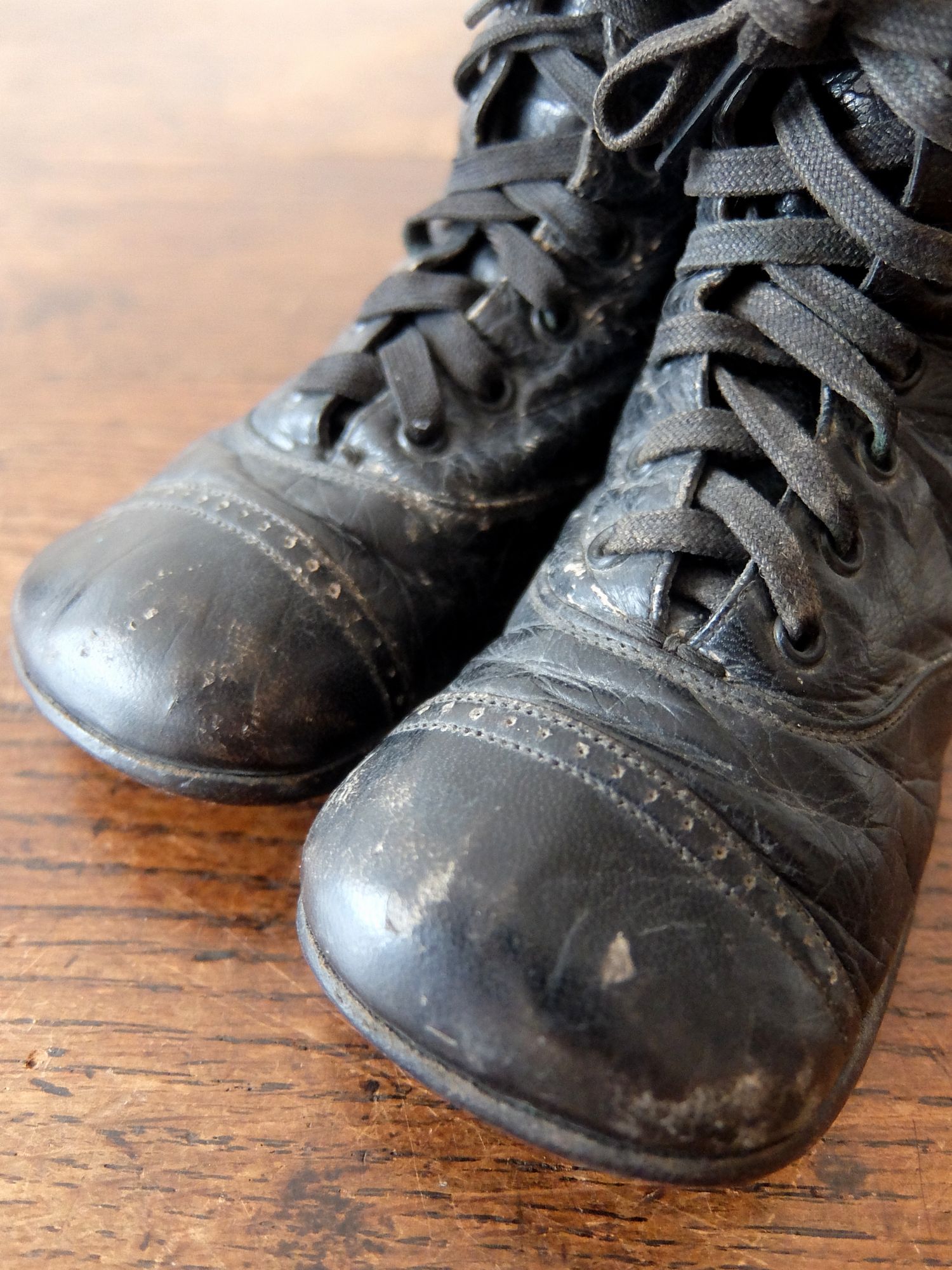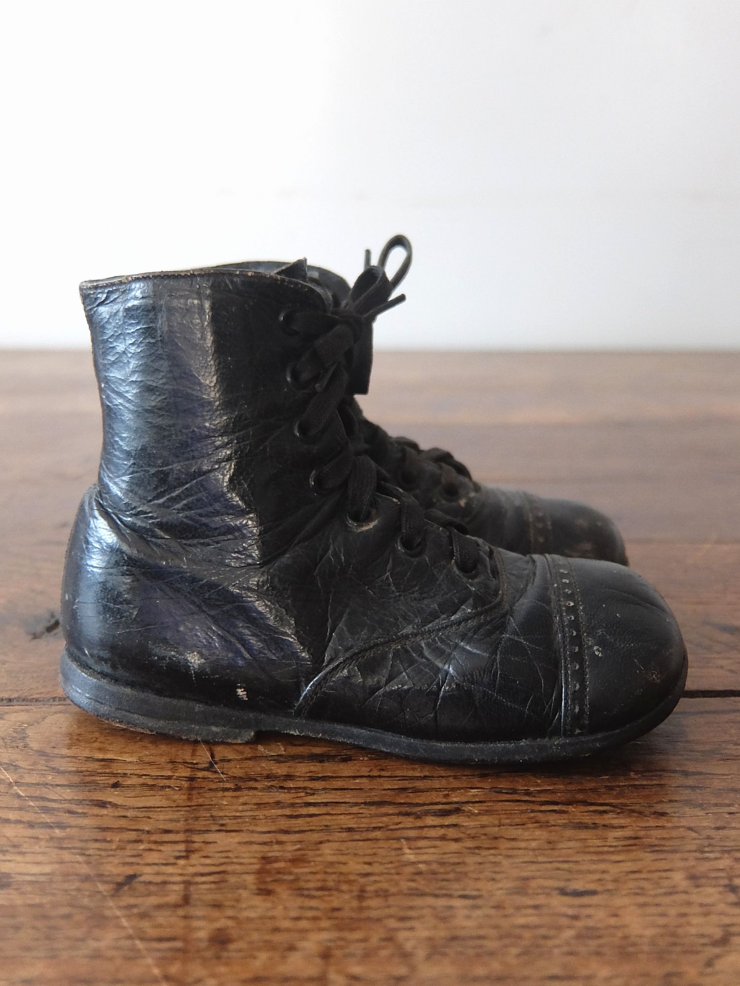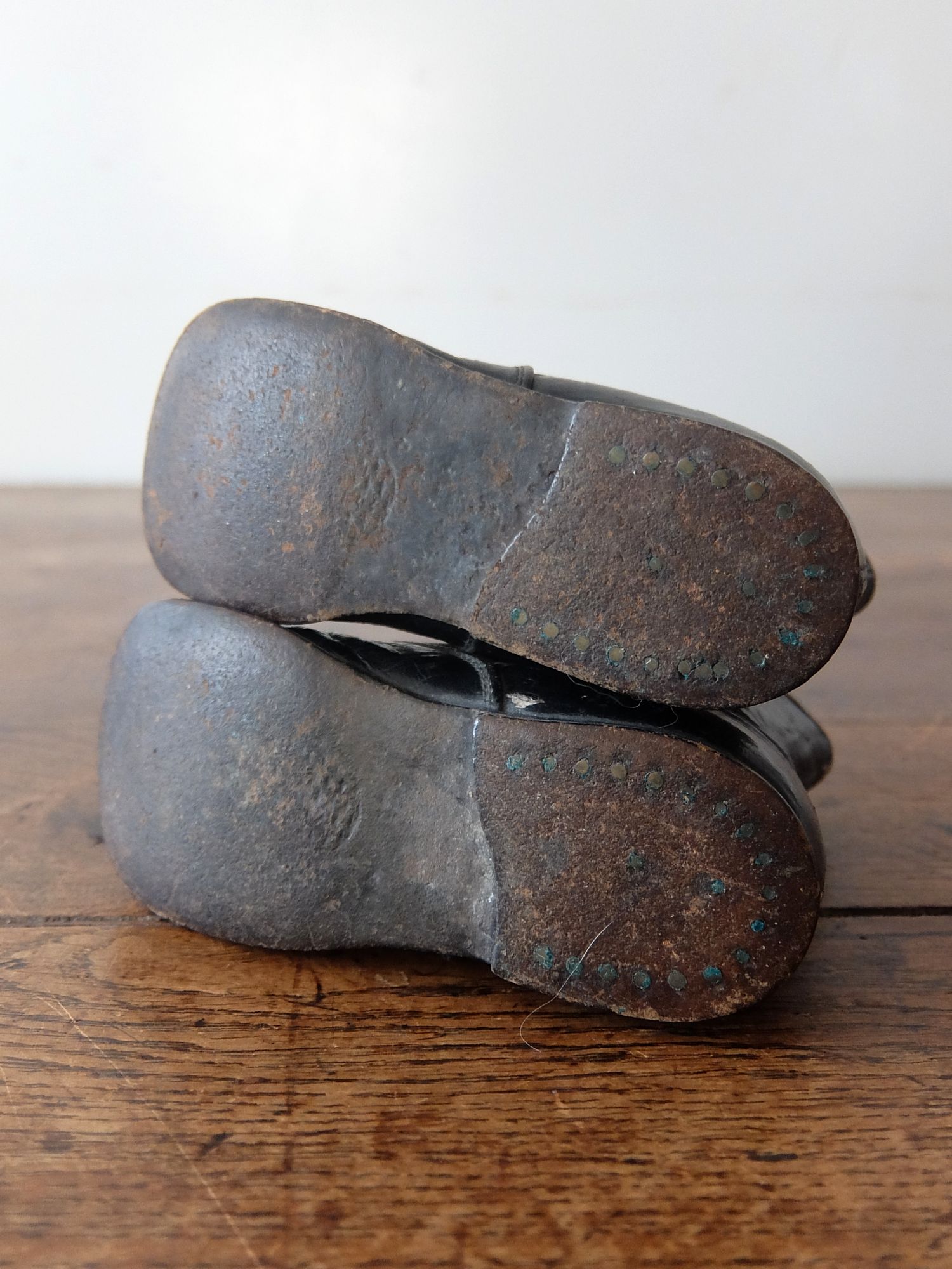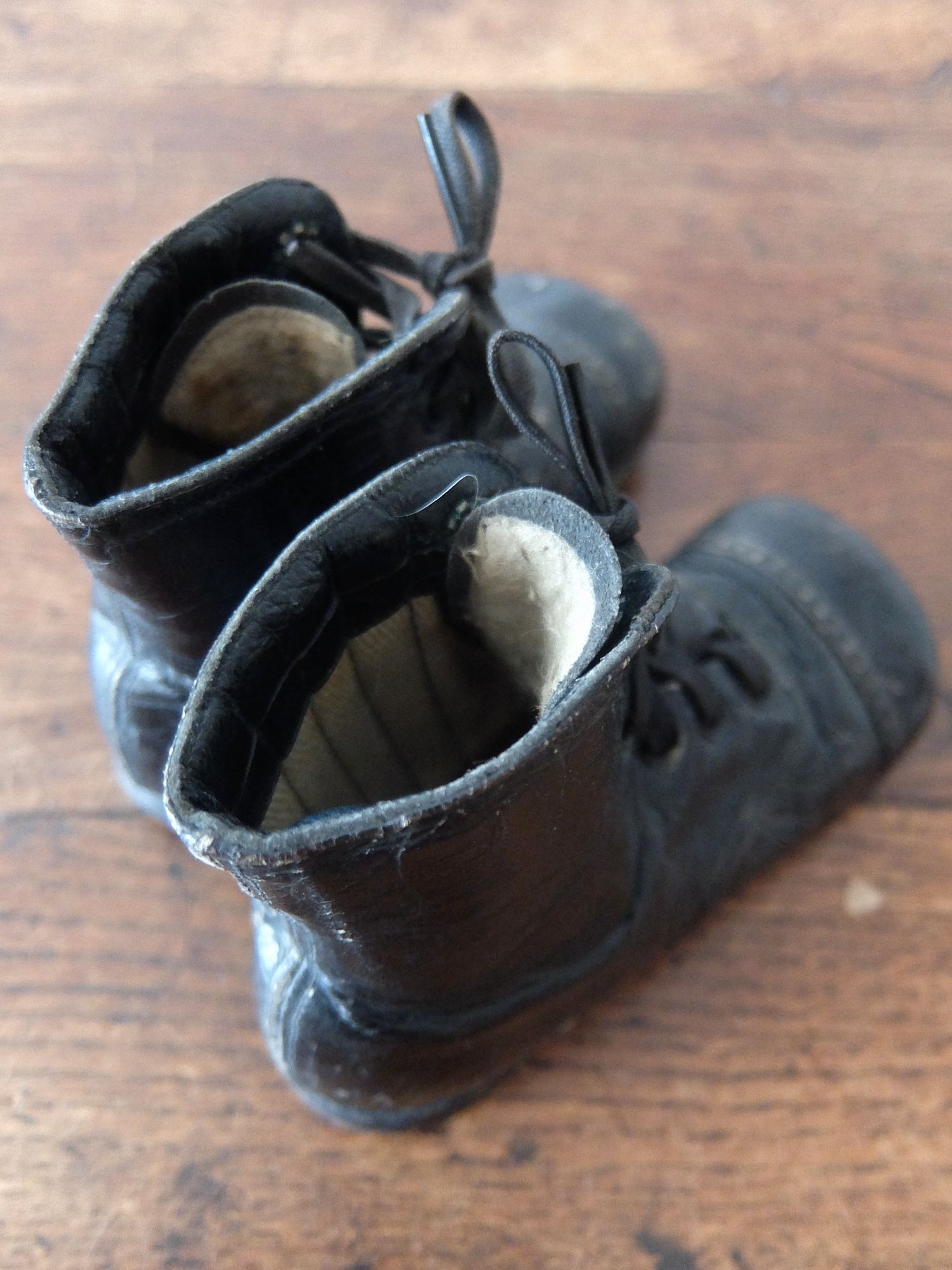 使い込まれた革の雰囲気が魅力的な子供用/人形用のベビーシューズ