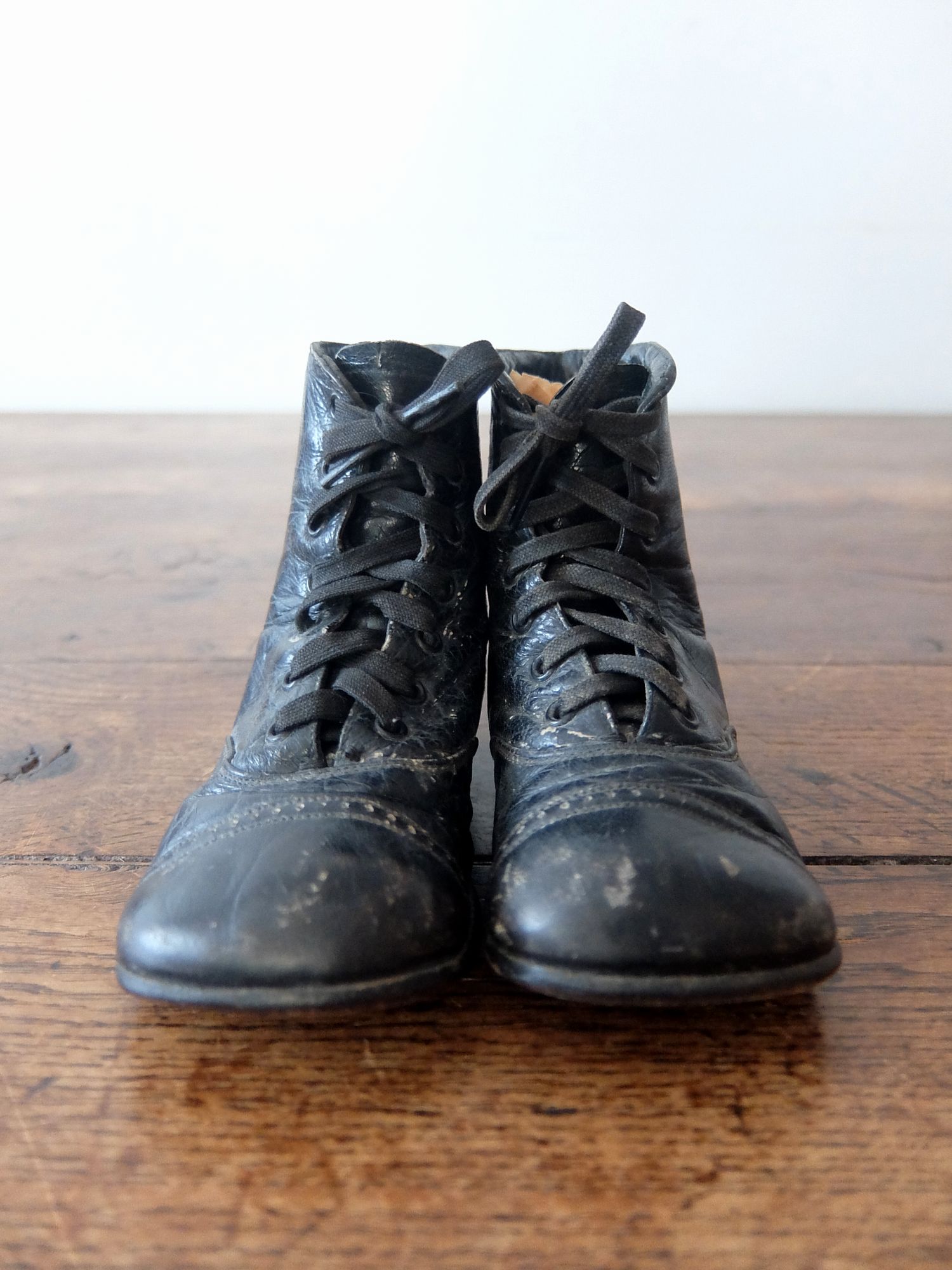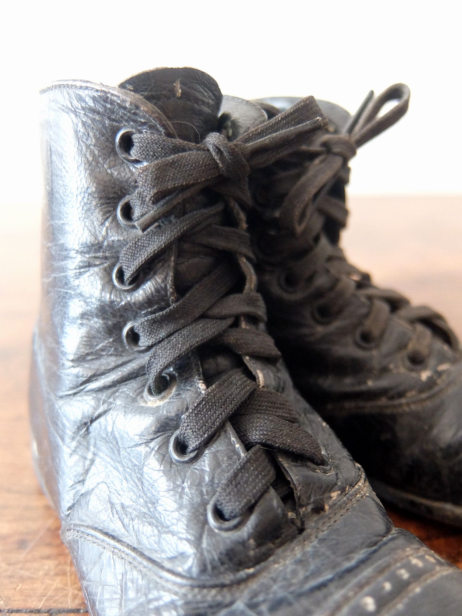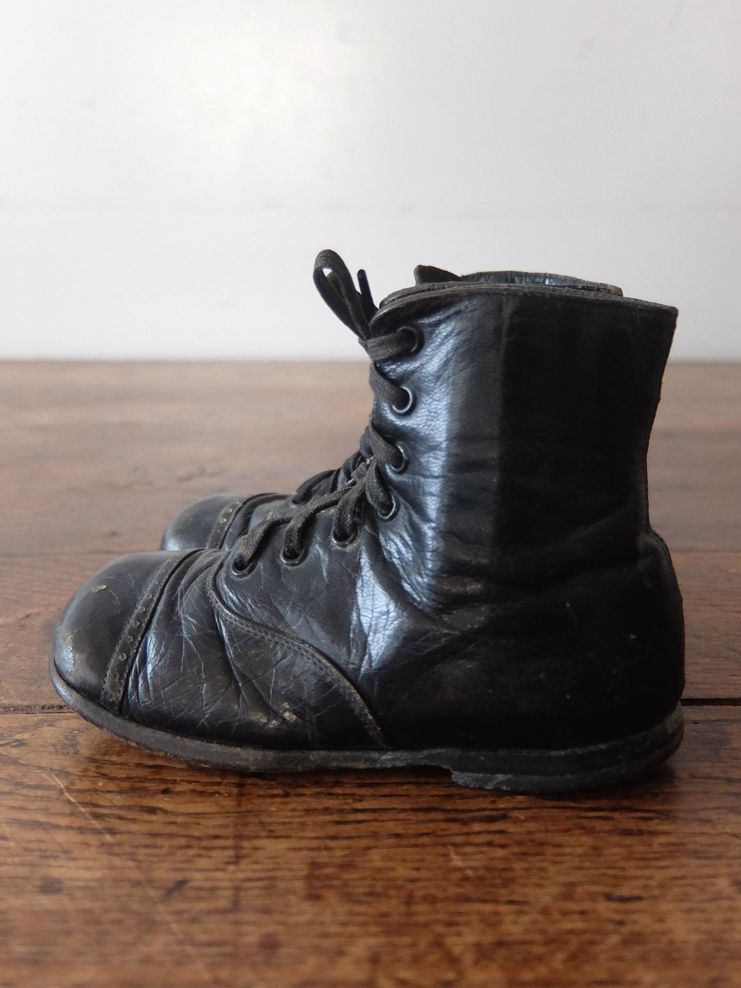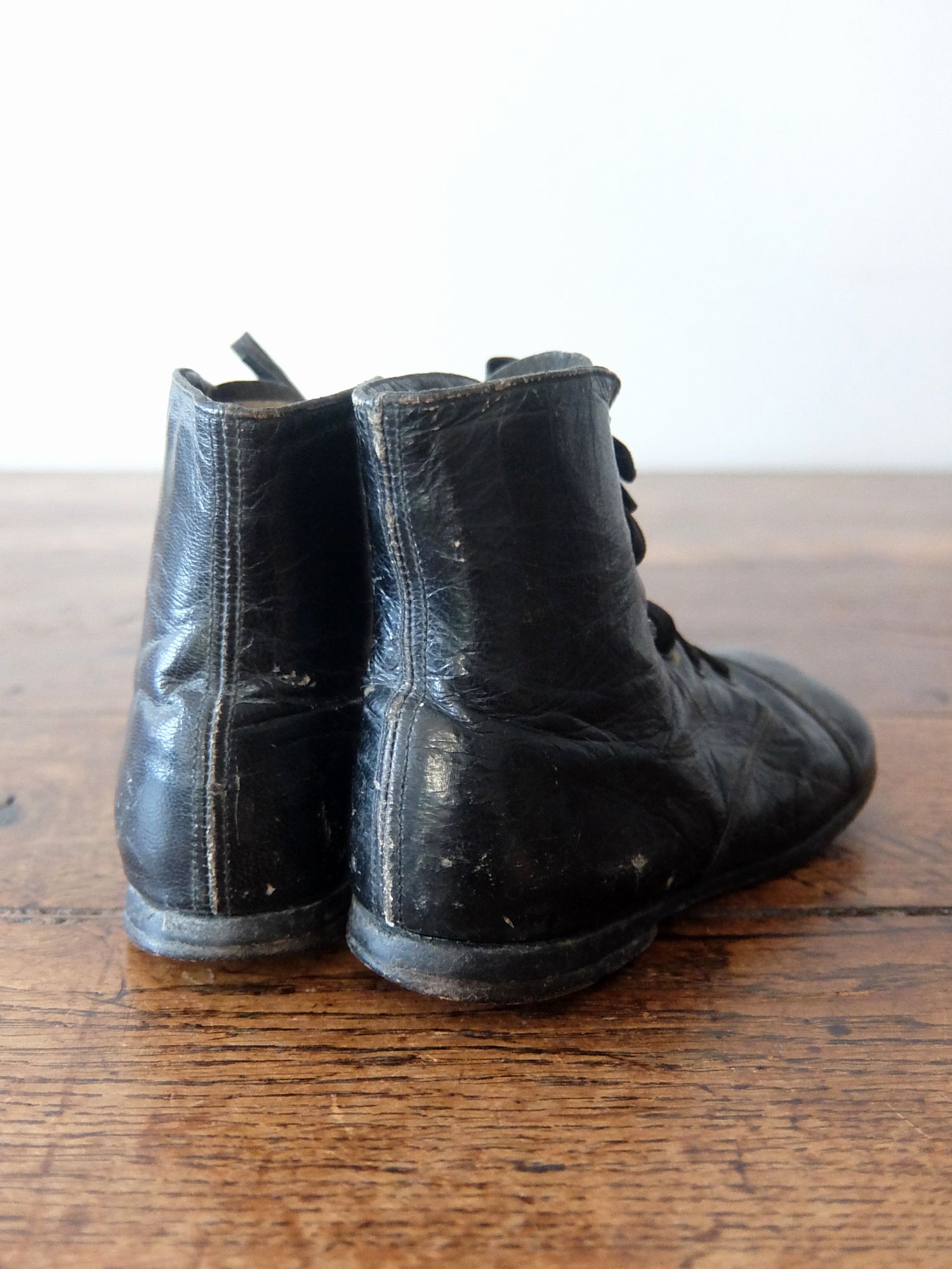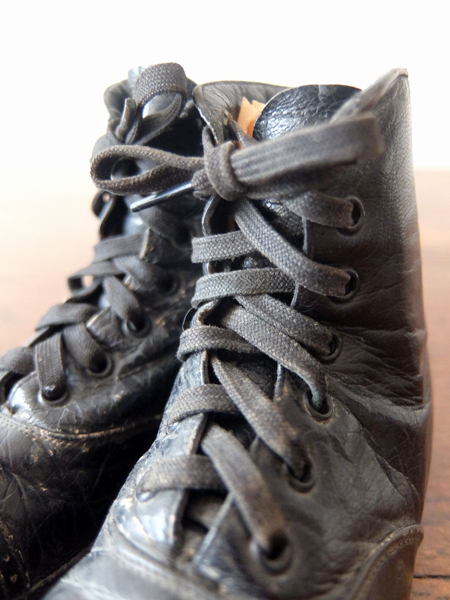 使い込まれた革の雰囲気が魅力的な子供用/人形用のベビーシューズ