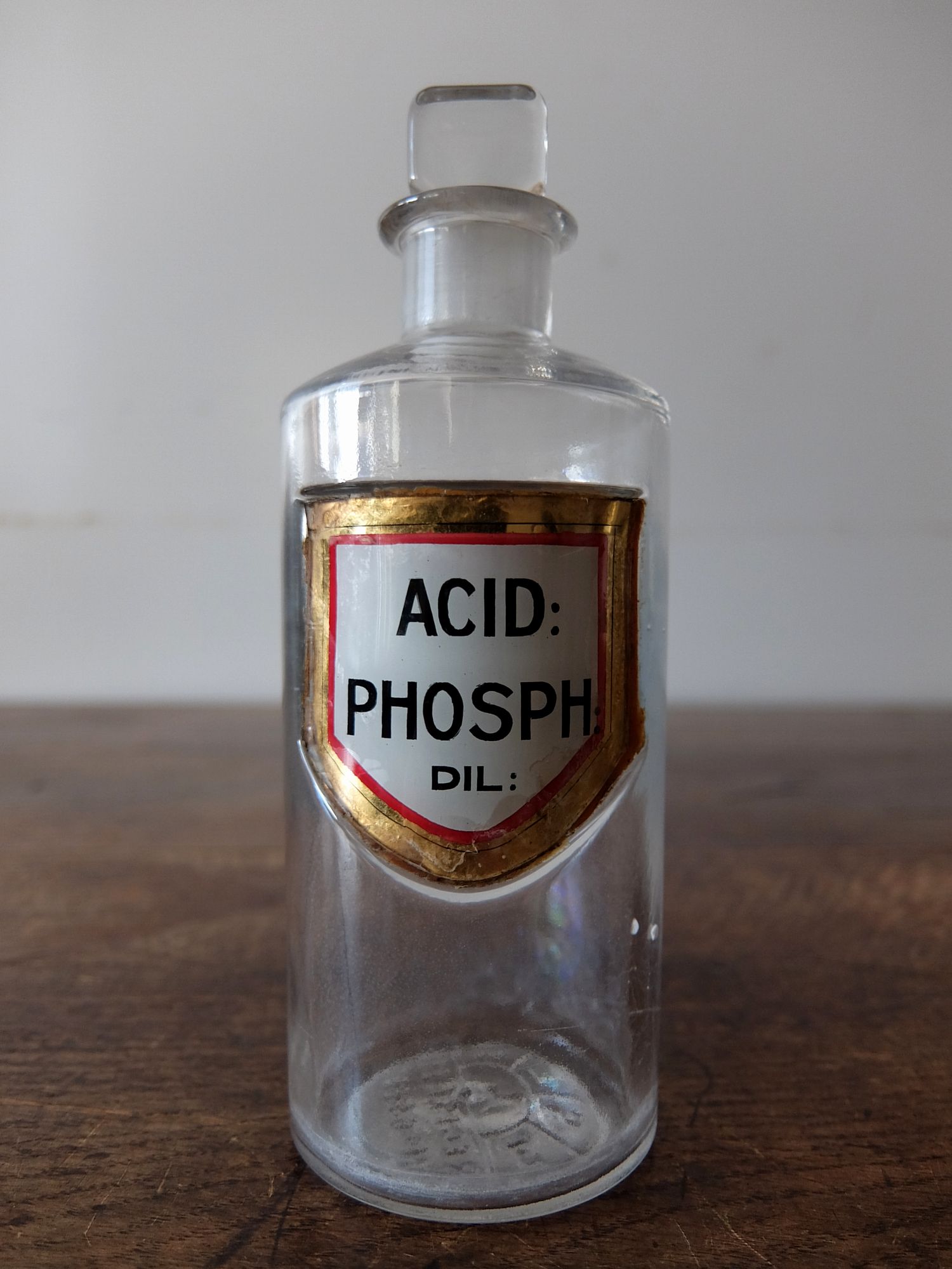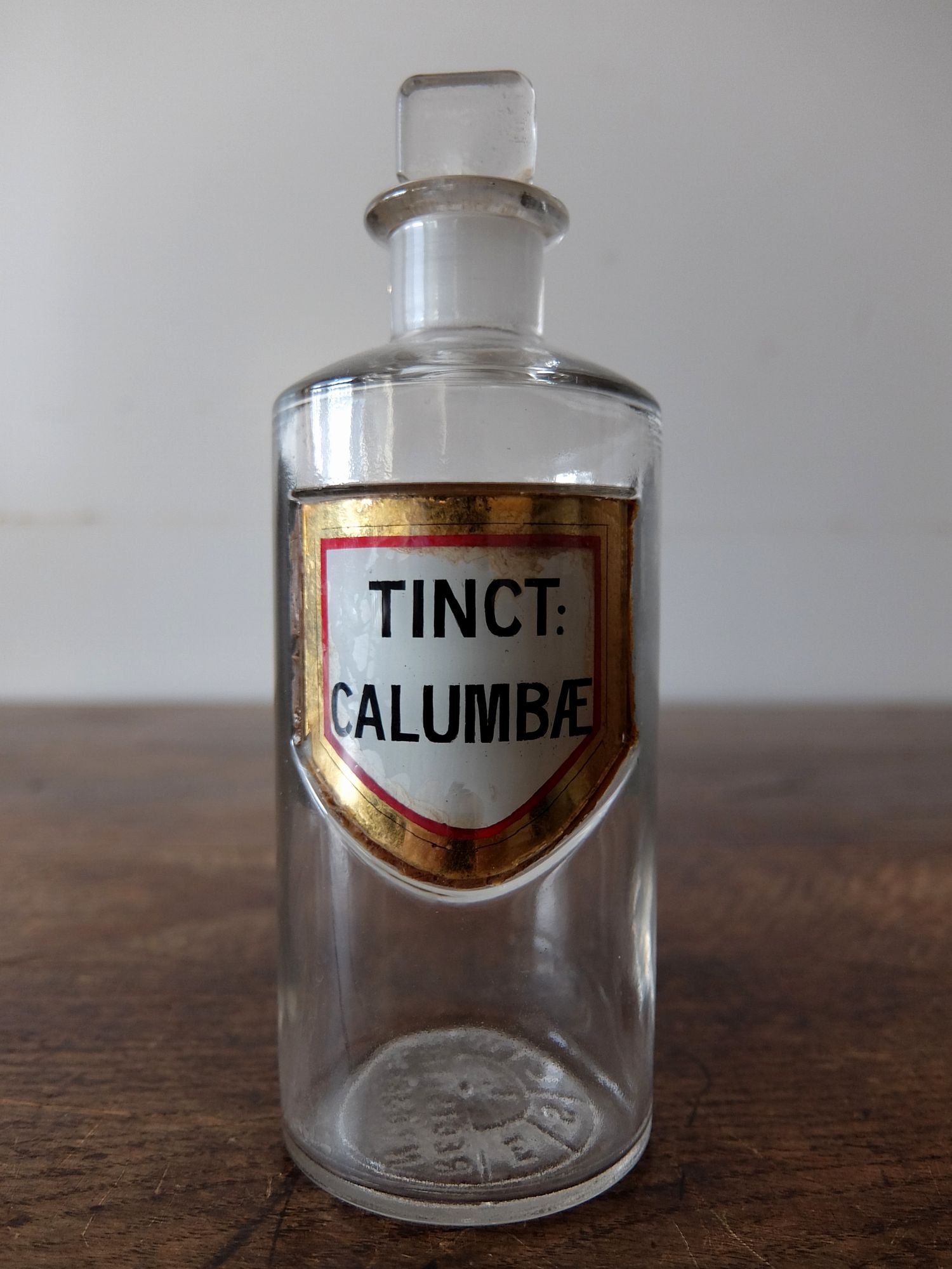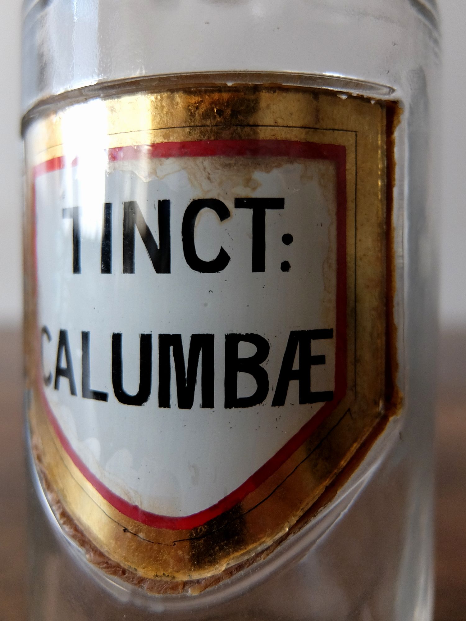 ガラスのプレートが付けられた古い薬瓶
